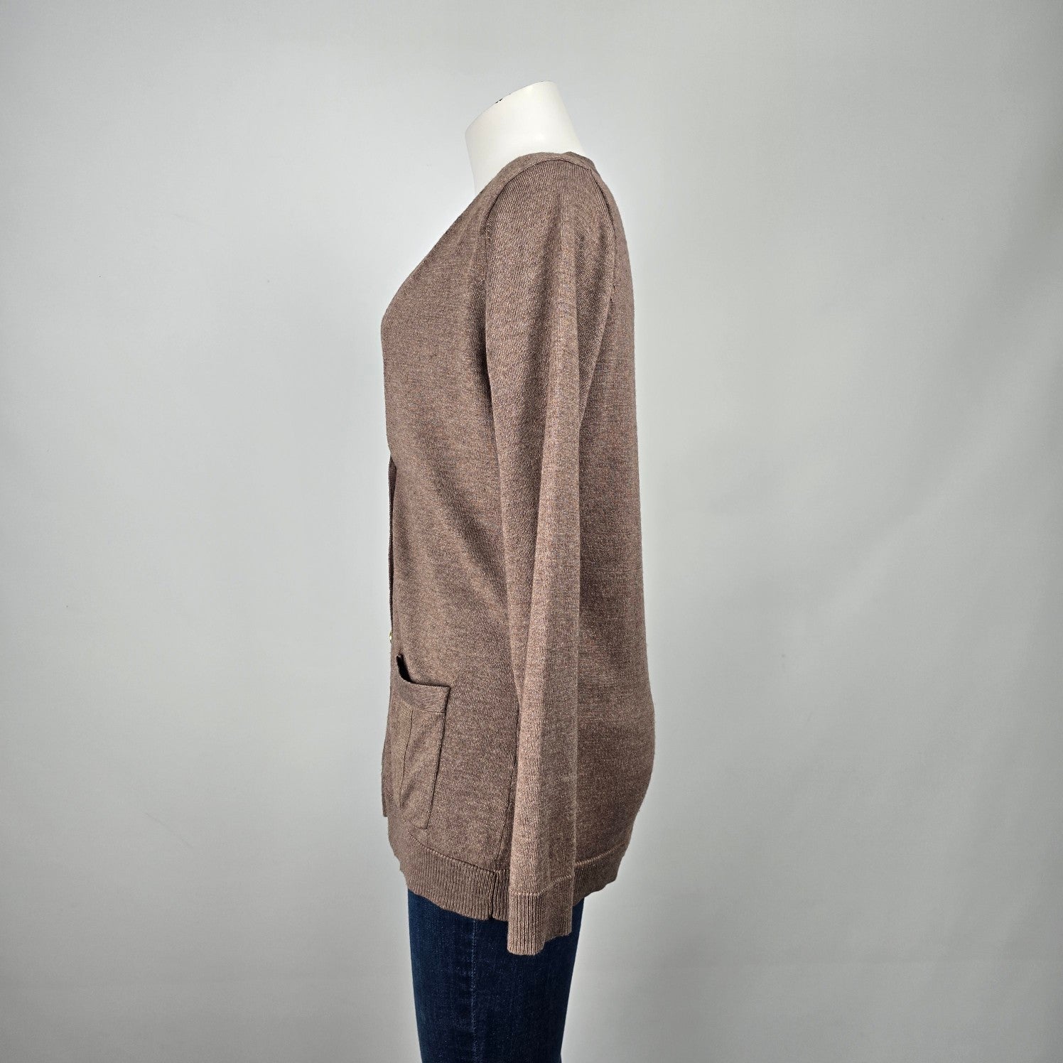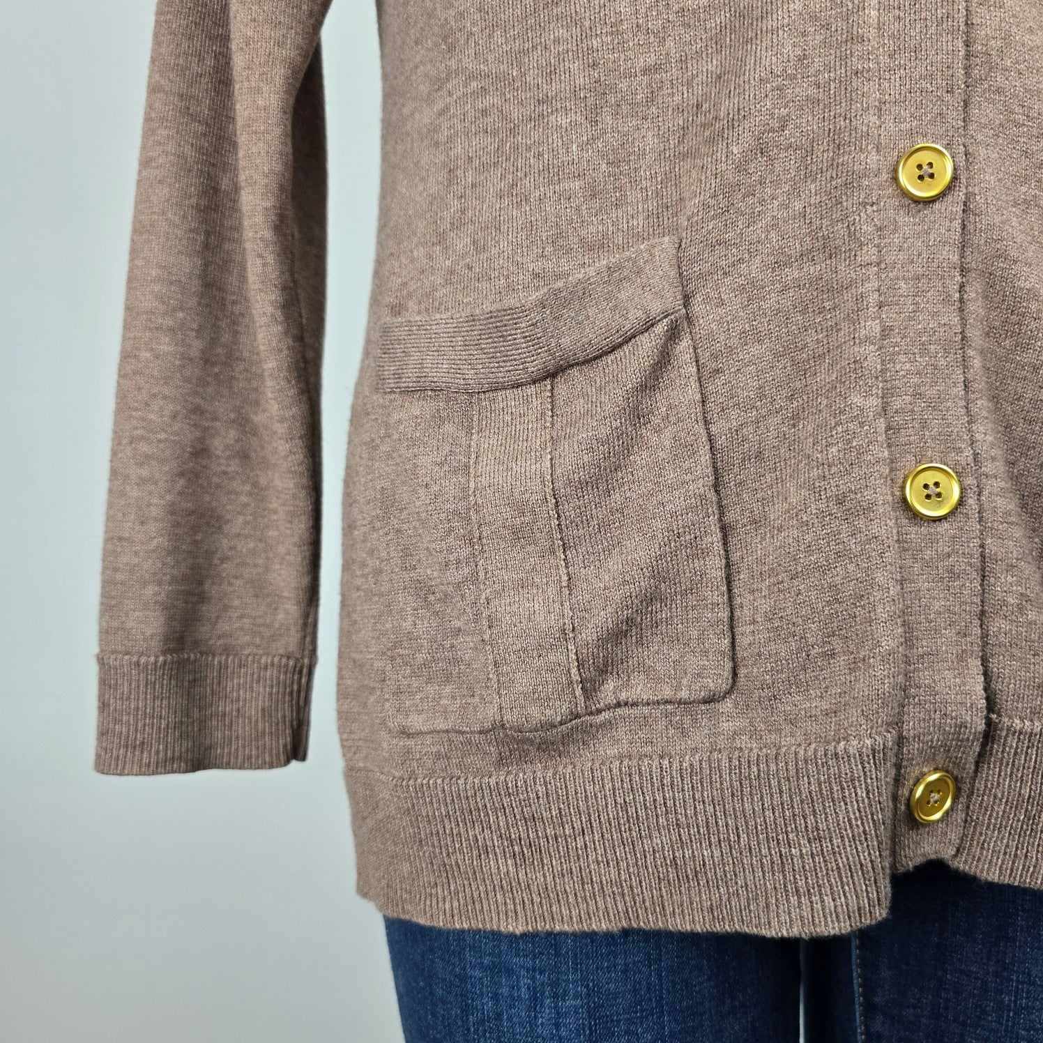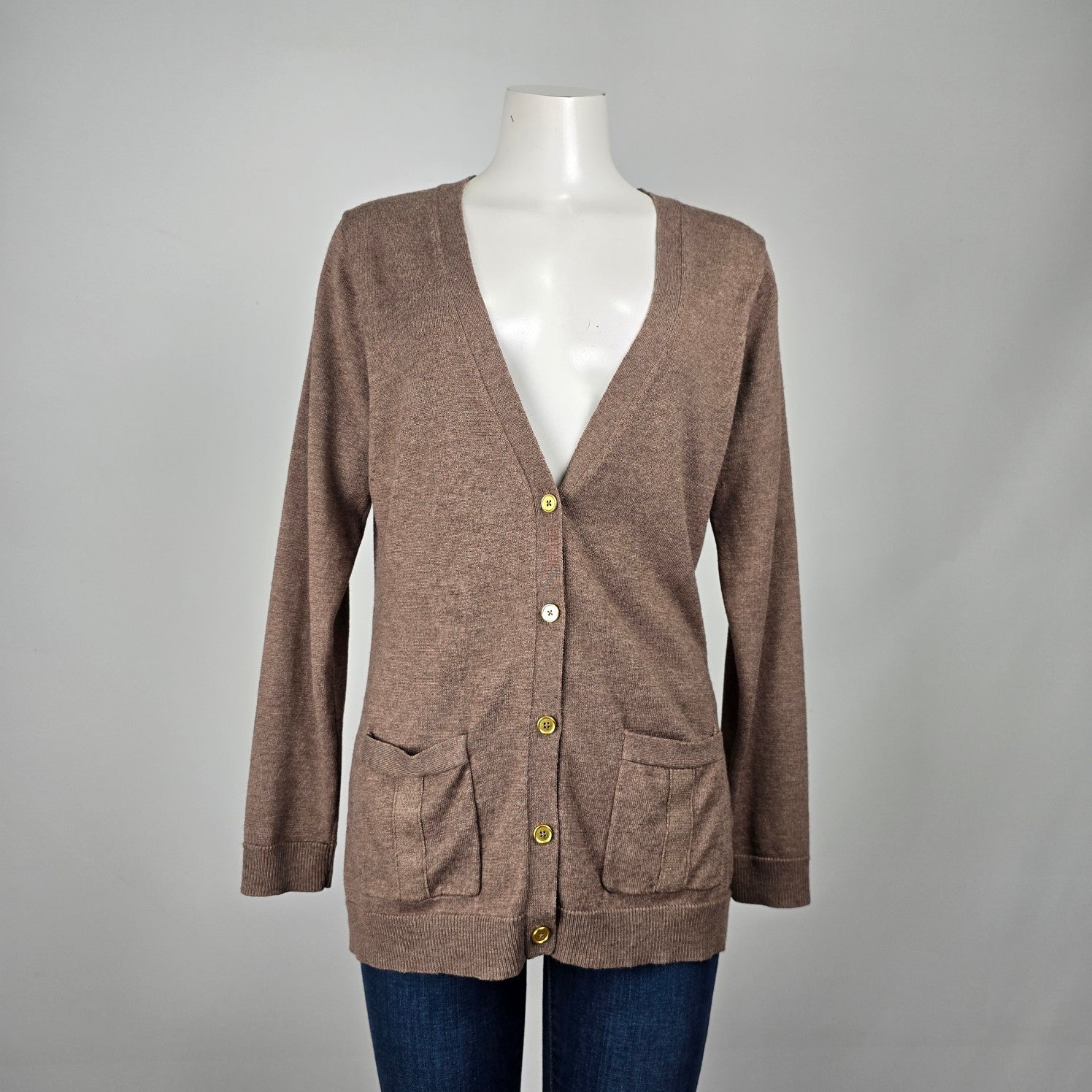 Brown Knit Gold Button Up Cardigan Size L