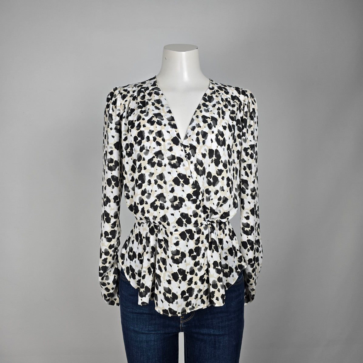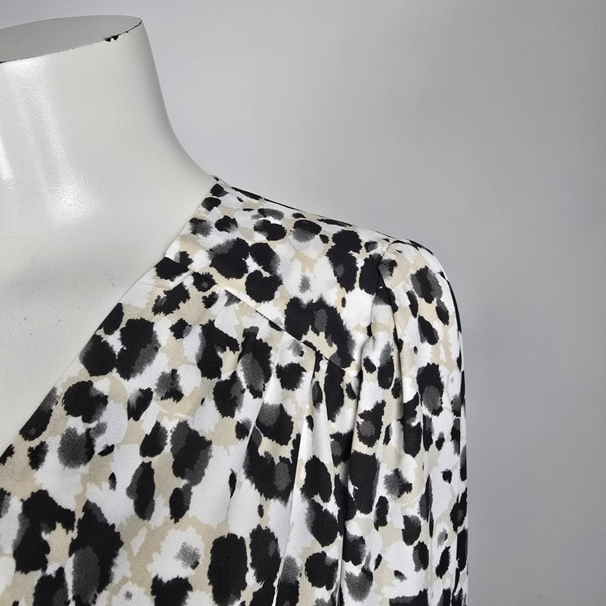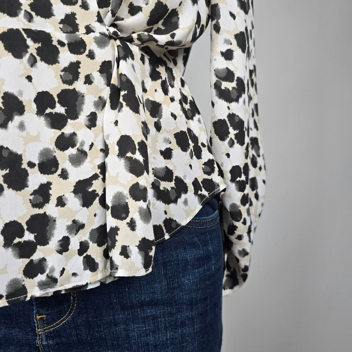Cabi Leopard Animal Print Ruched Sleeve Wrap Top Size S
