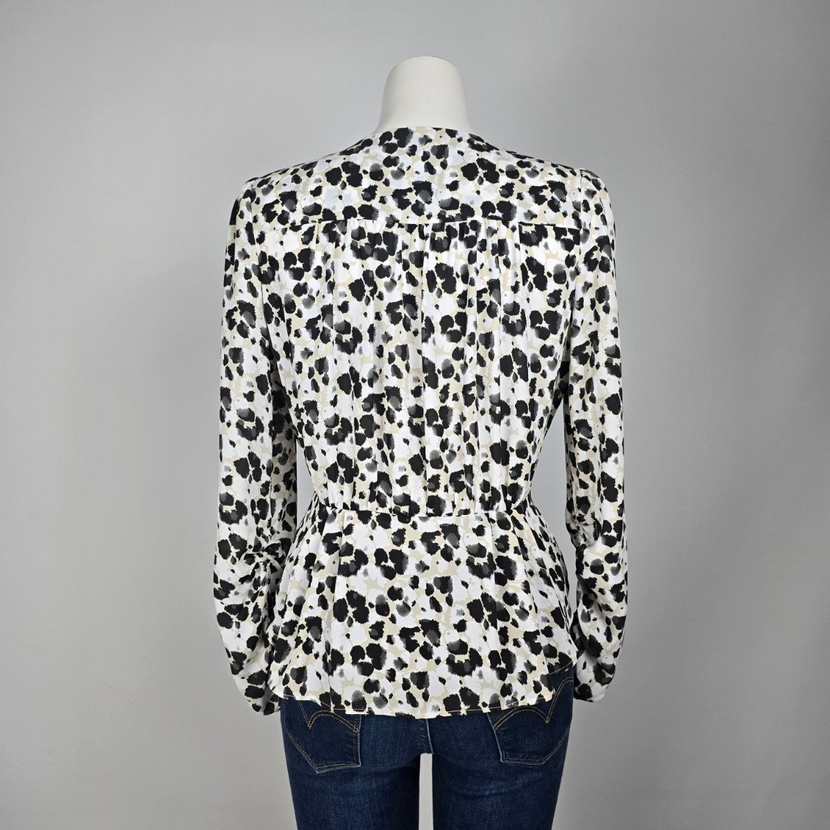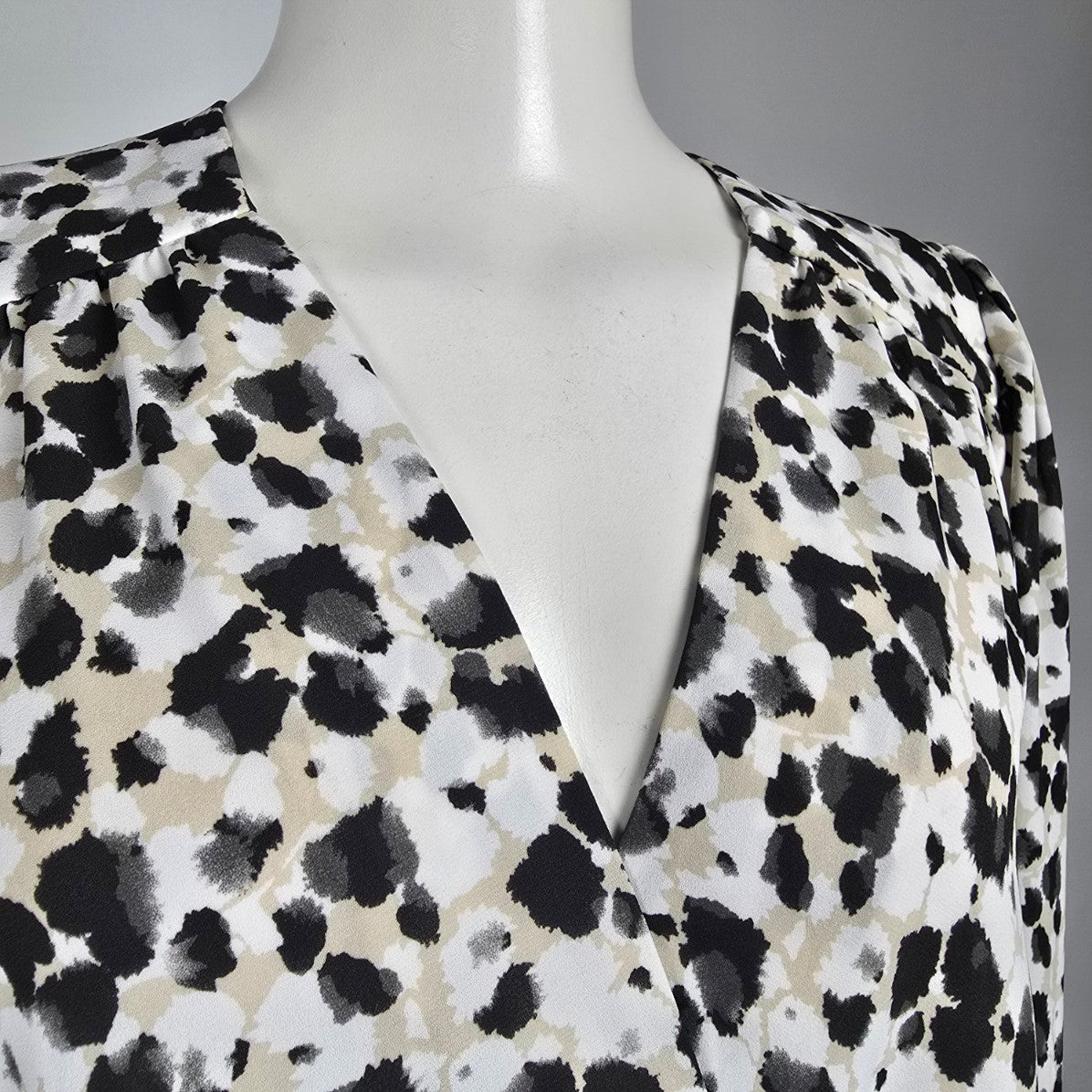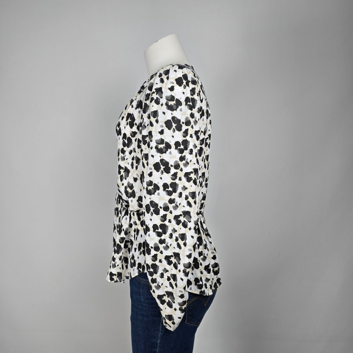 Cabi Leopard Animal Print Ruched Sleeve Wrap Top Size S
