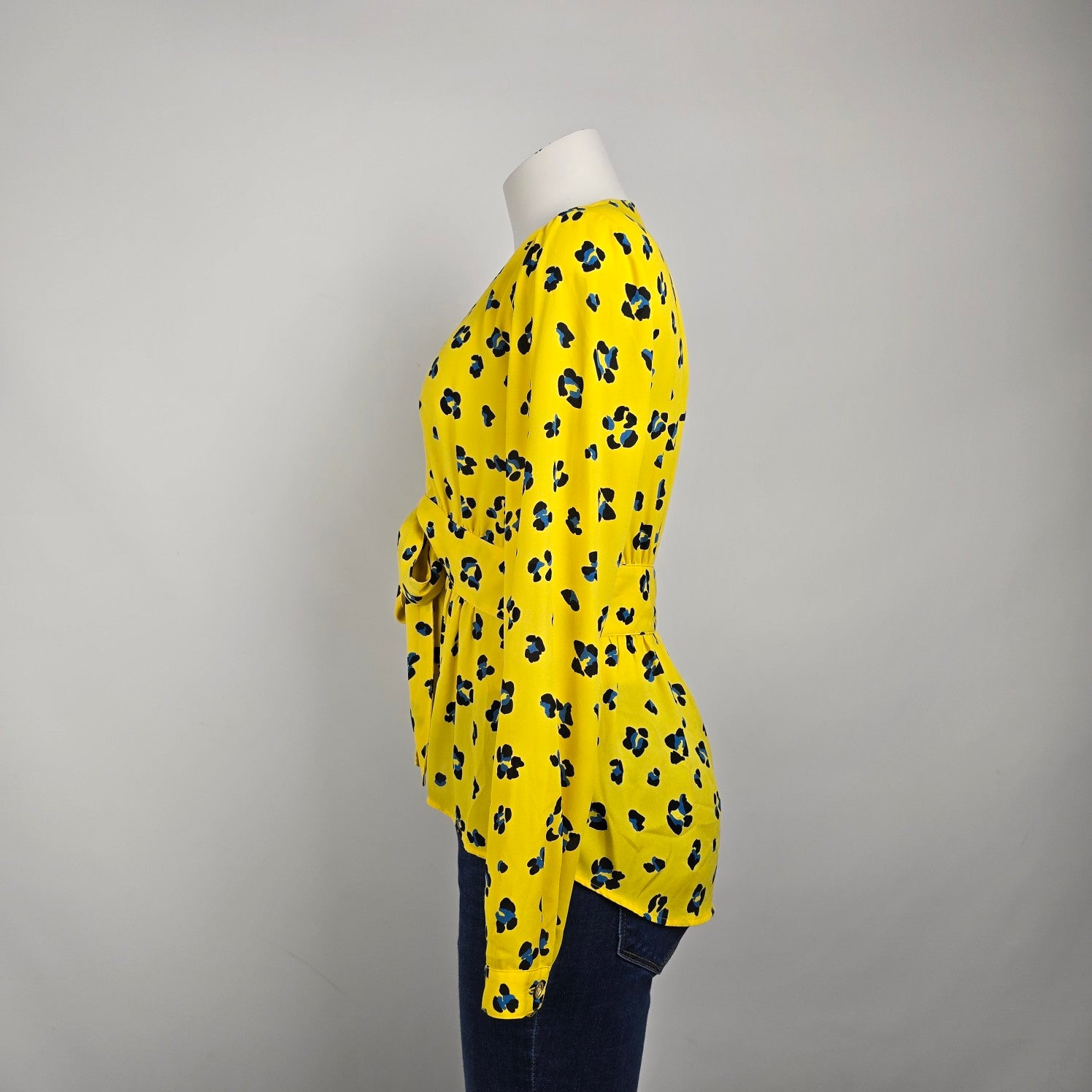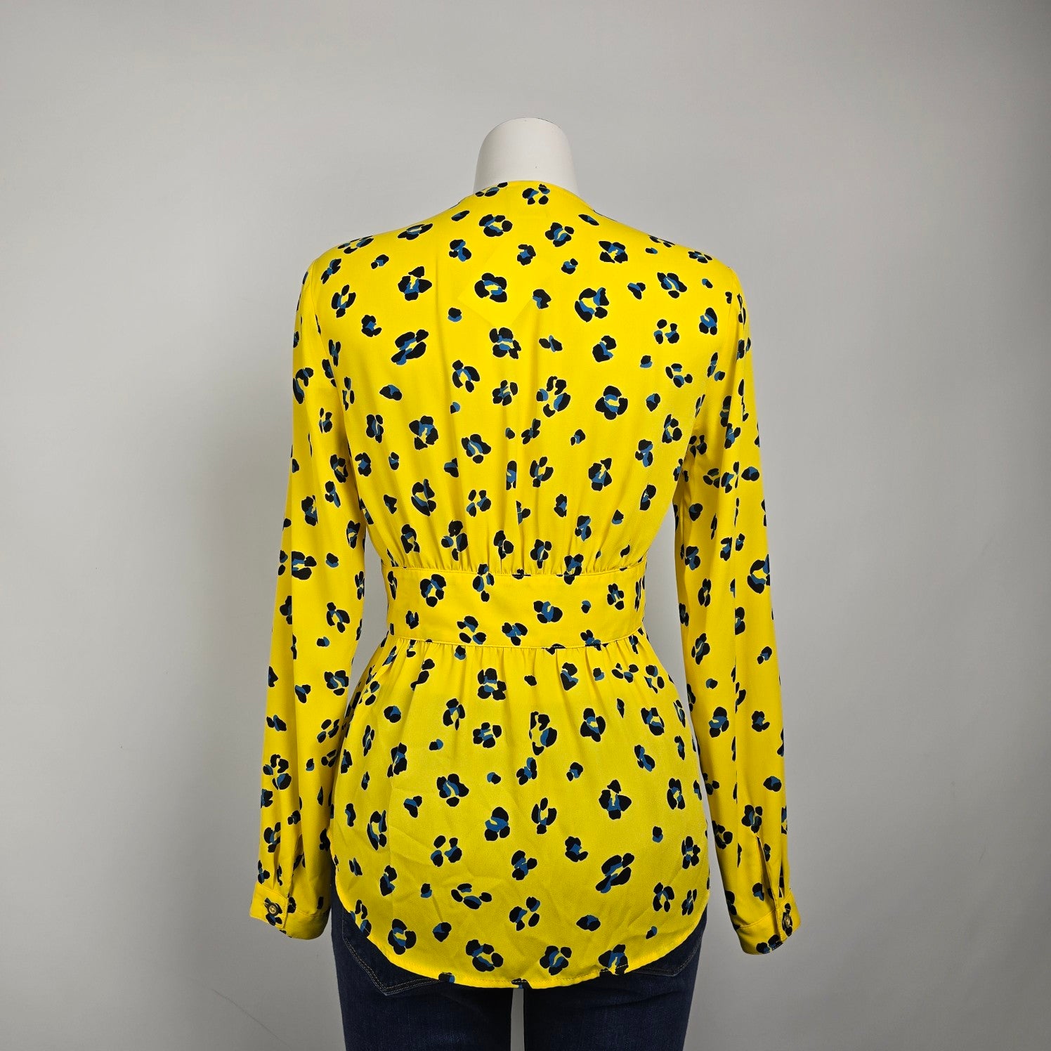 Cabi Sunny Yellow Front Tie Blue Flower Blouse Top Cardigan Size S