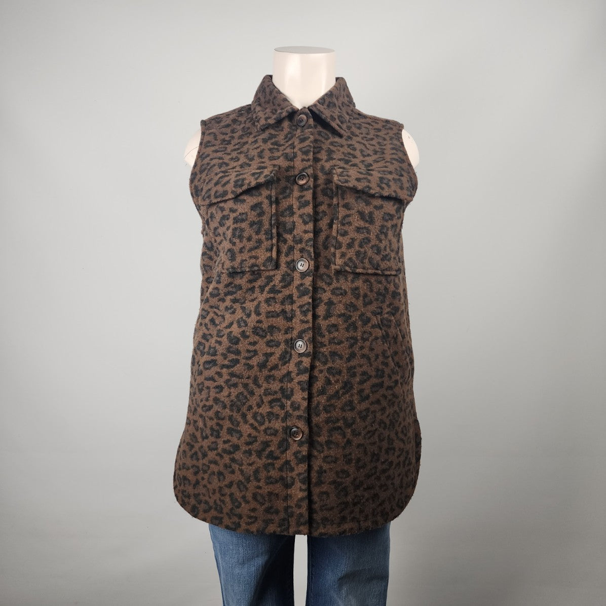 Charlie B Brown Animal Print Button Up Long Vest Size XL