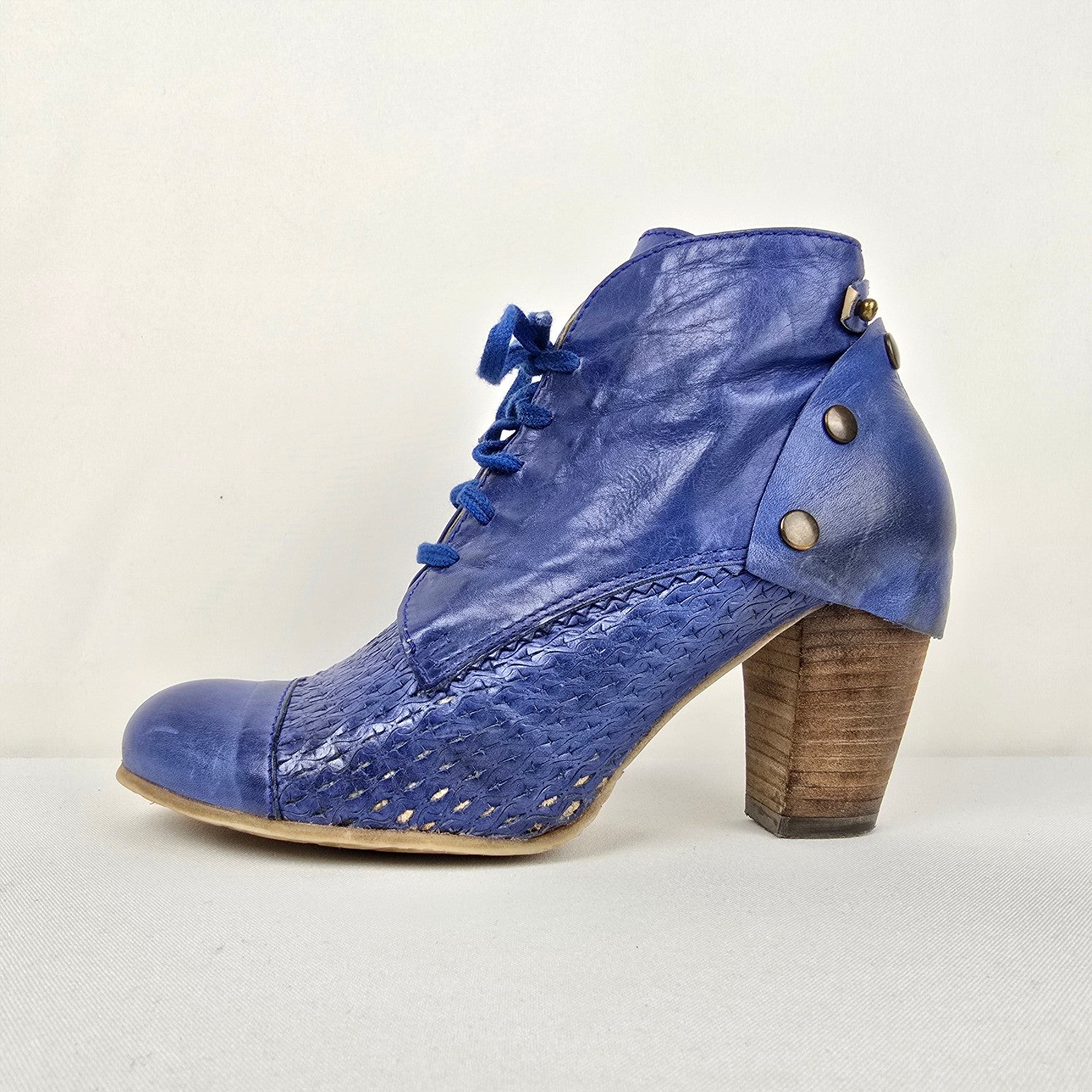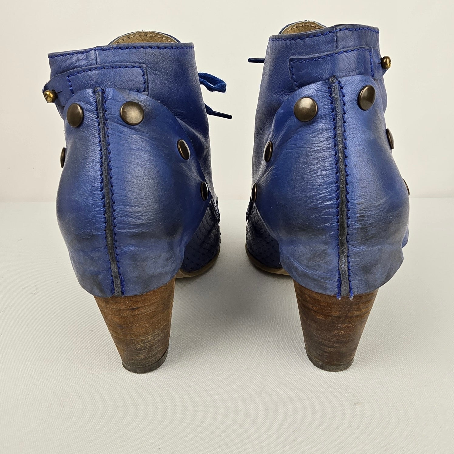 Chocolate Blue Leather Lace Up Heeled Ankle Boots Size 8