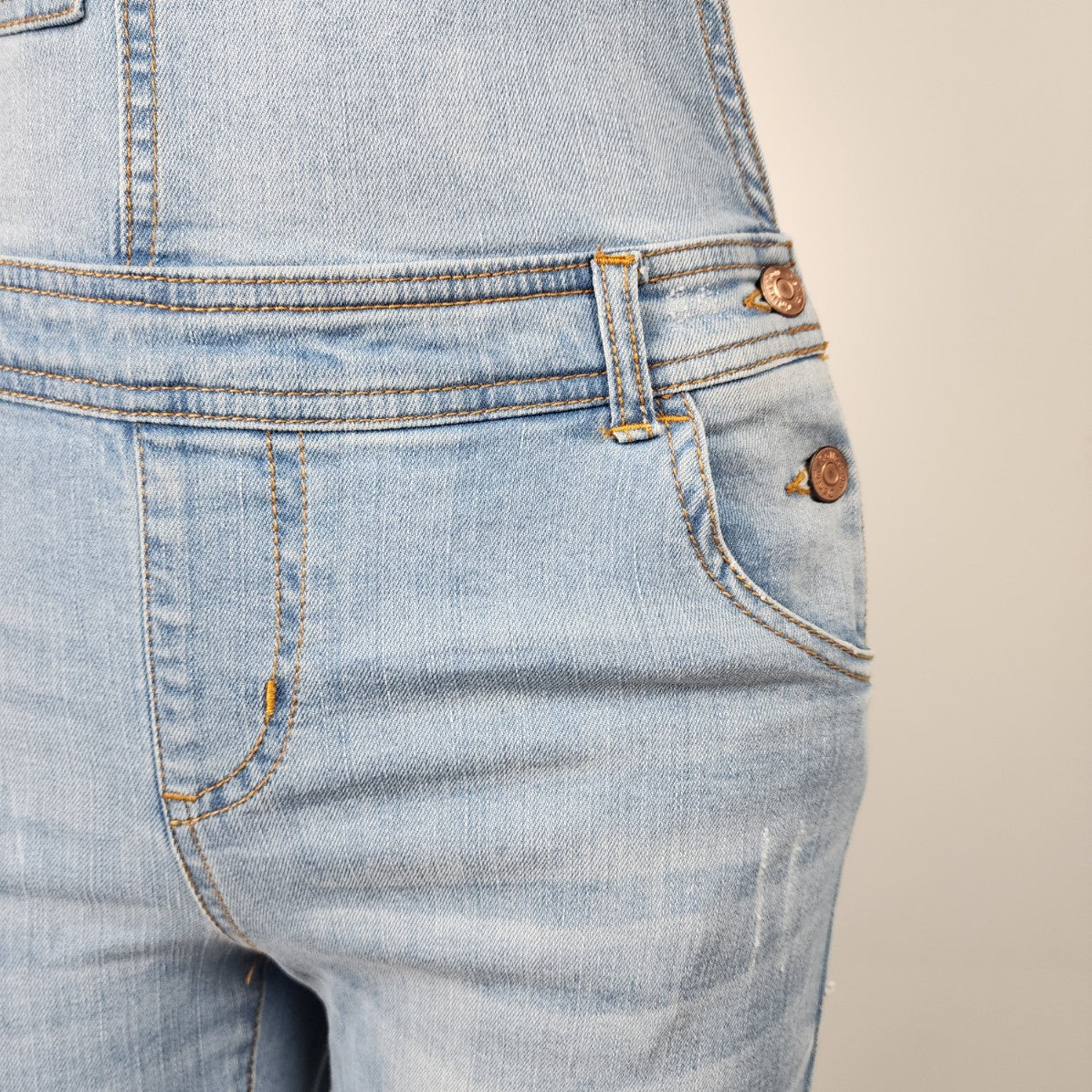 Ci Sono Light Wash Distressed Denim Overalls Size S