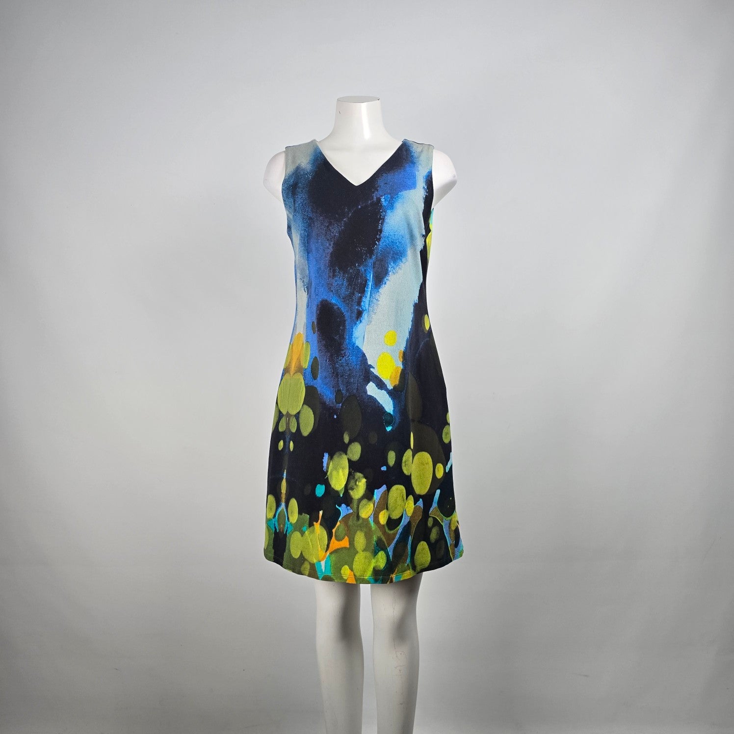 Claire Desjardins Blue Cotton Art Print Mini Dress Size M