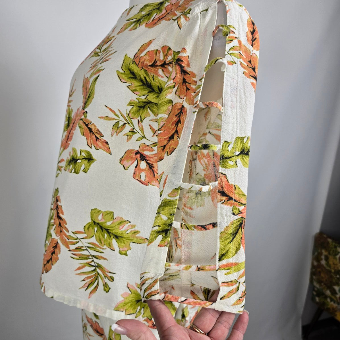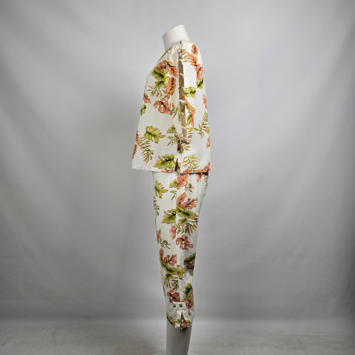 CMC Cream Cotton Floral Two Piece Top & Capri Set Size M/L