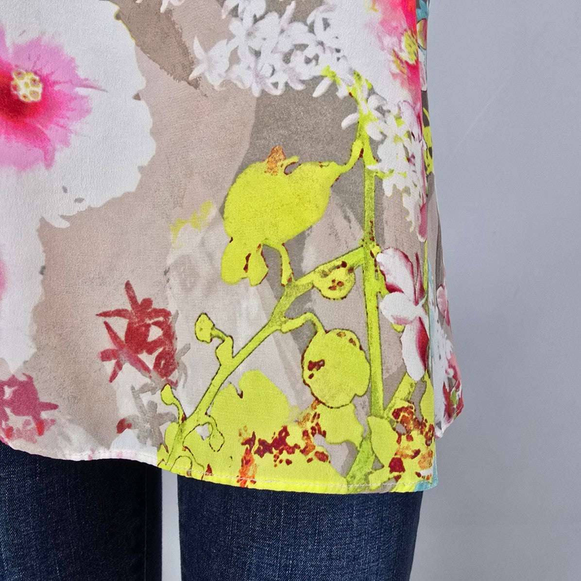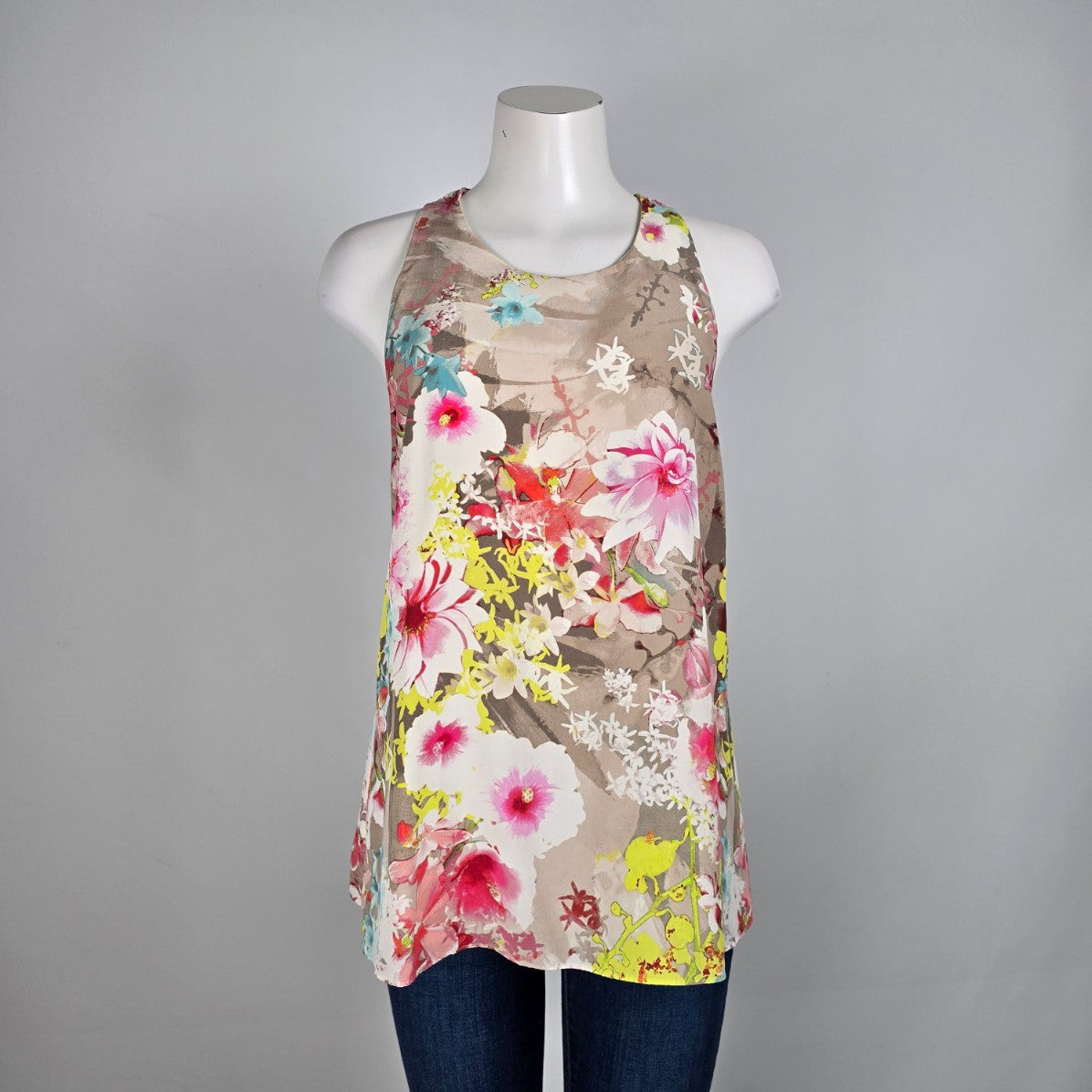 Cynthia Rowley Pink Silk Floral Sleeveless Top Size M