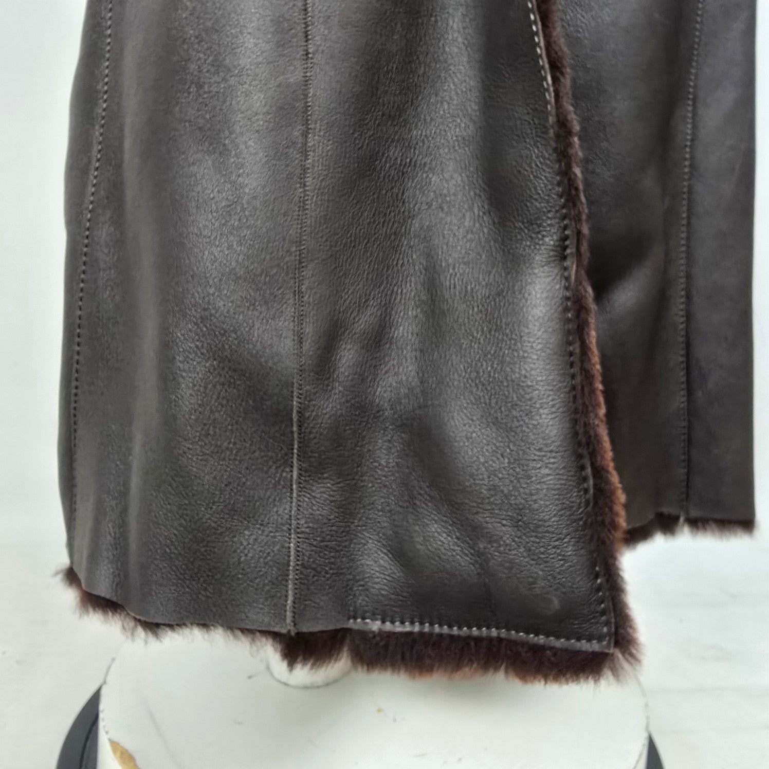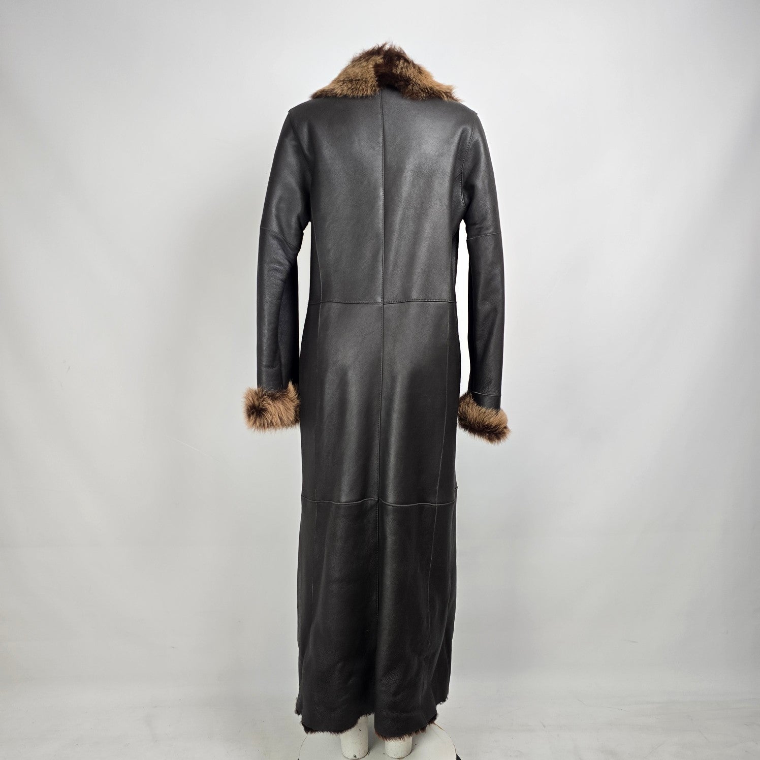 Danier Black Sheepskin Fur Trimmed Long Coat Size XS