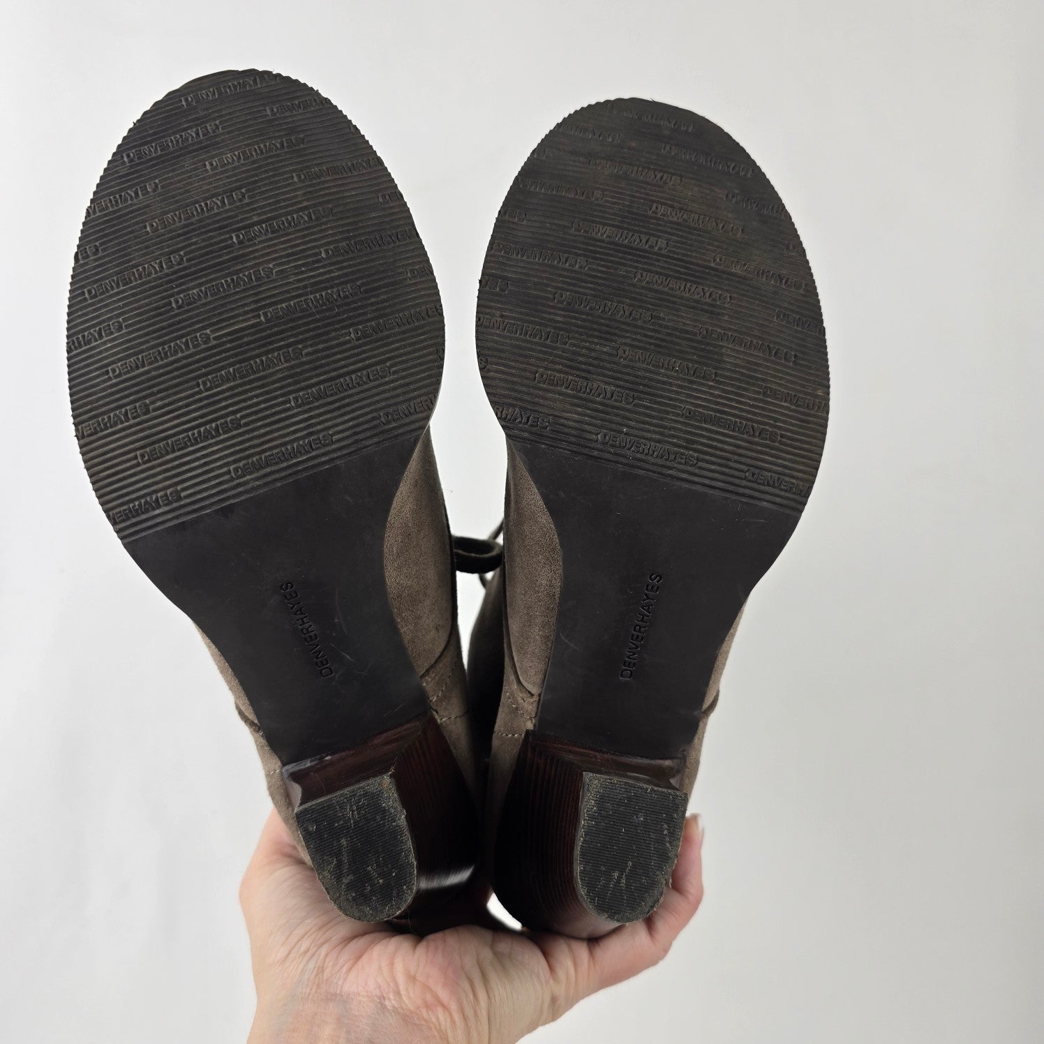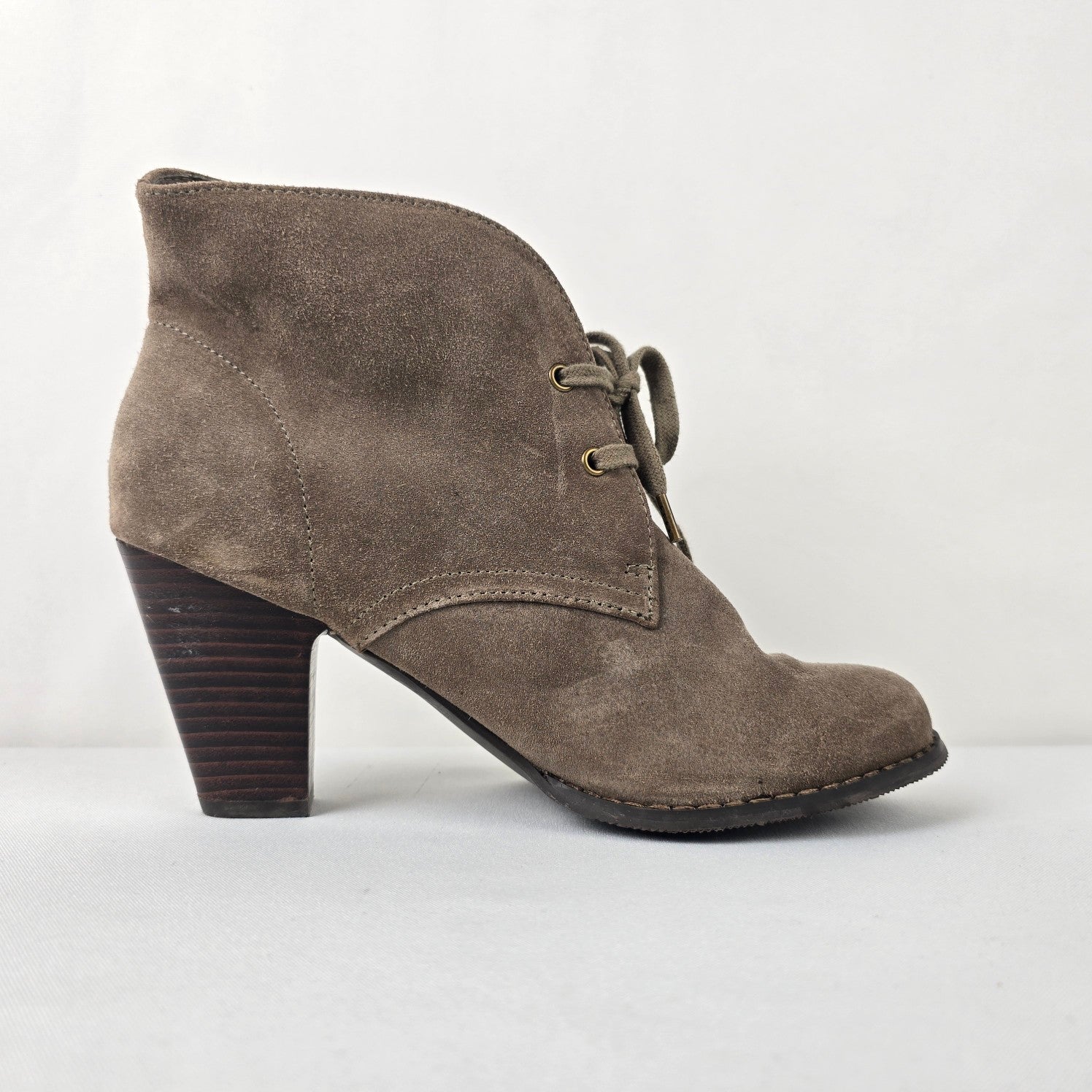 Denver Hays Taupe Suede Lace Up Heeled Boots Size 10