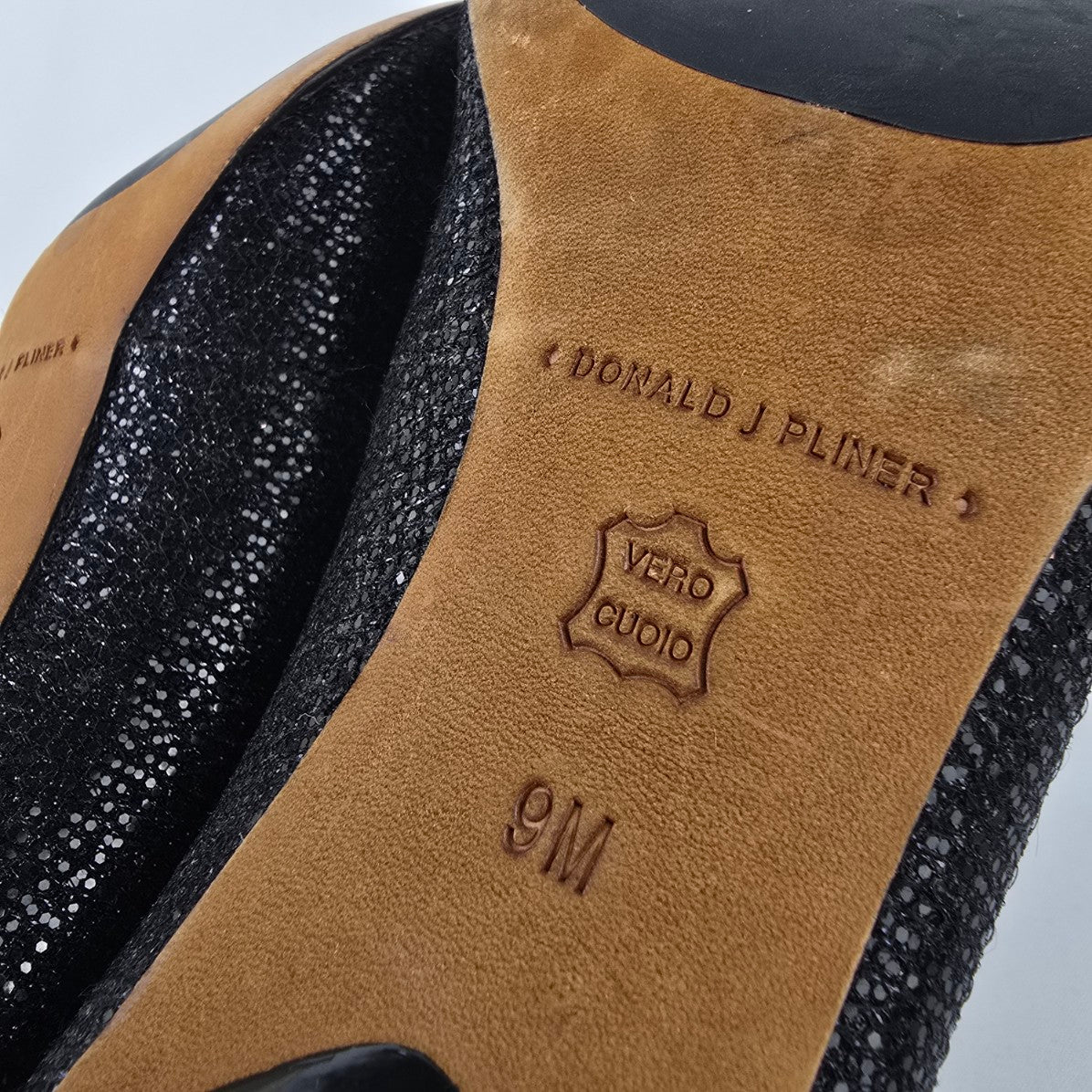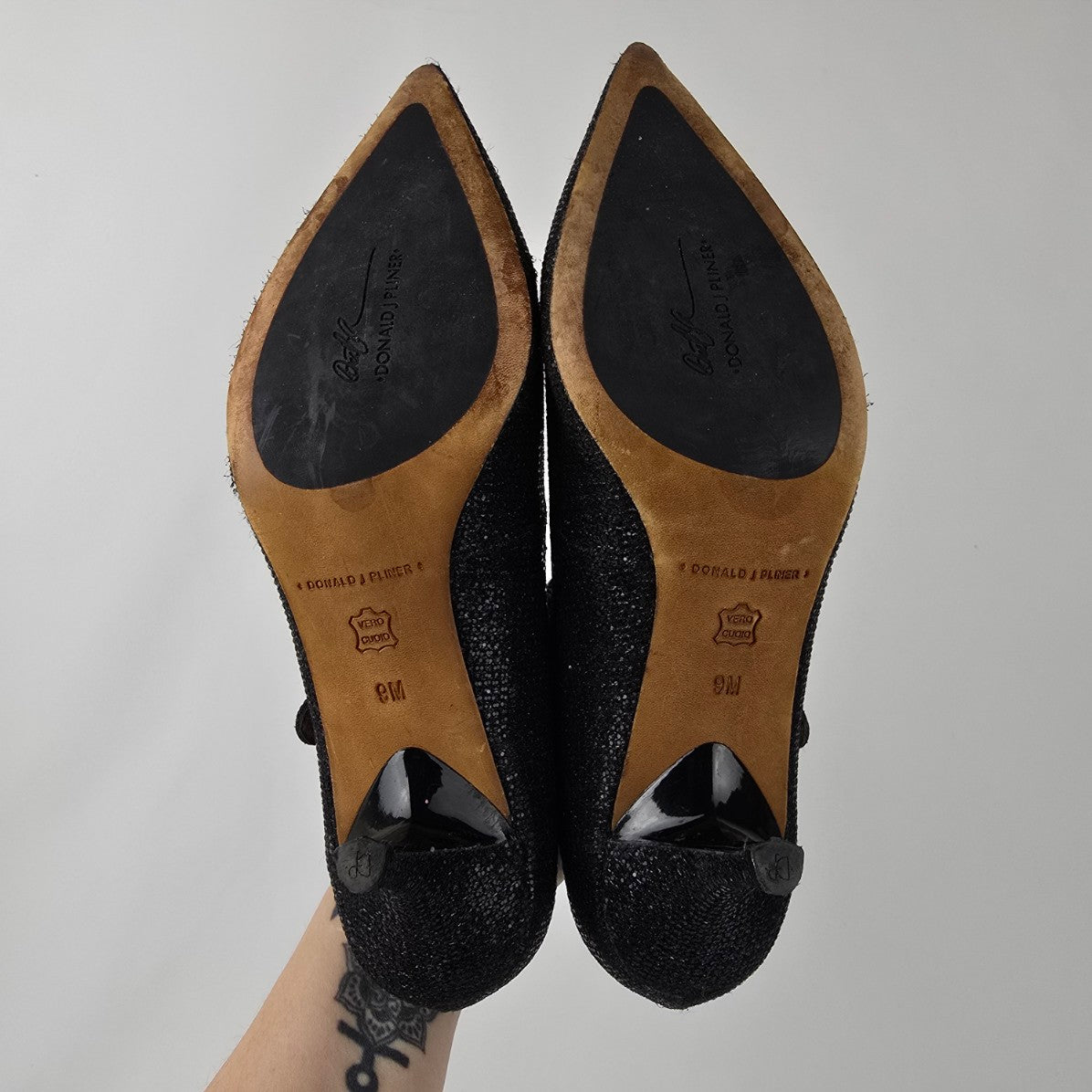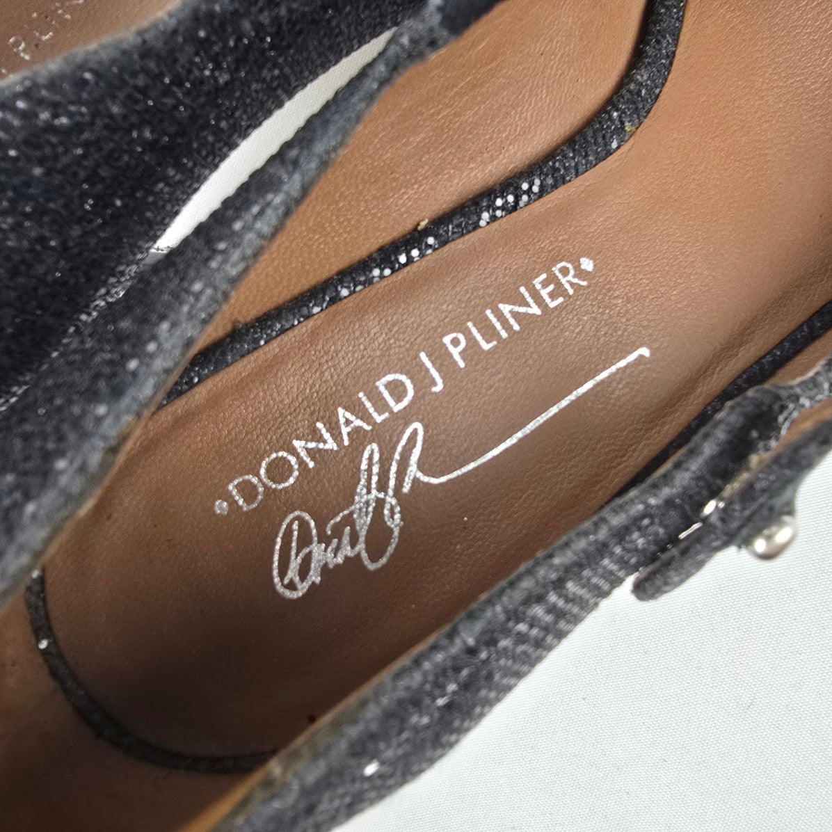 Donald J Pliner Black Sparkle Mary Jane Glitter Heeled Shoes Size 9