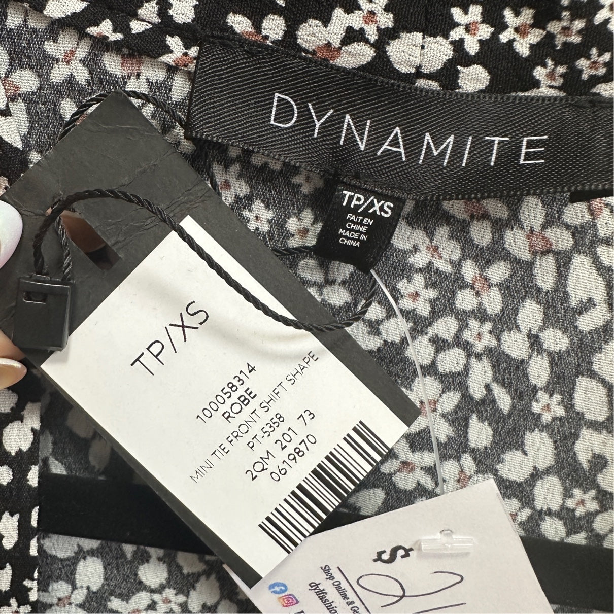 Dynamite Black Floral Tie Detail Mini Dress Size XS