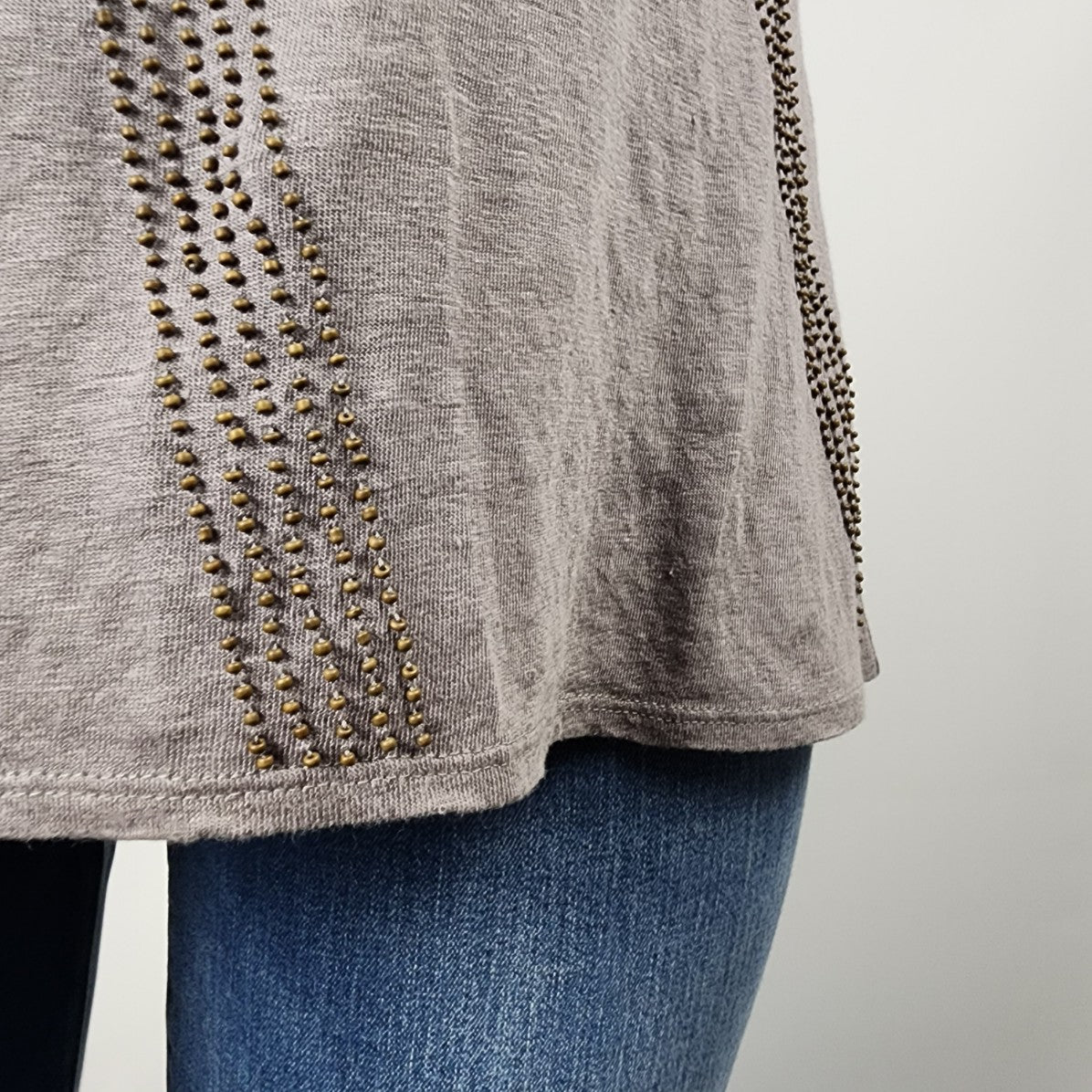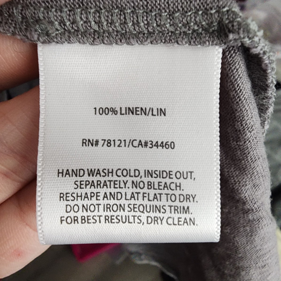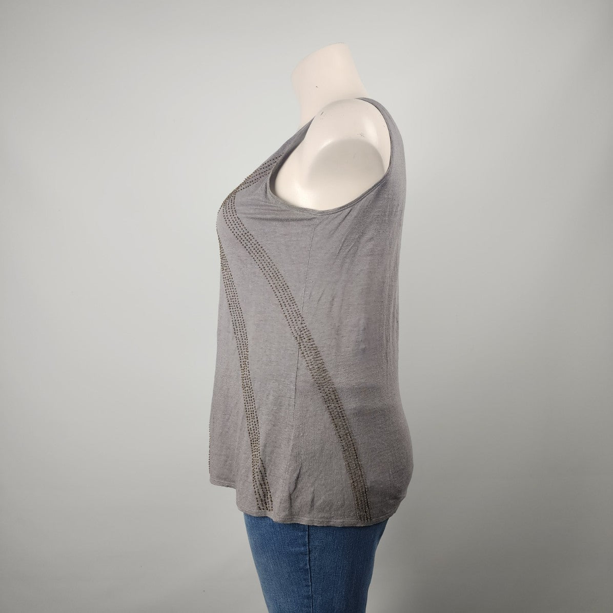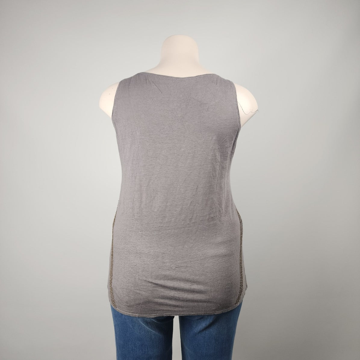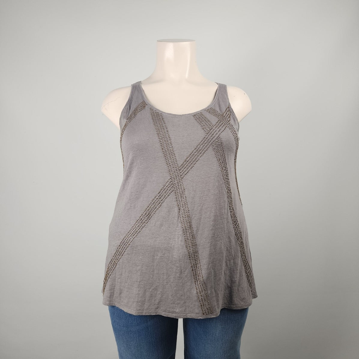 Eileen Fisher Grey Linen Beaded Sleeveless Top Size L