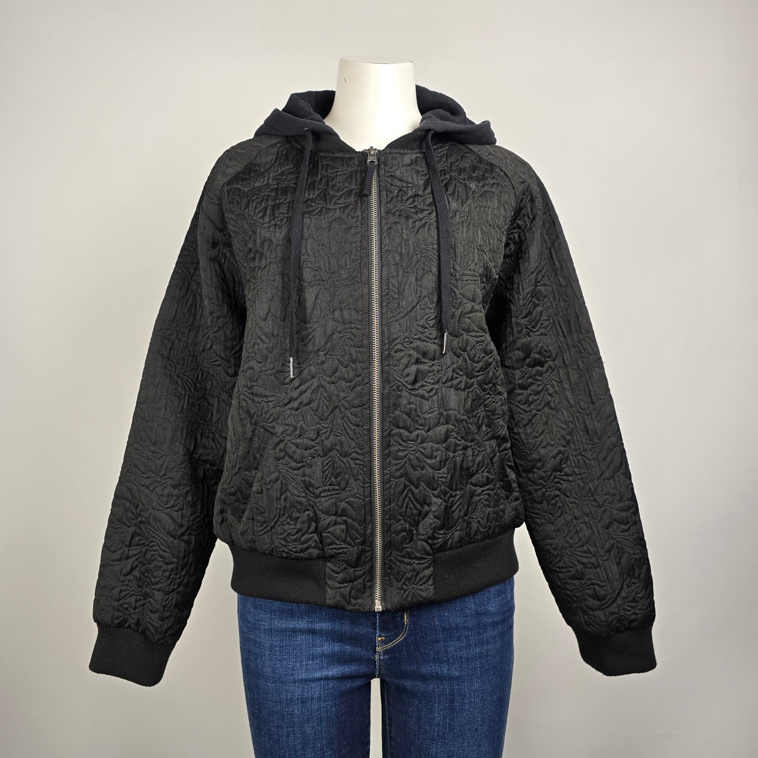 Emp Cyre Black Floral Quilted Hooded Jacket Size XL