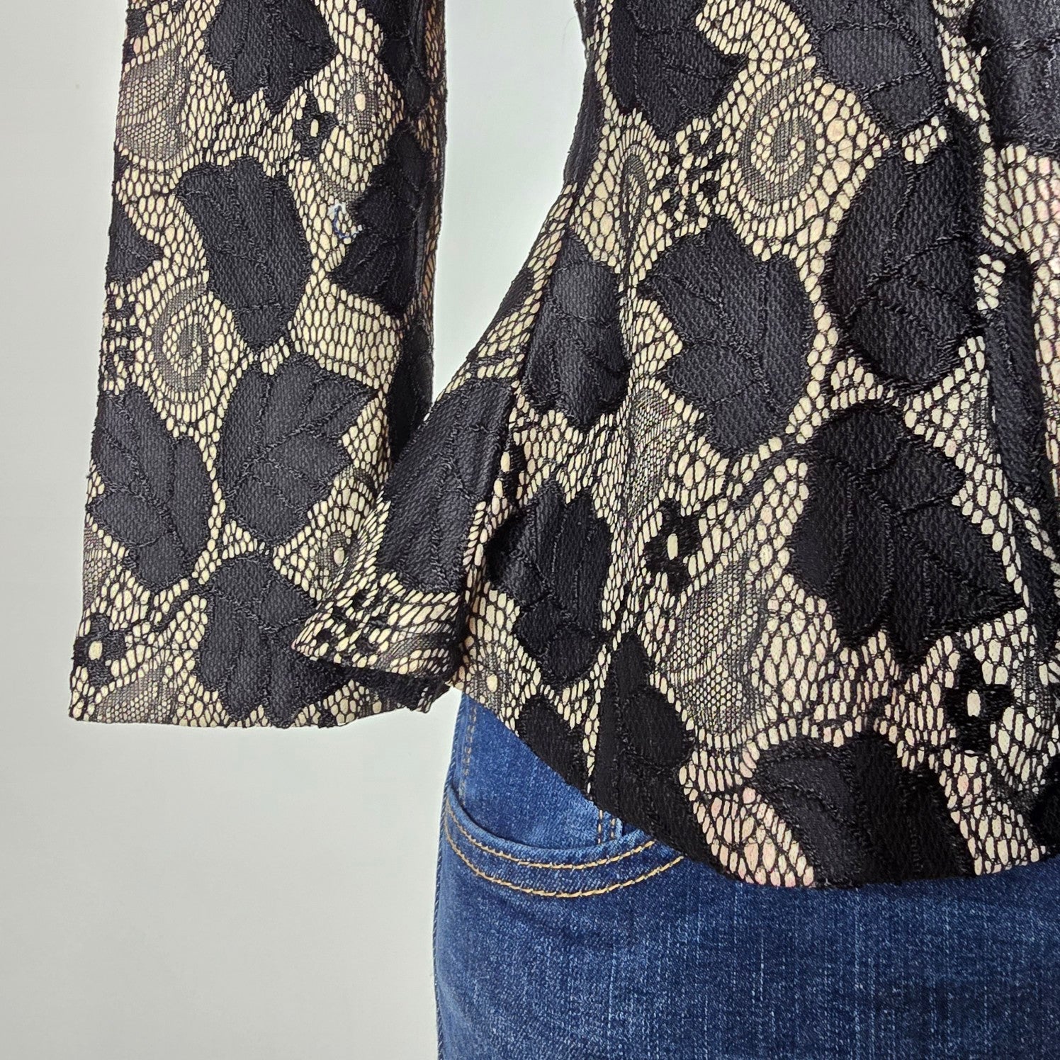 Eros Apparel Black Floral Peplum Top Size S