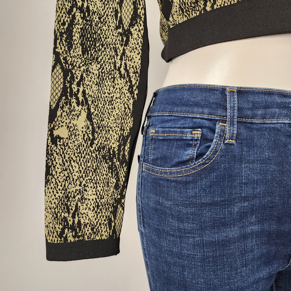 Fabletics Seamless Kamila Long Sleeve Crop Snakeskin Print Top Size S/M