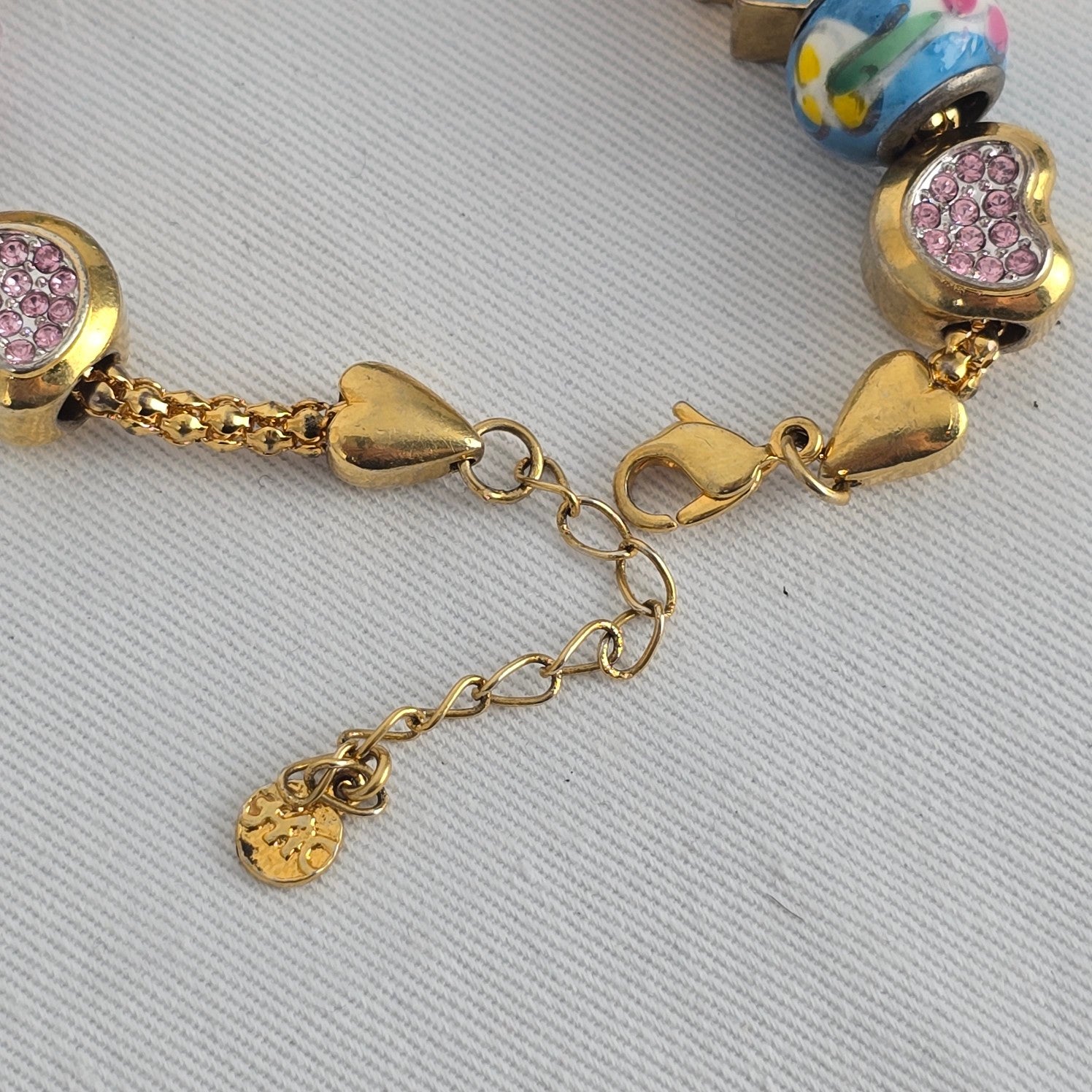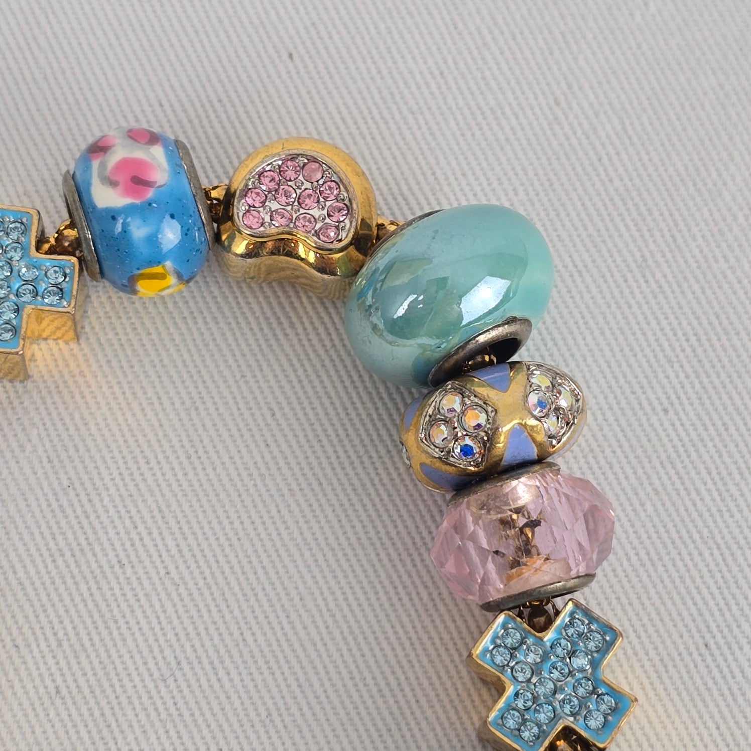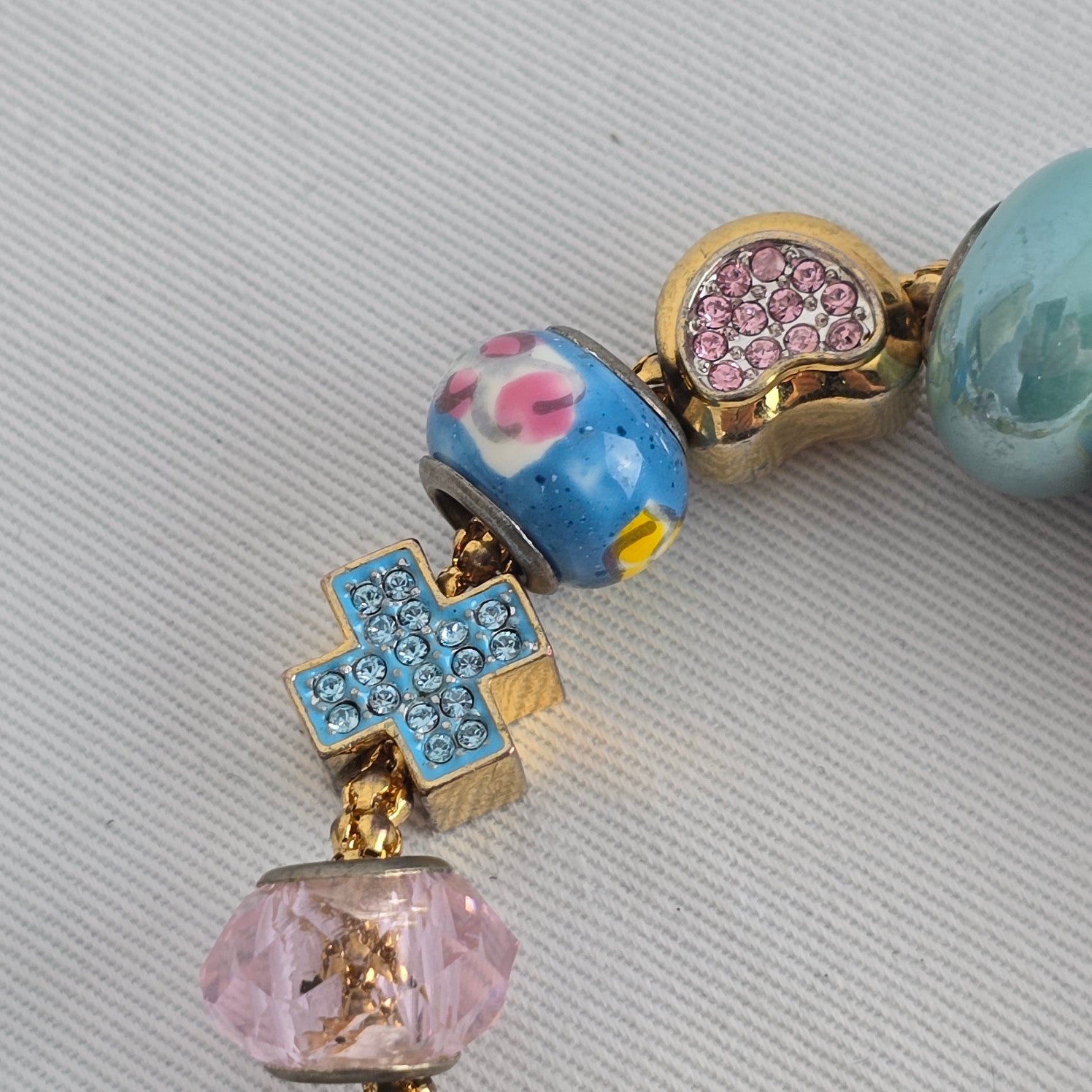 FAC Fifth Avenue Collection Charm Bracelet Gold Tone Heart Cross Beaded Crystal Bracelet