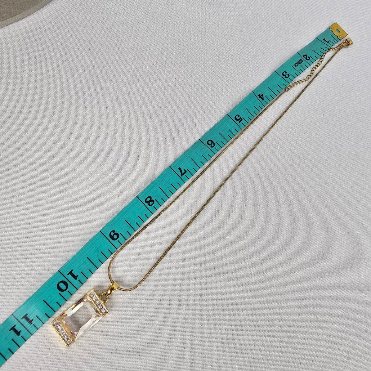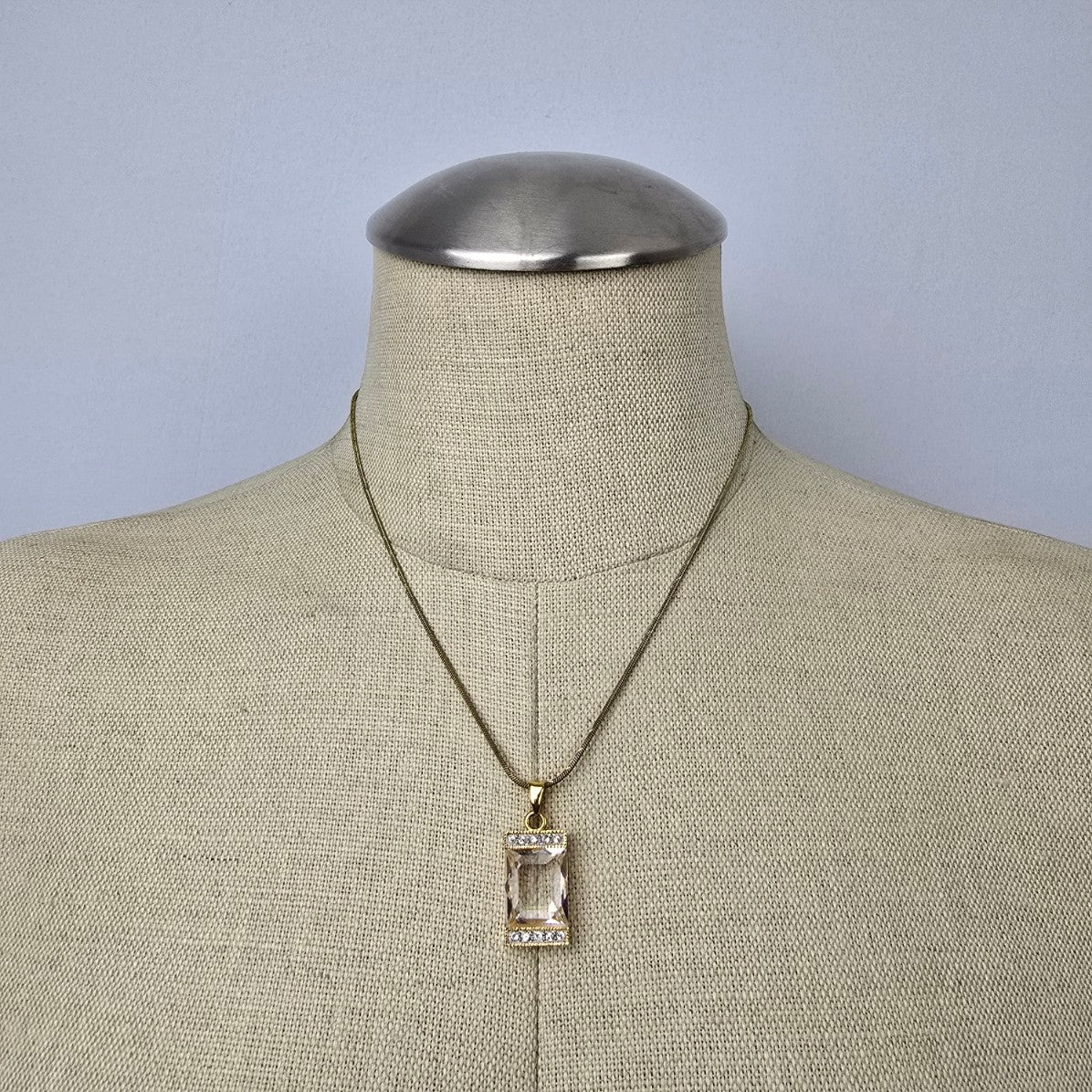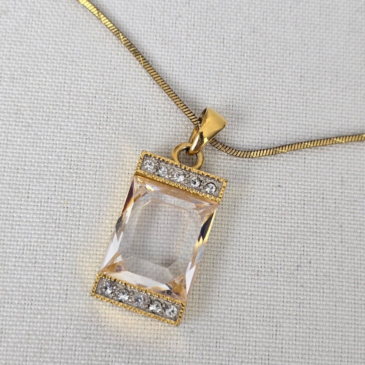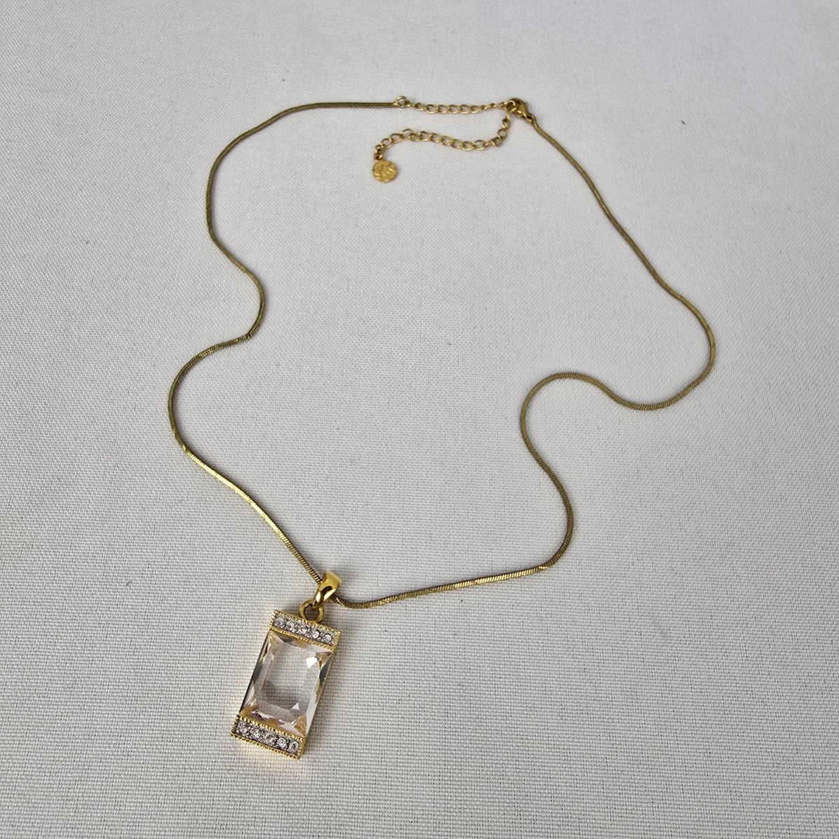 FAC Gold Tone Square Crystal Pendant Necklace