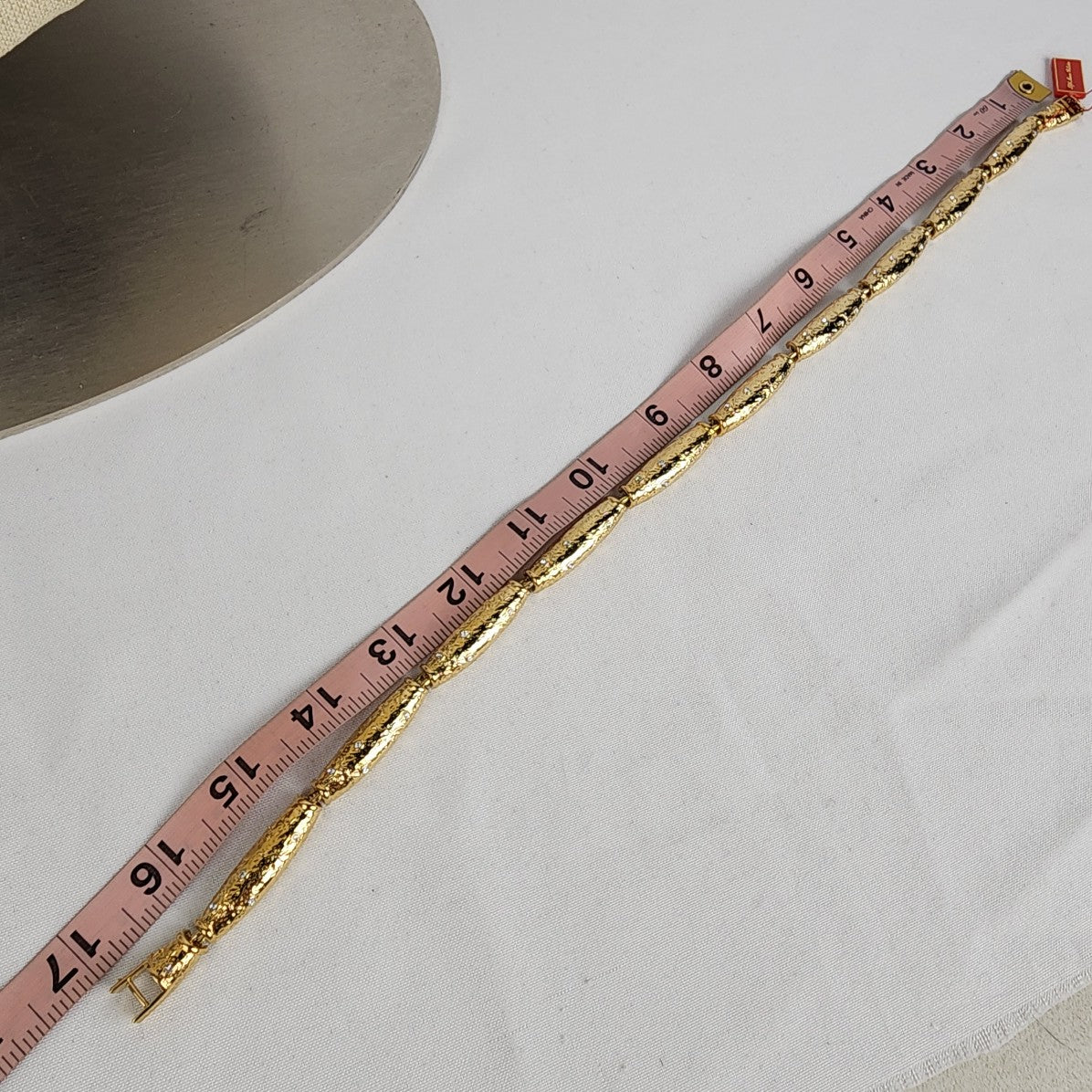 See last photo for length or size measurements, compare our measurements to something in your jewelry box to know if this piece will work for you.