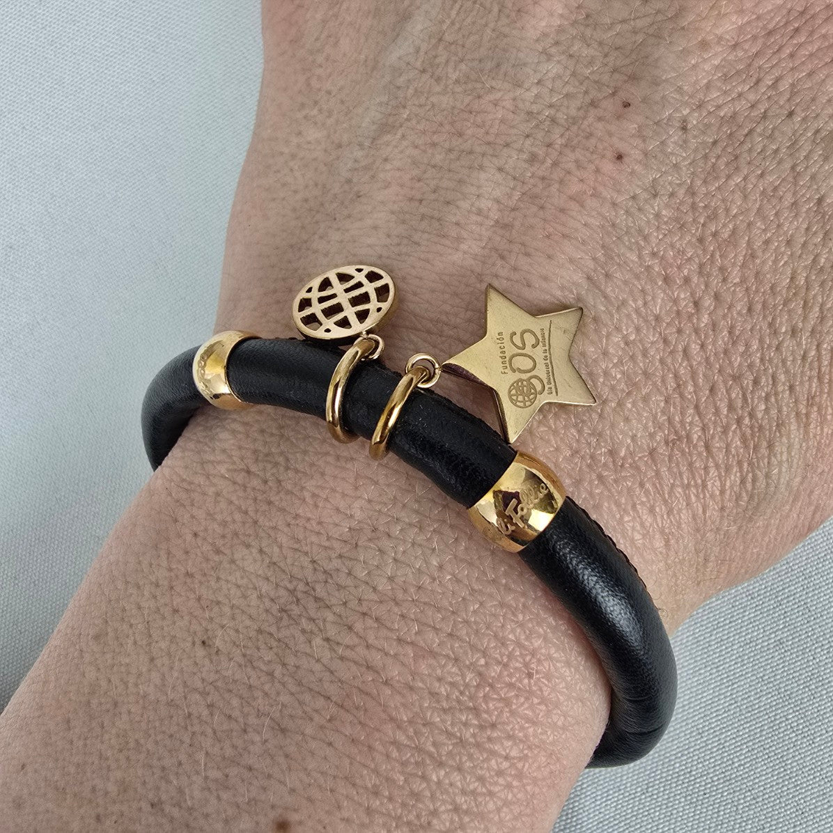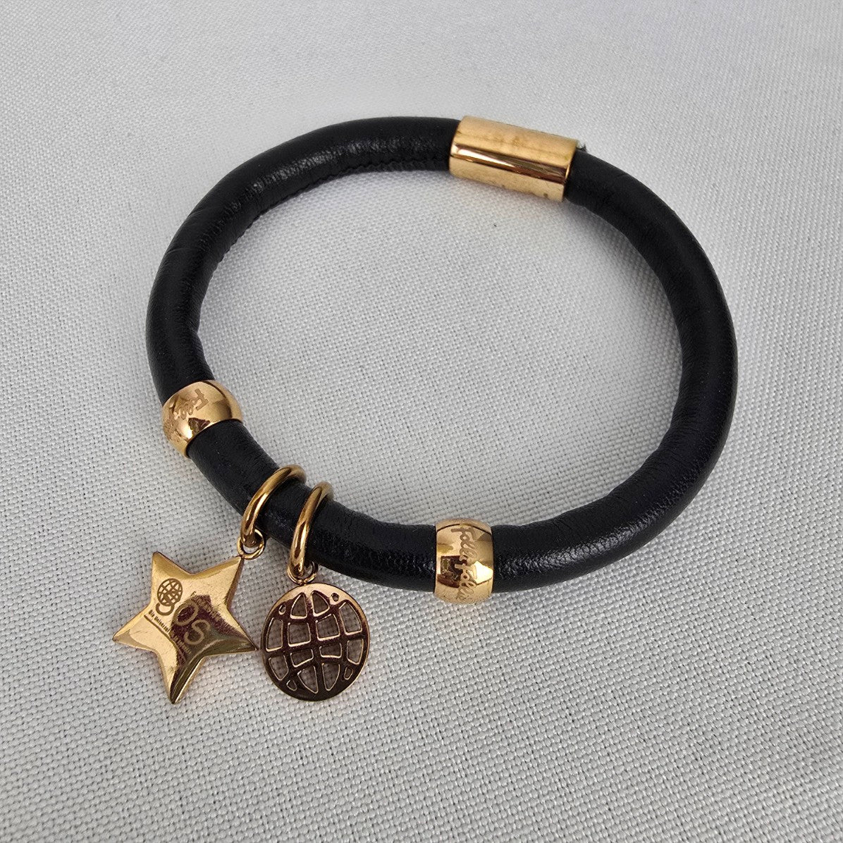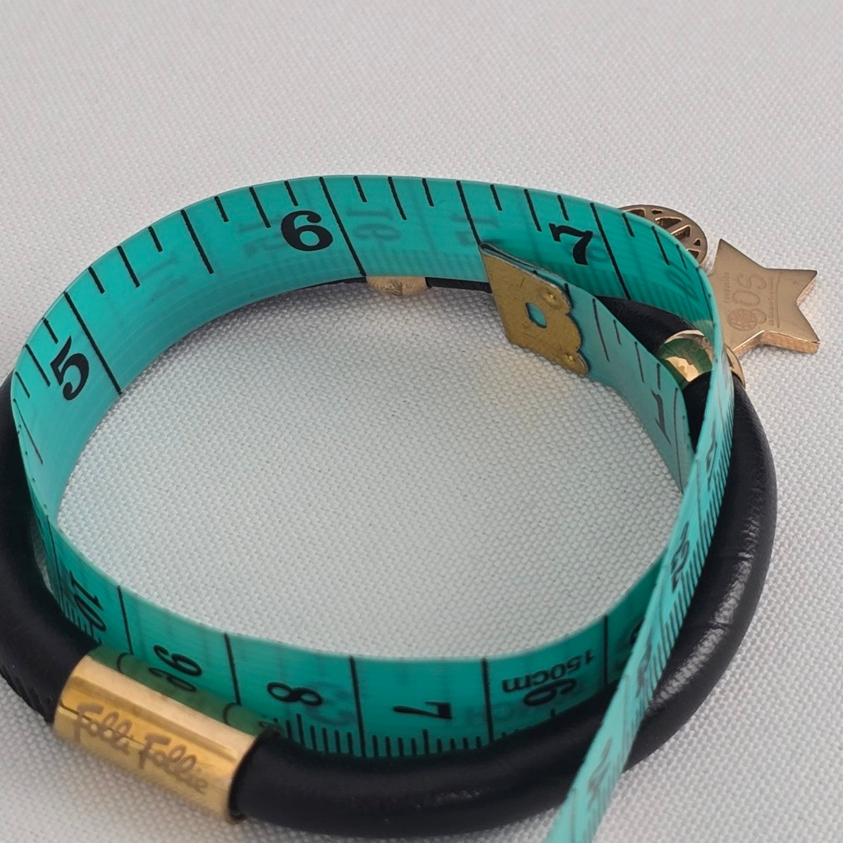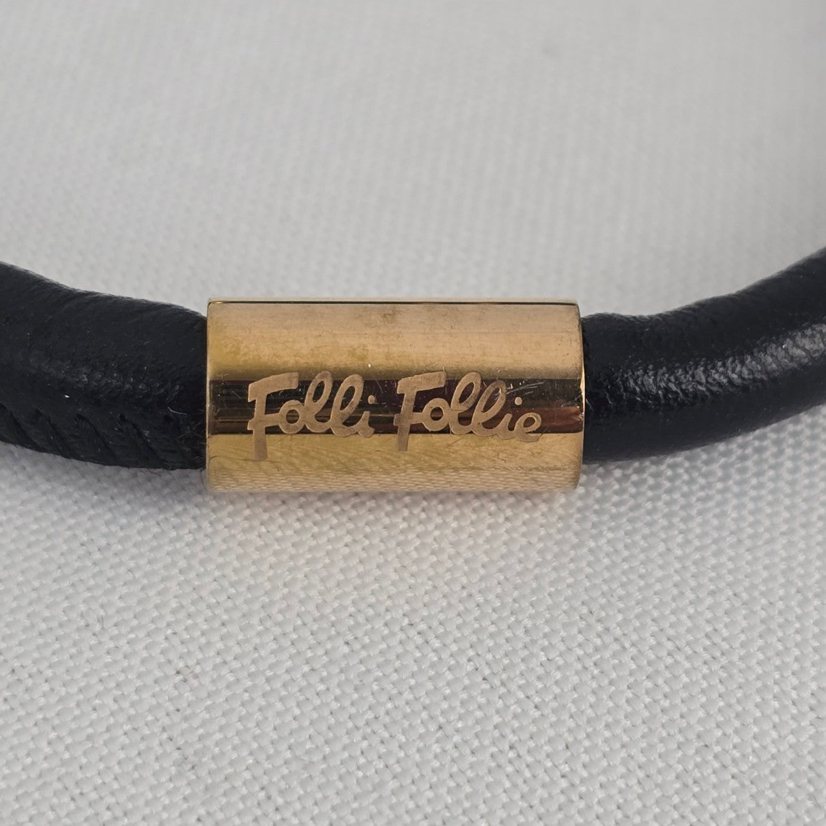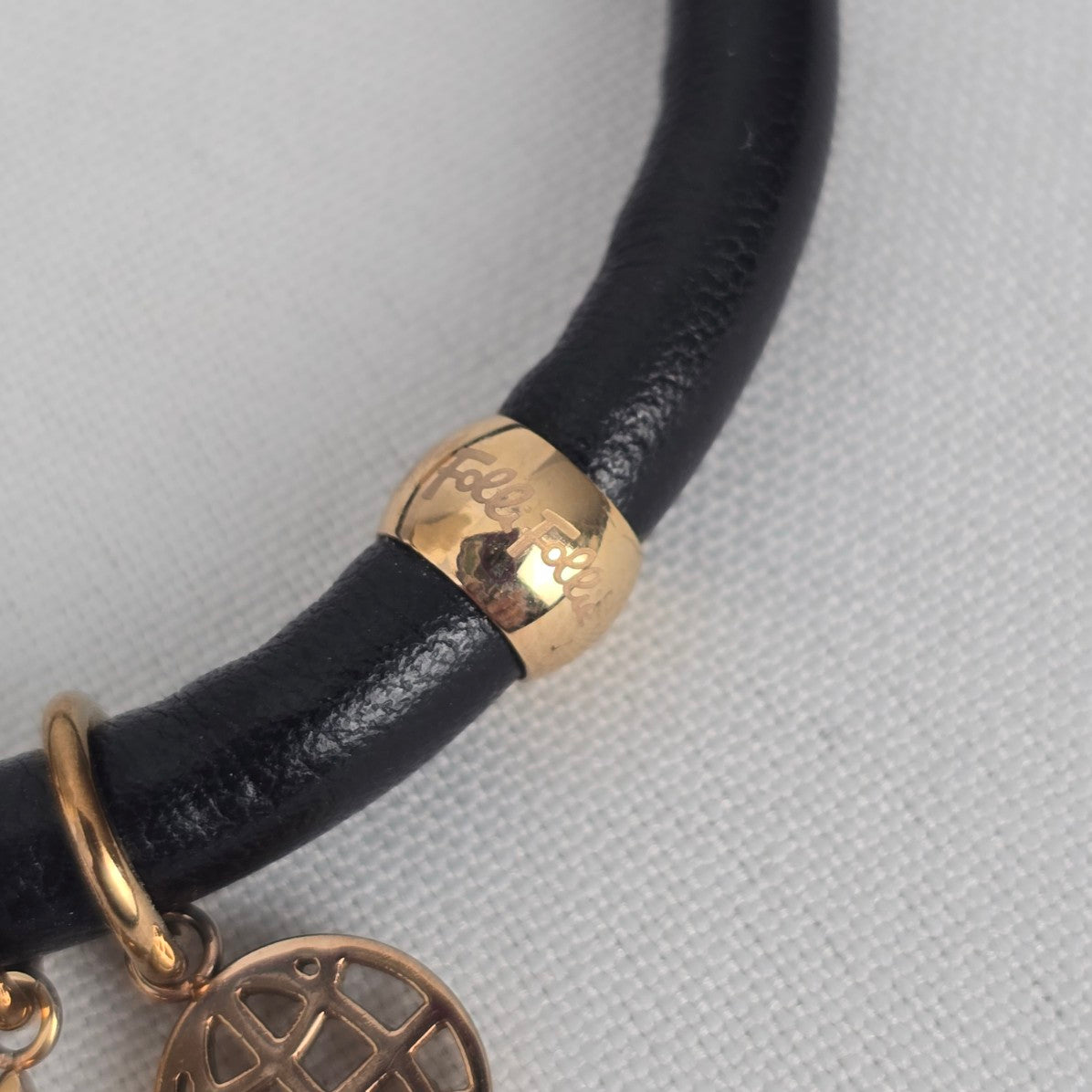 Folli Follie Rose Gold Plated Heart Black Leather Bracelet