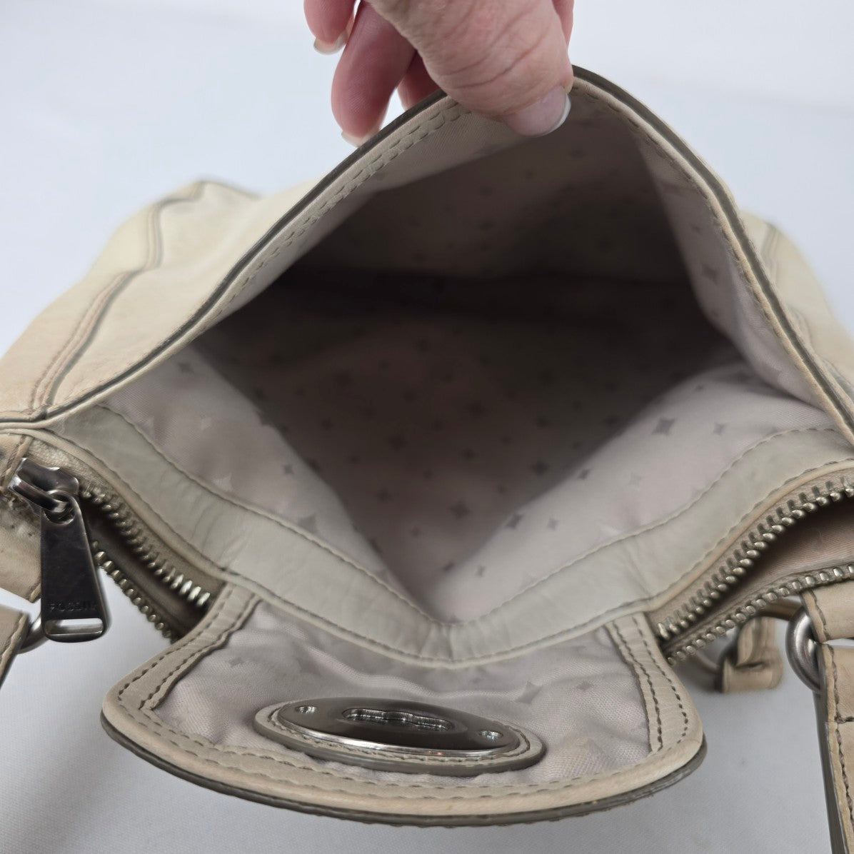 Fossil Cream Leather Crossbody Purse
