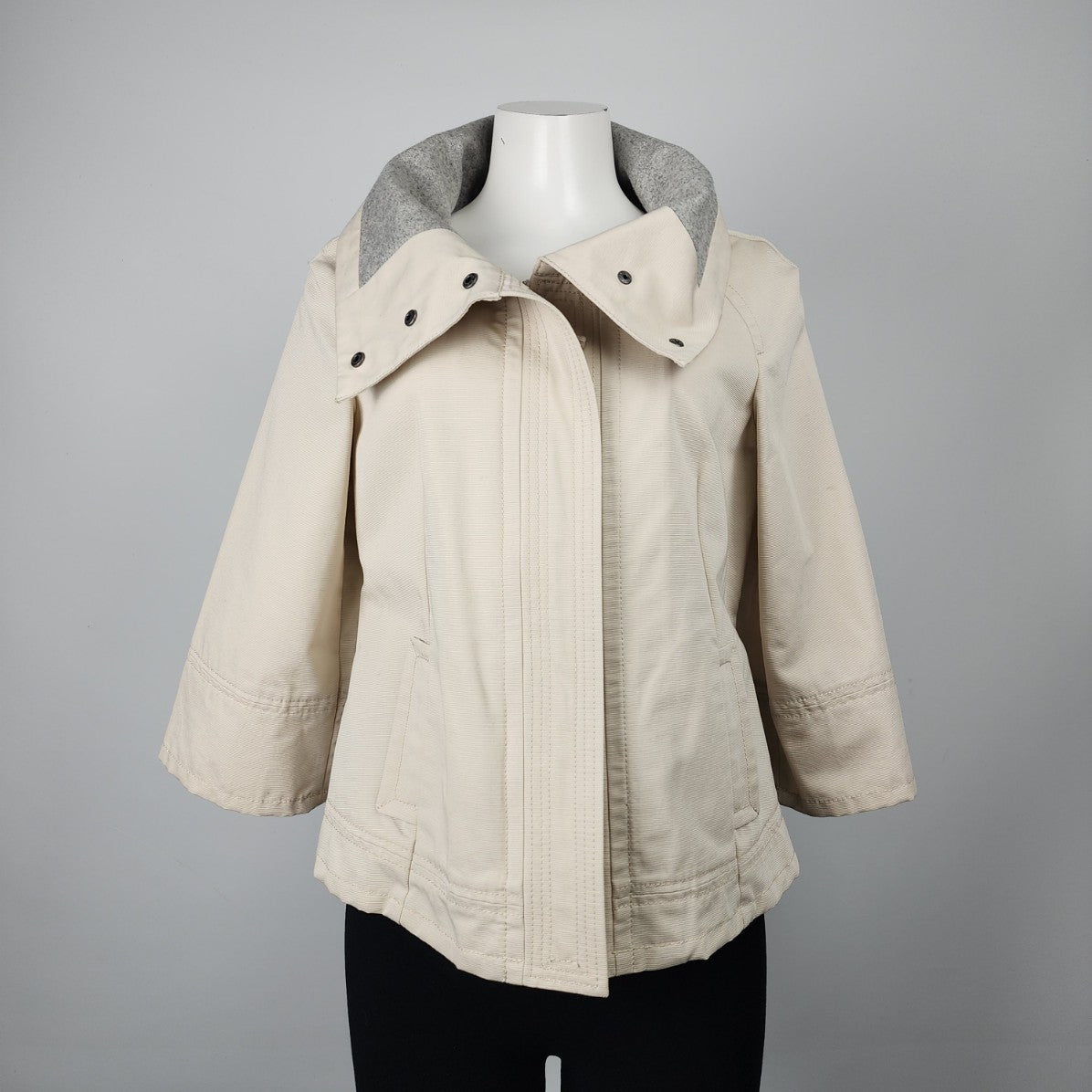 Gap Cream Cotton 3/4 Sleeve Zip Up Jacket Size M