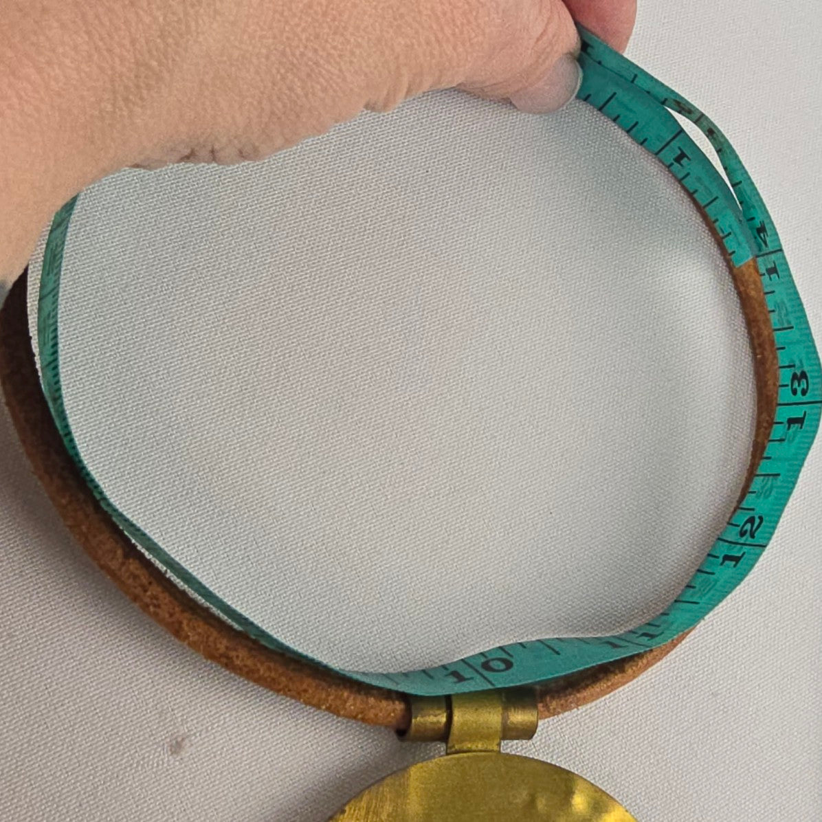 See last photo for length or size measurements, compare our measurements to something in your jewelry box to know if this piece will work for you.
