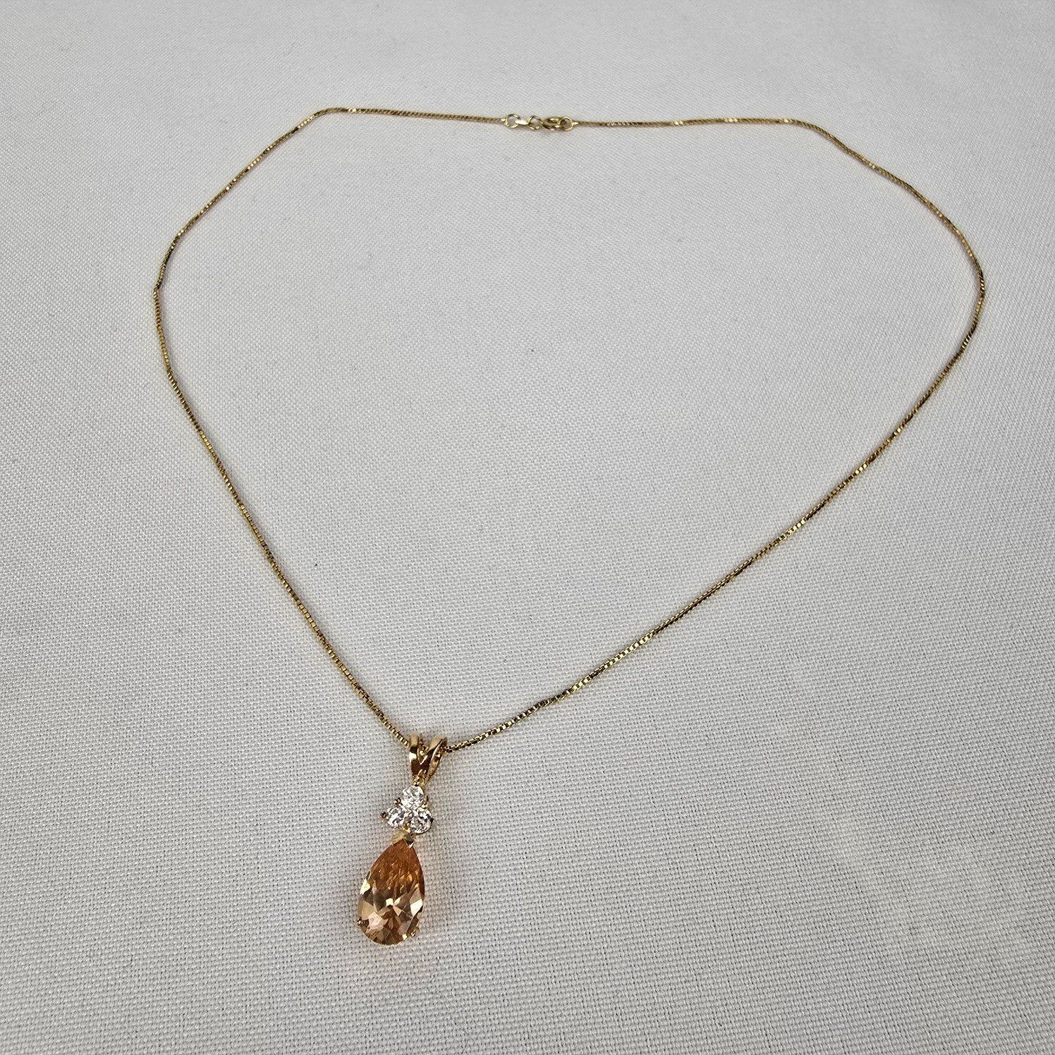 Gold Tone 925 Sterling Crystal Pendant Chain Necklace