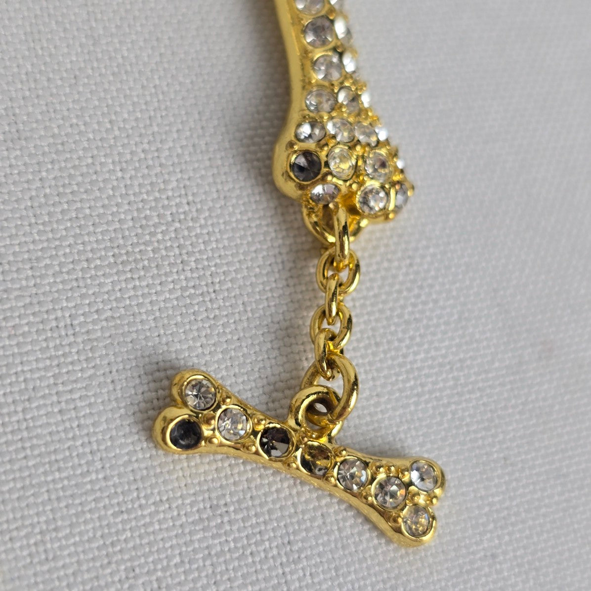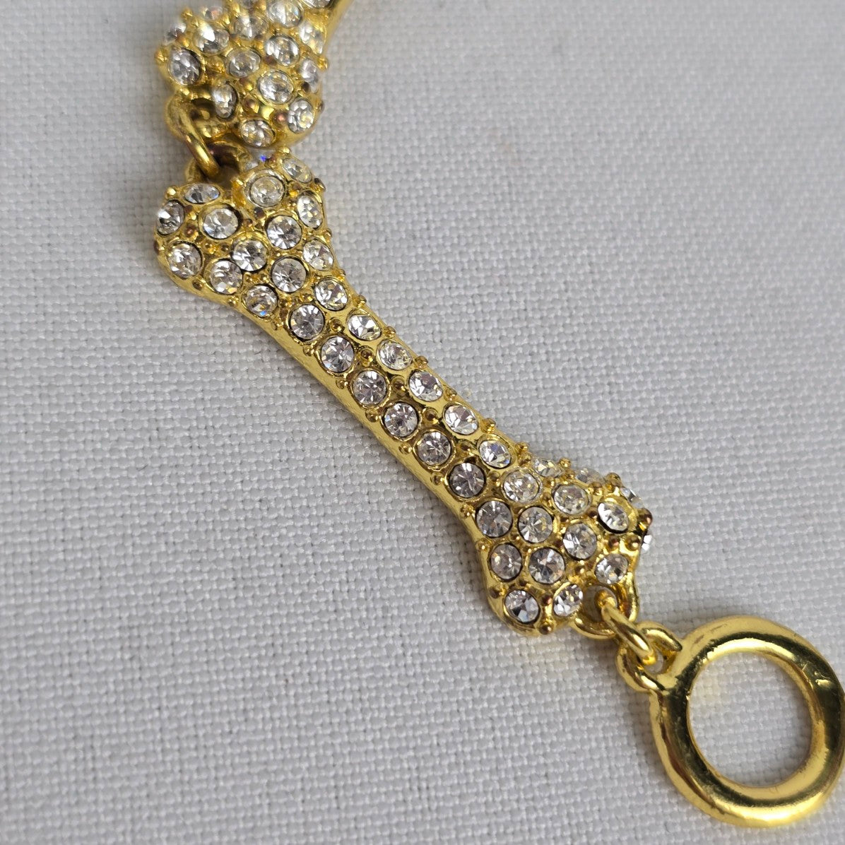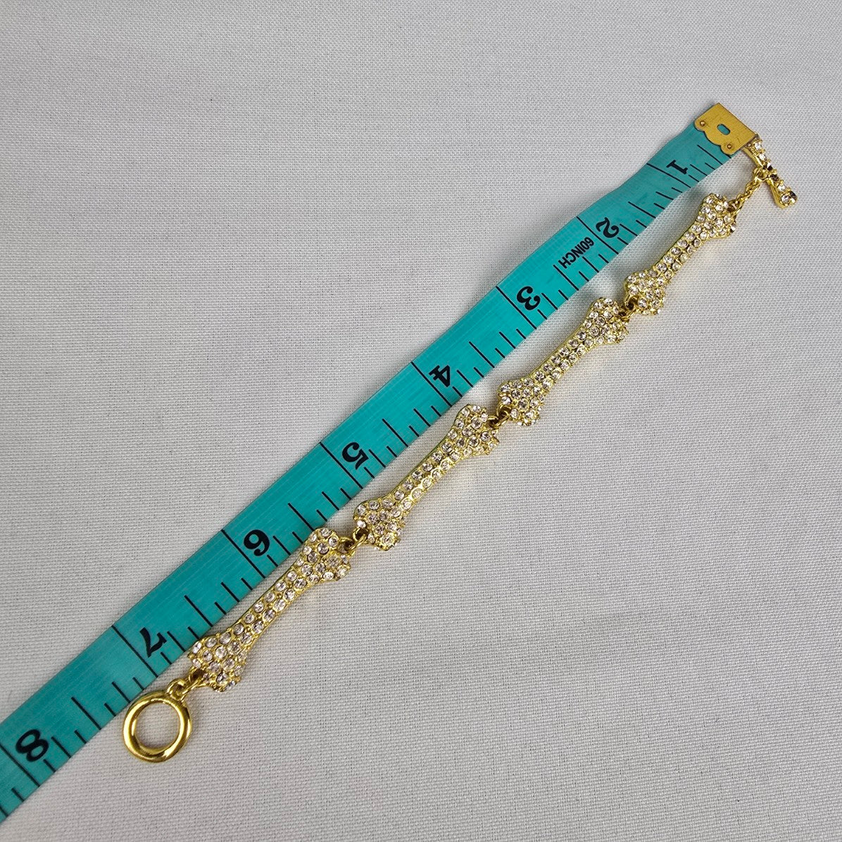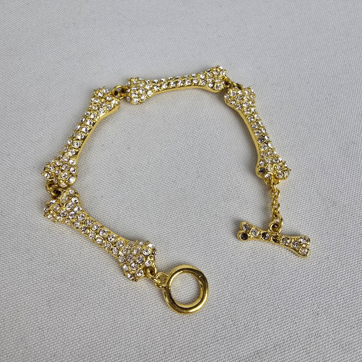 Gold Tone Crystal Dog Bone Link Toggle Bracelet