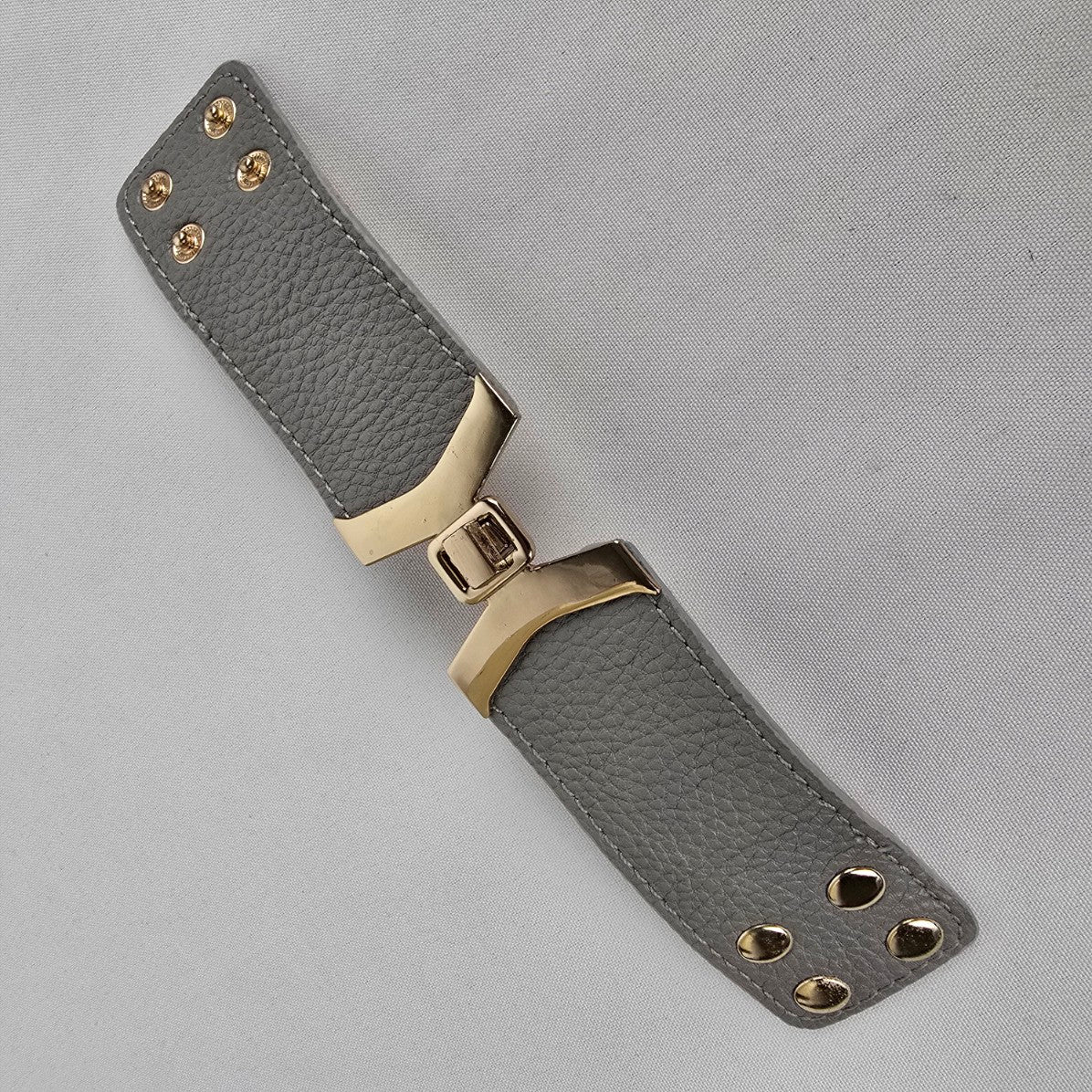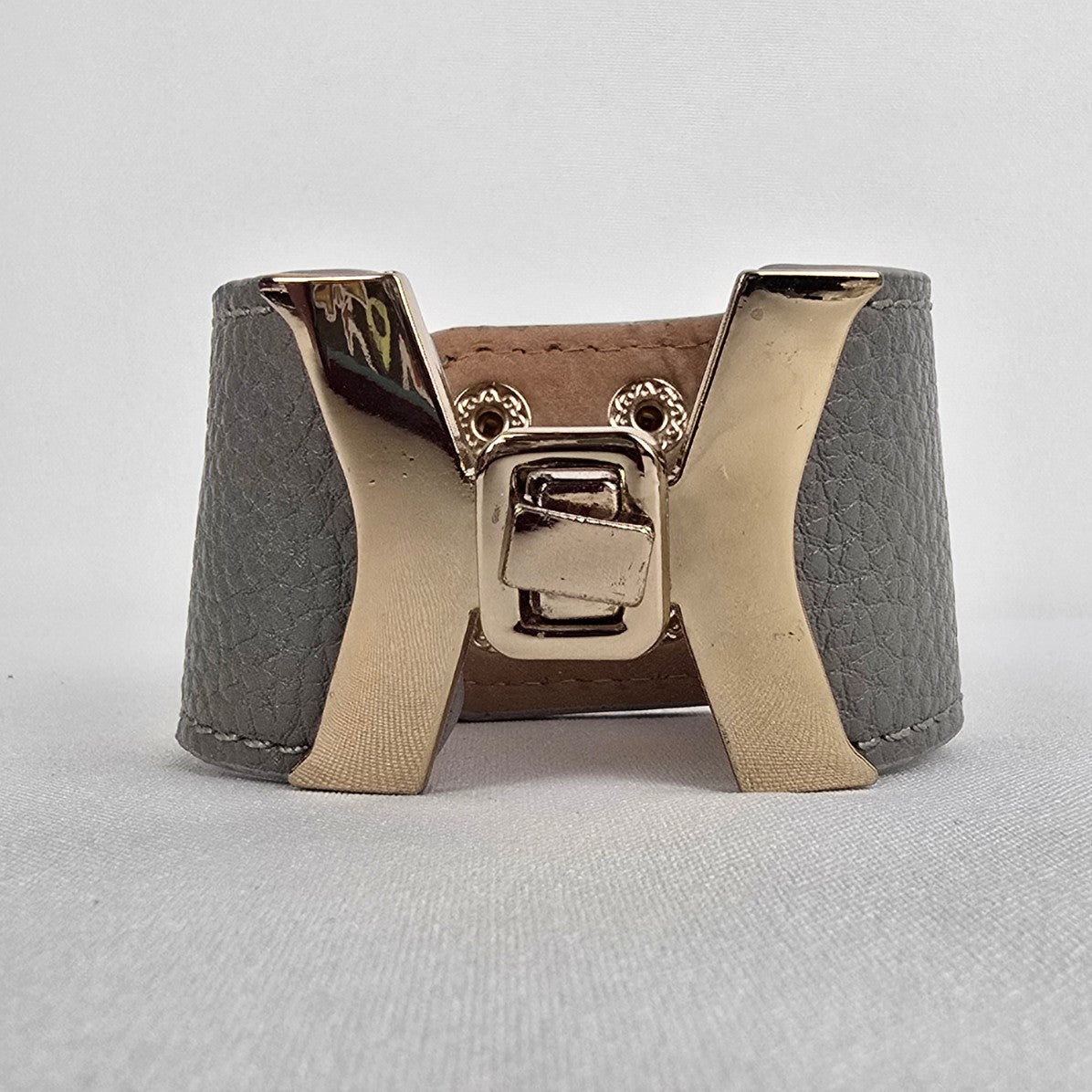 Gold Tone Grey Vegan Leather Snap Bracelet