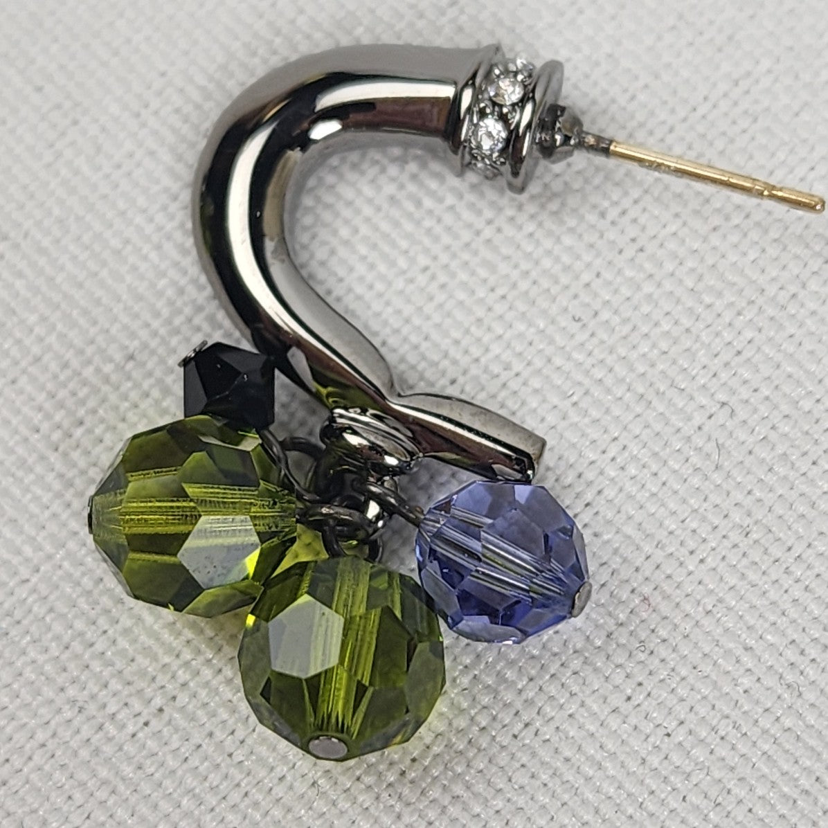 Black Metallic Green Beaded Dangle Hoop Earrings