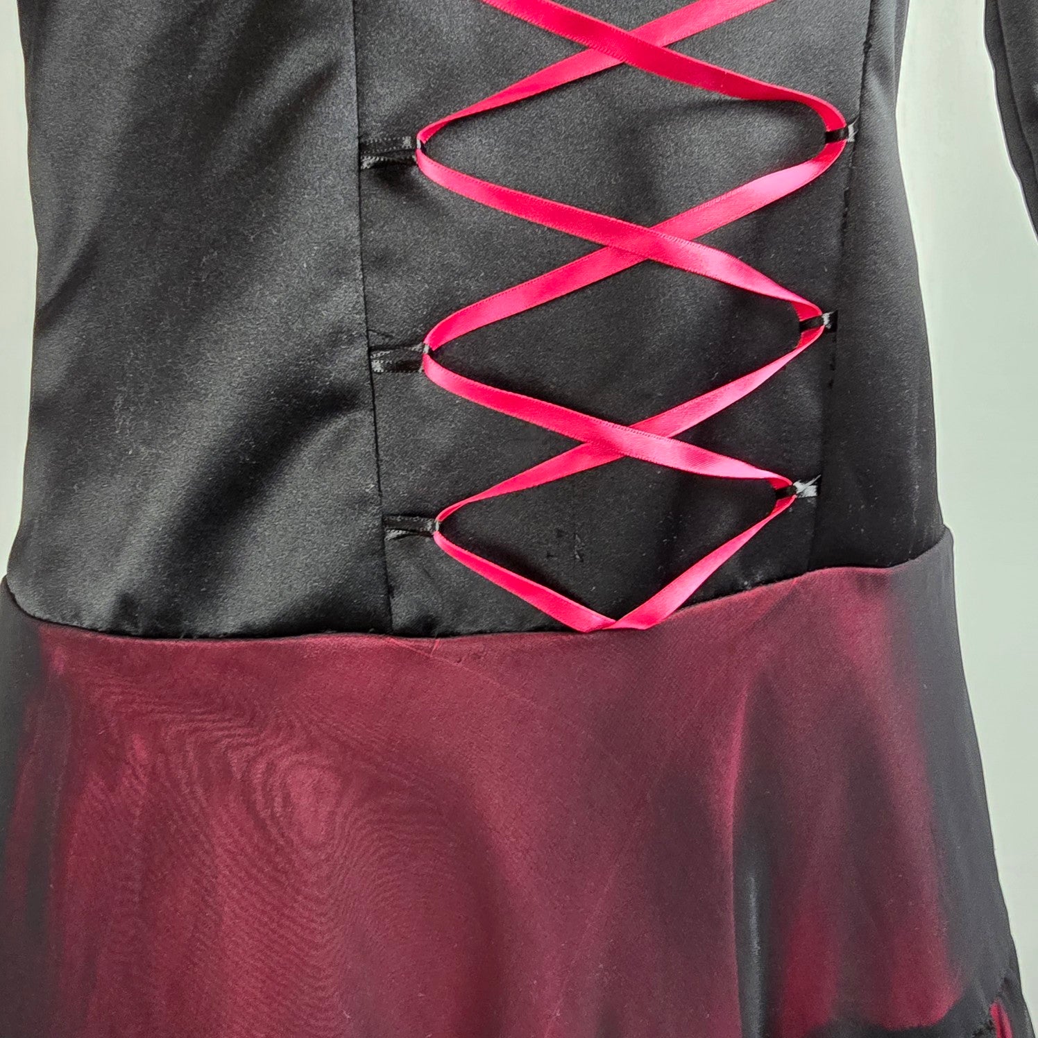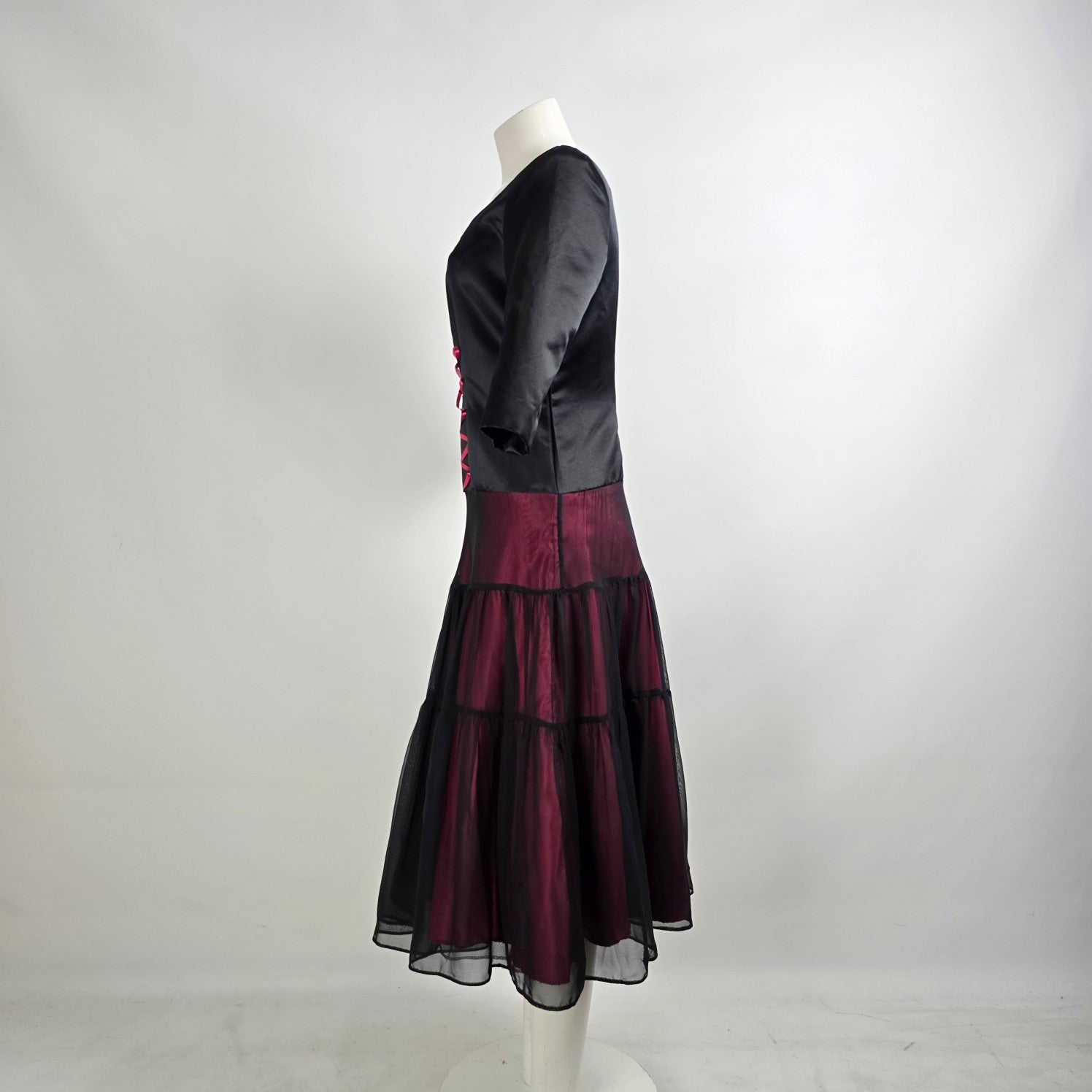 Handmade Black & Pink Lace Up Tulle Skirt Midi Dress Size M