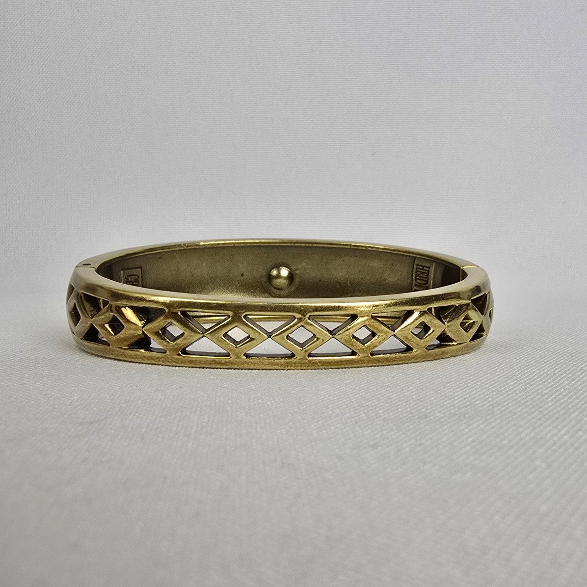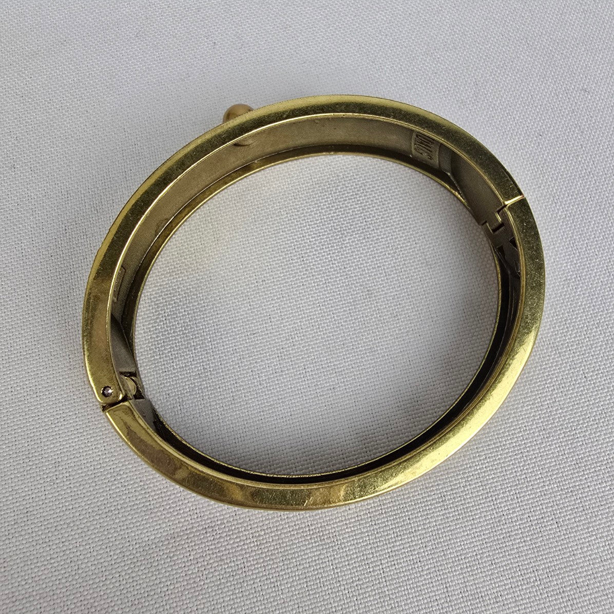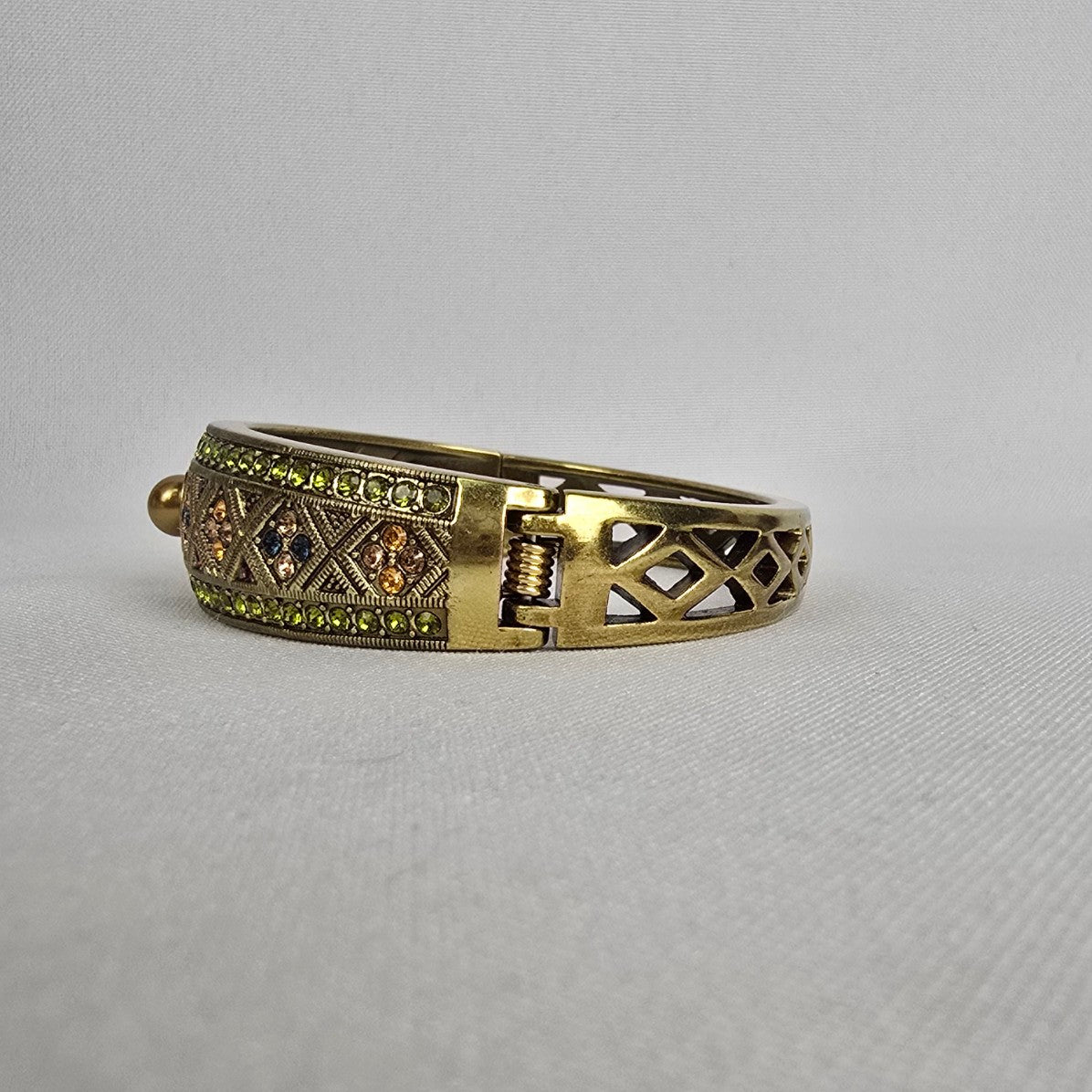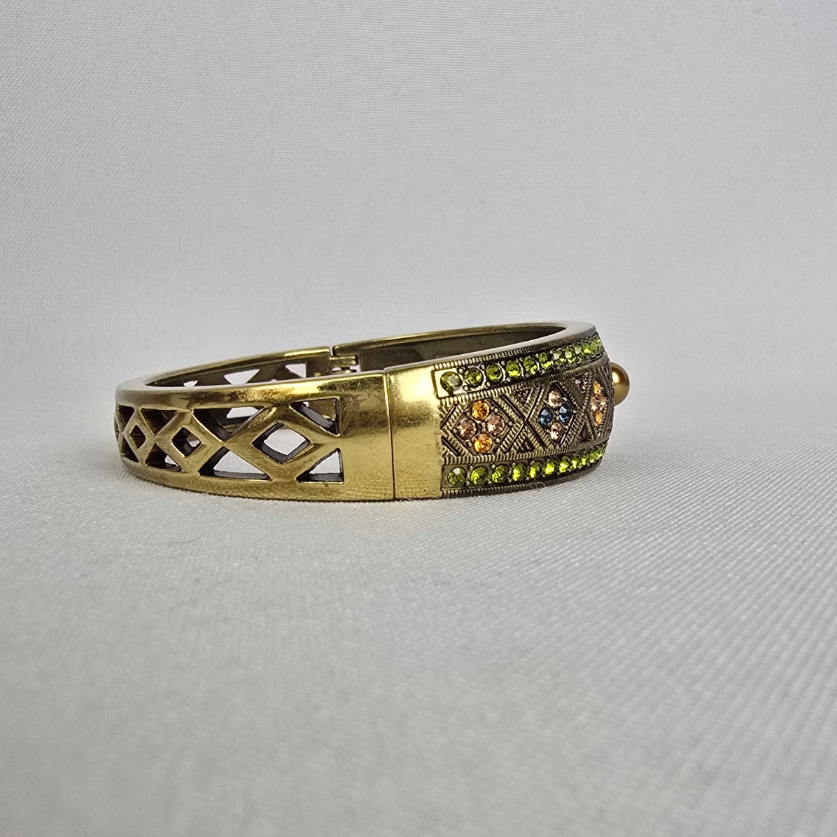 Heidi Daus Golden Faux Pearl Aqua Garnet Topaz Rhinestone Bangle Bracelet