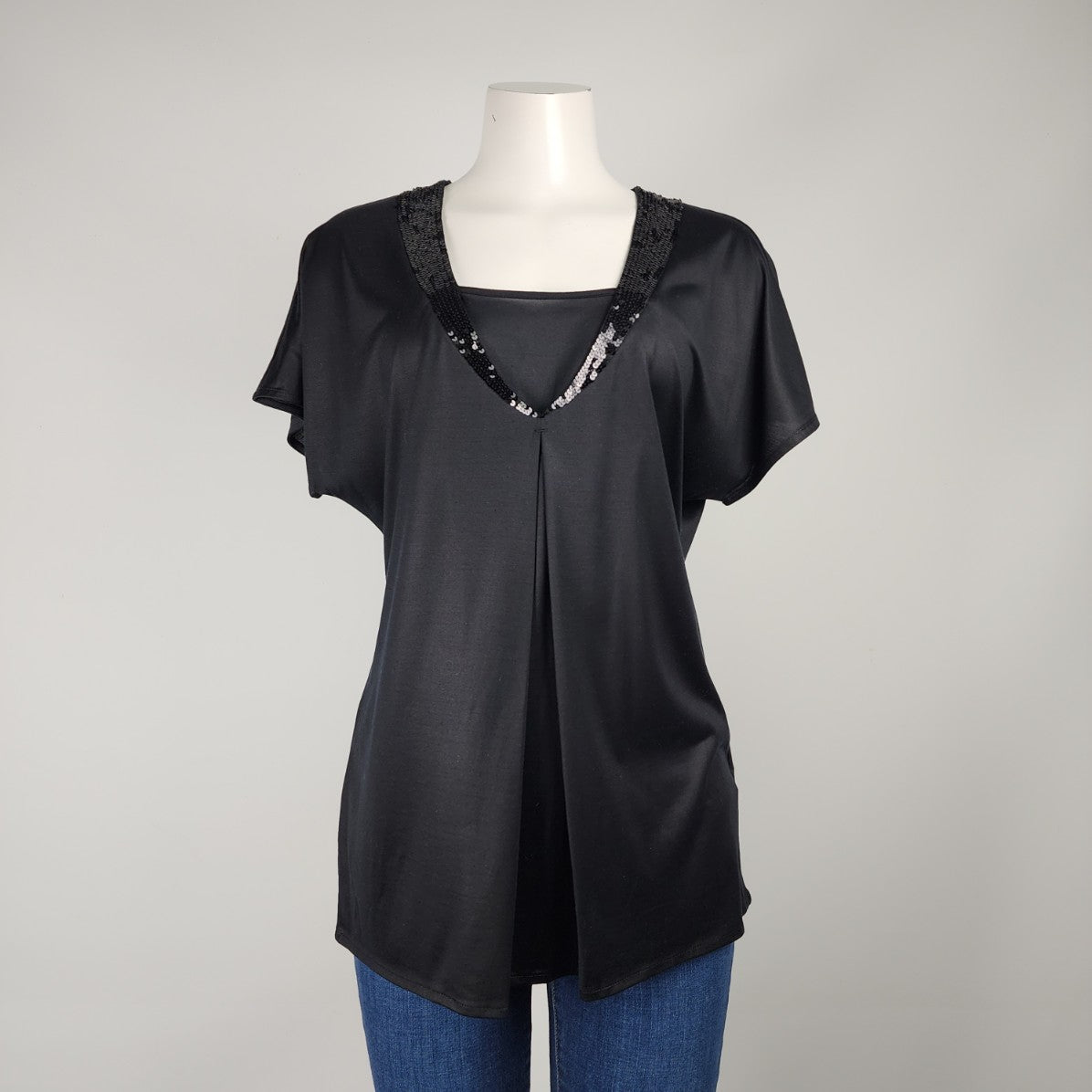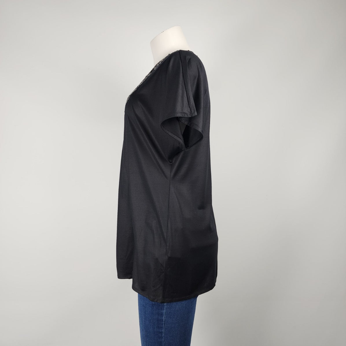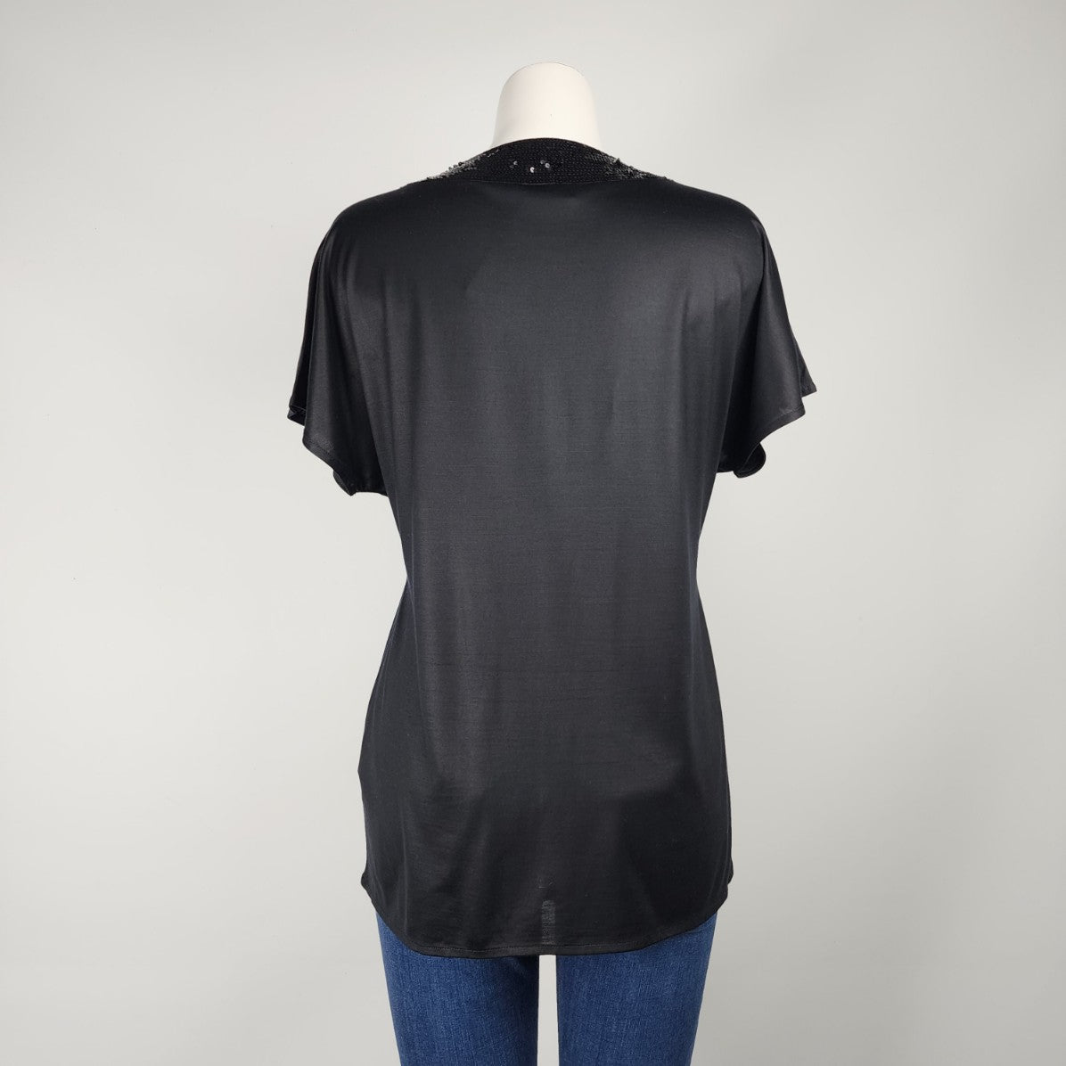 Hugo Boss Black Silk Jersey Sequined Short Sleeve Top Size XL