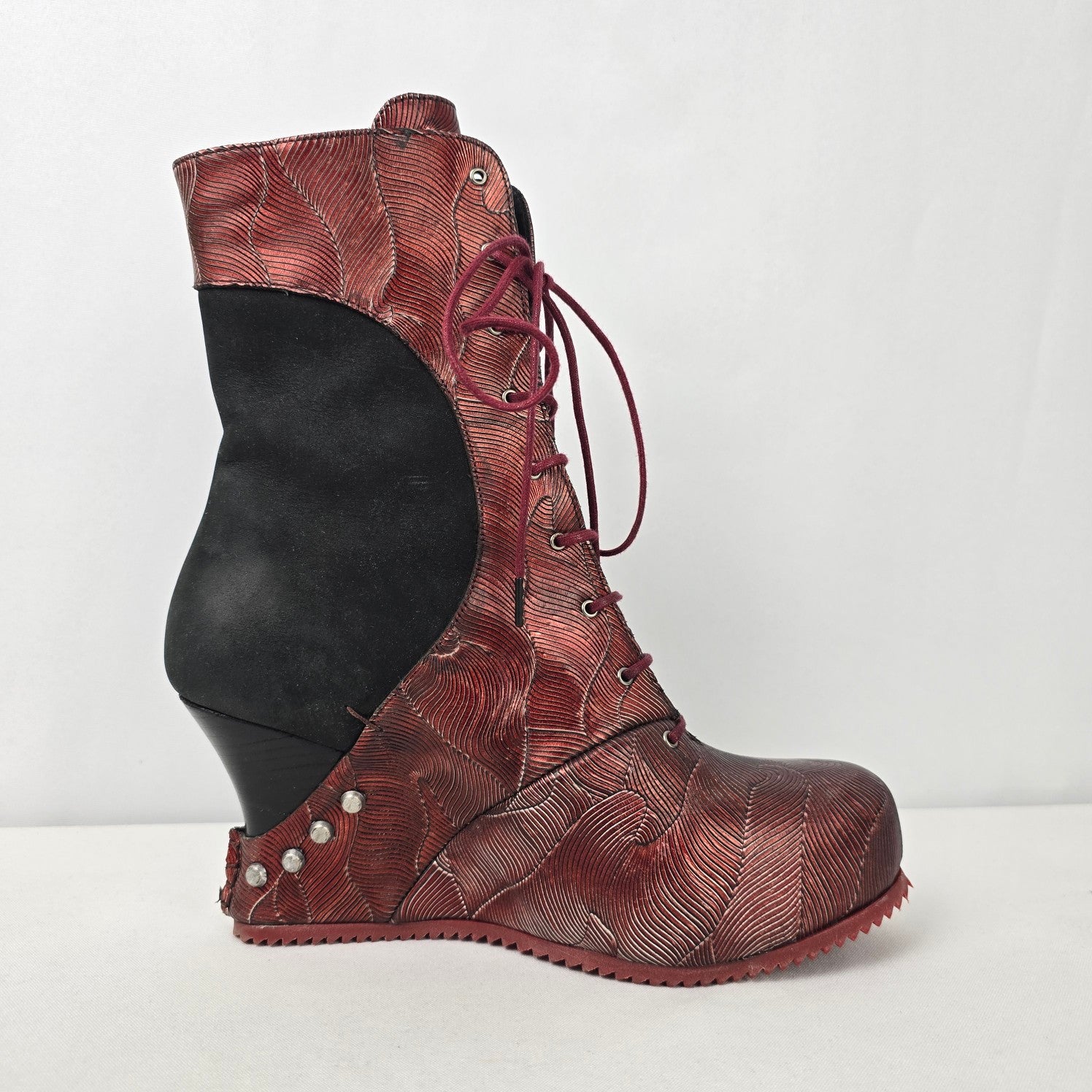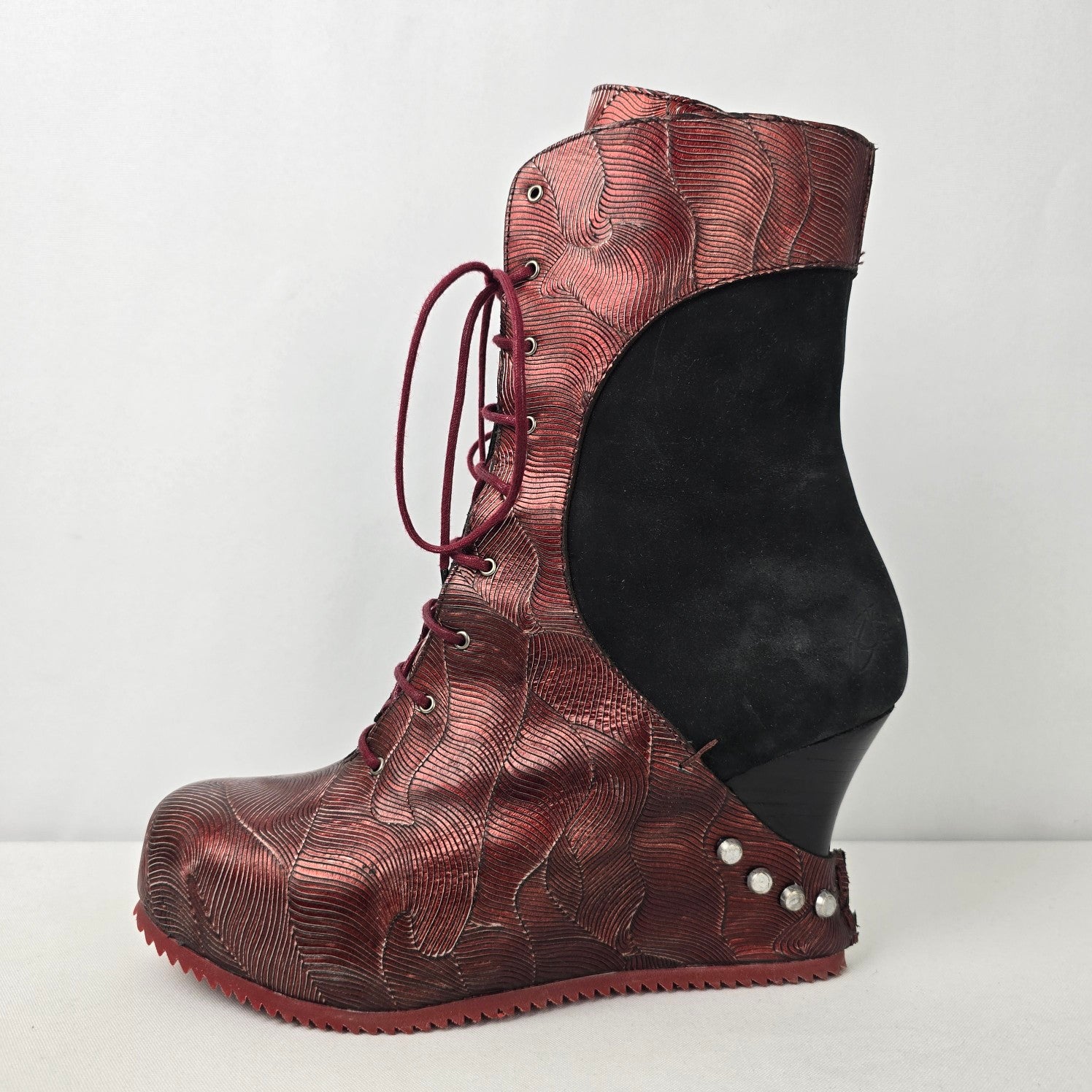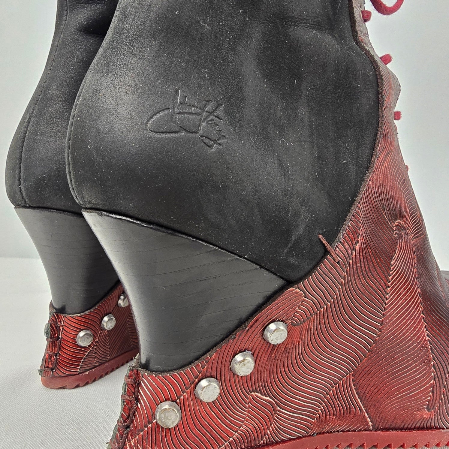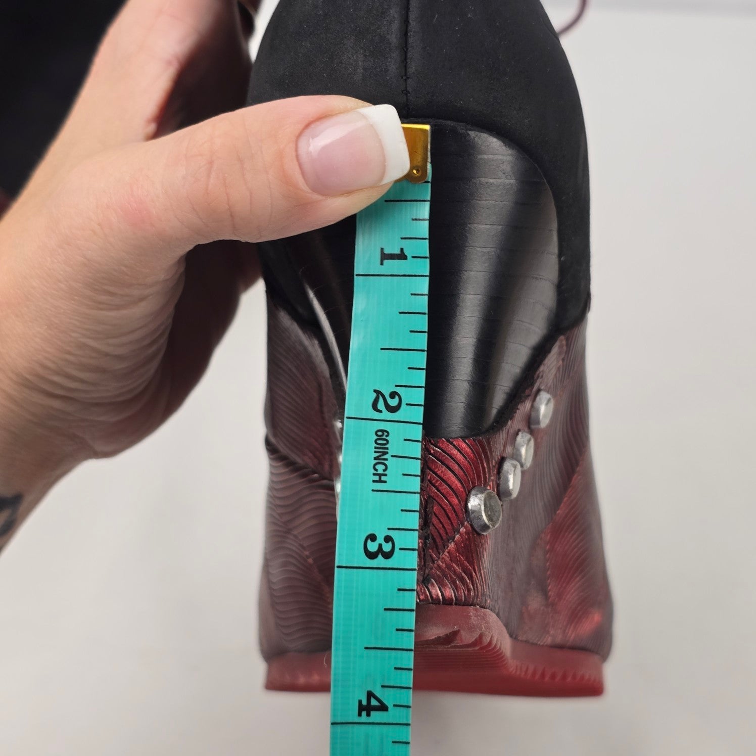 John Fluevog Conquer Sofia Burgundy Leather & Suede Lace-up Wedge Size 10