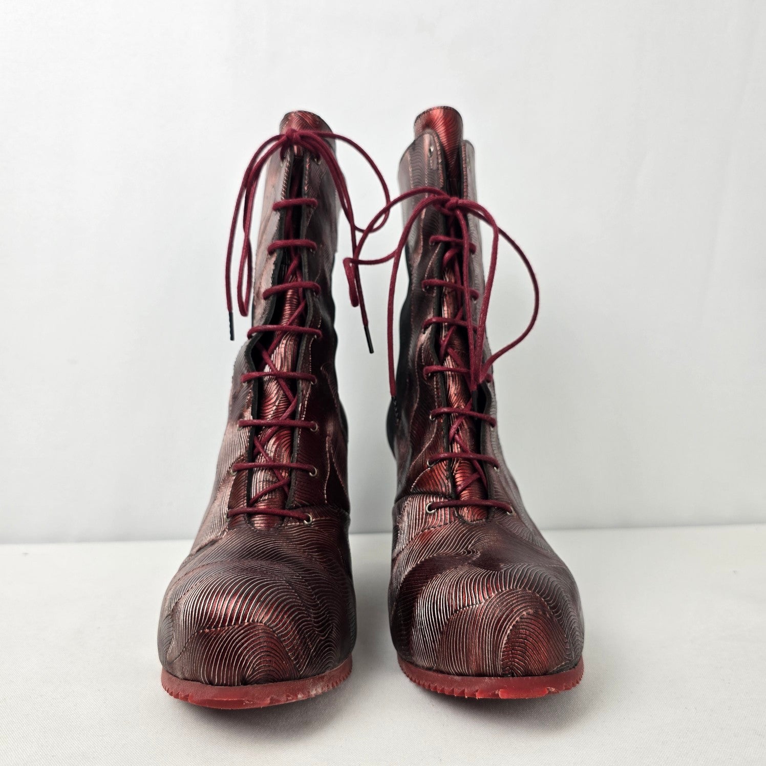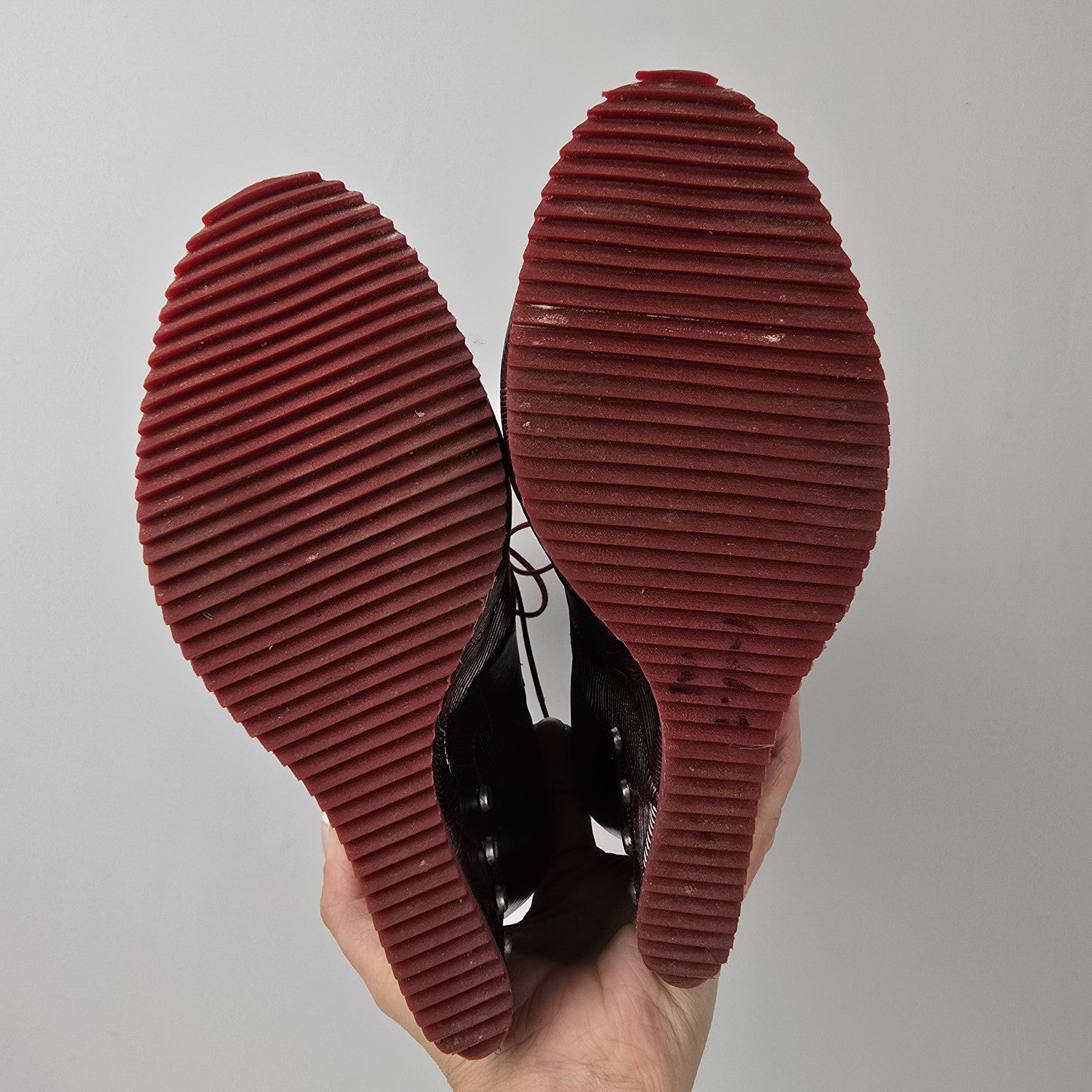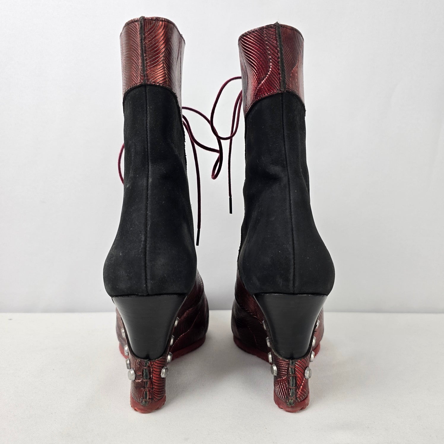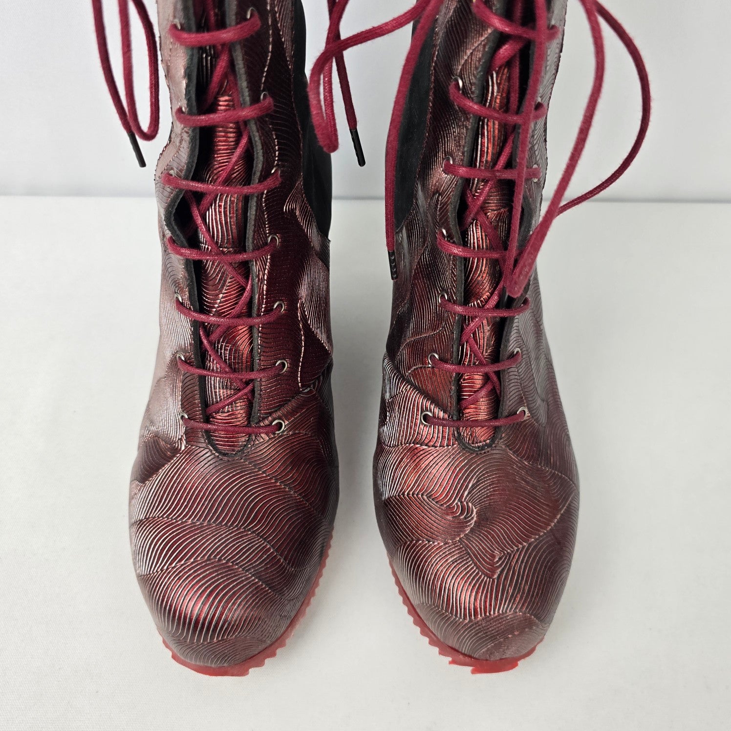 John Fluevog Conquer Sofia Burgundy Leather & Suede Lace-up Wedge Size 10