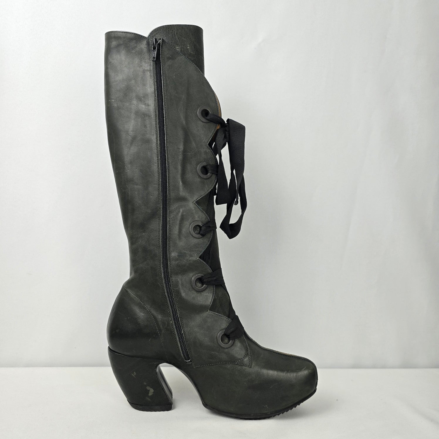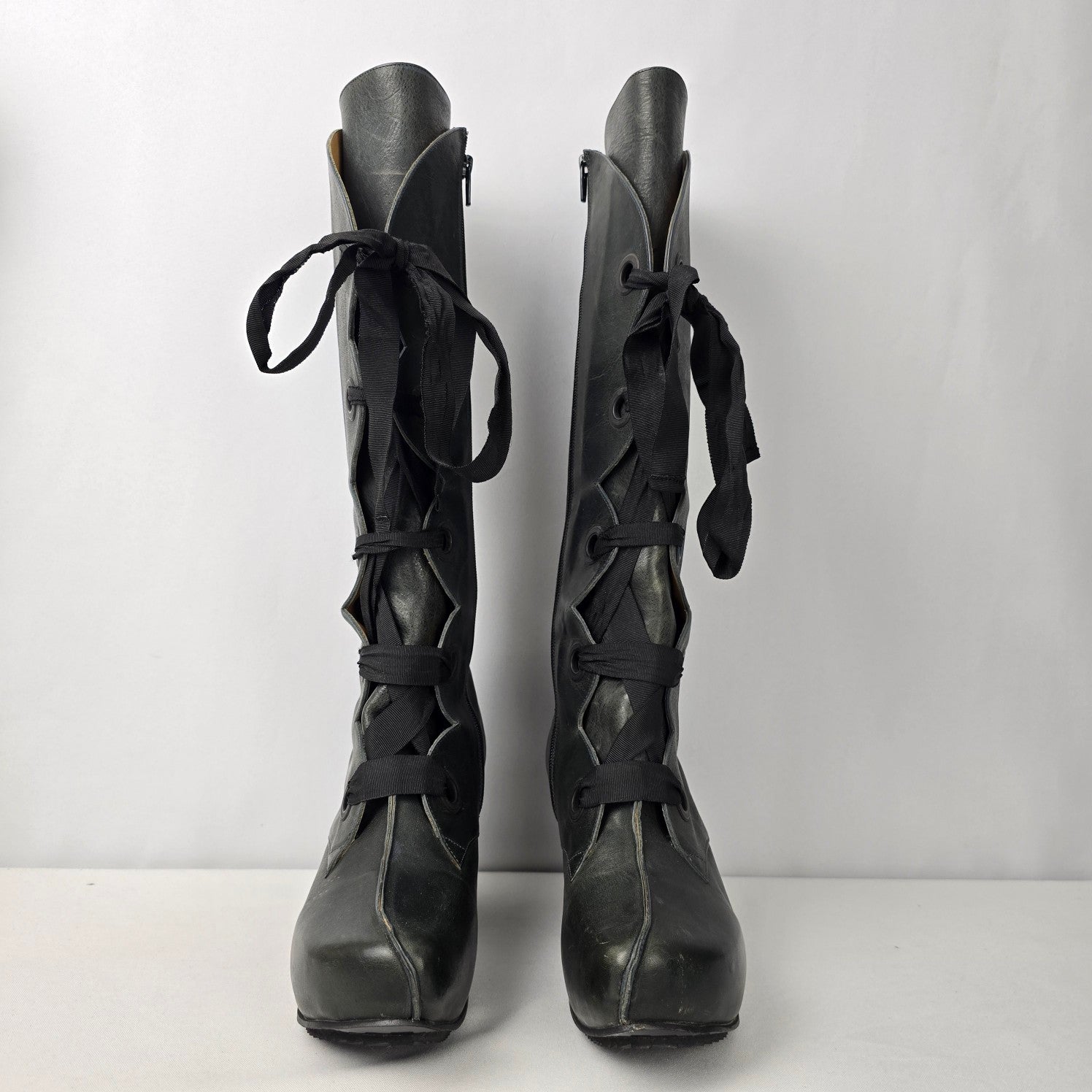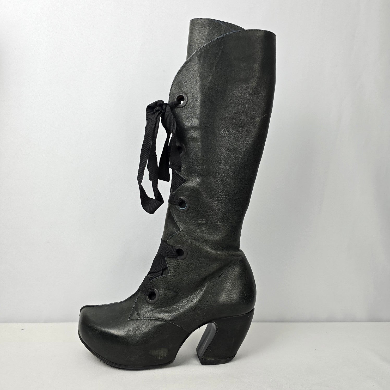 John Fluevog Grey Leather Prepare Compass Platform Lace-up Boots Size 10