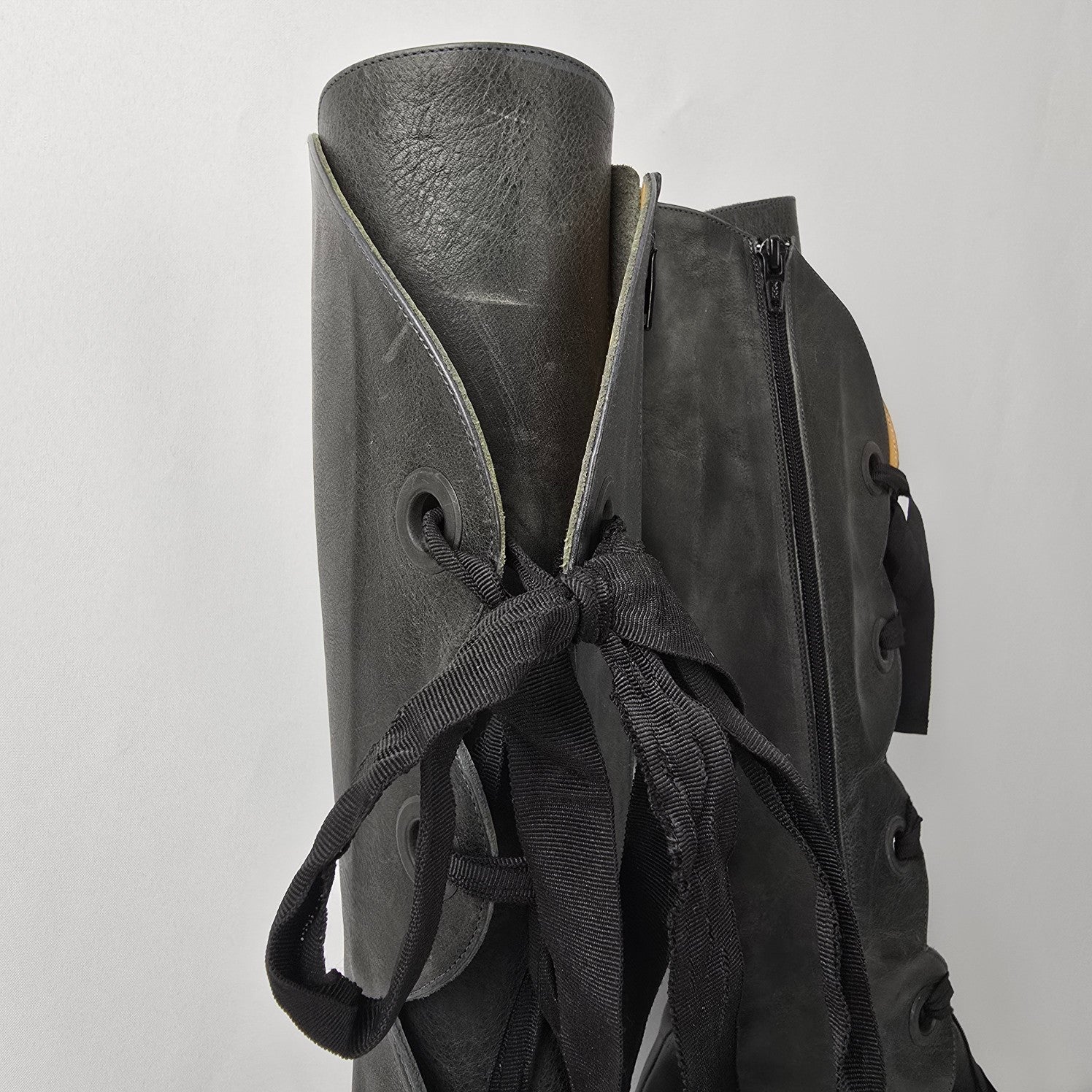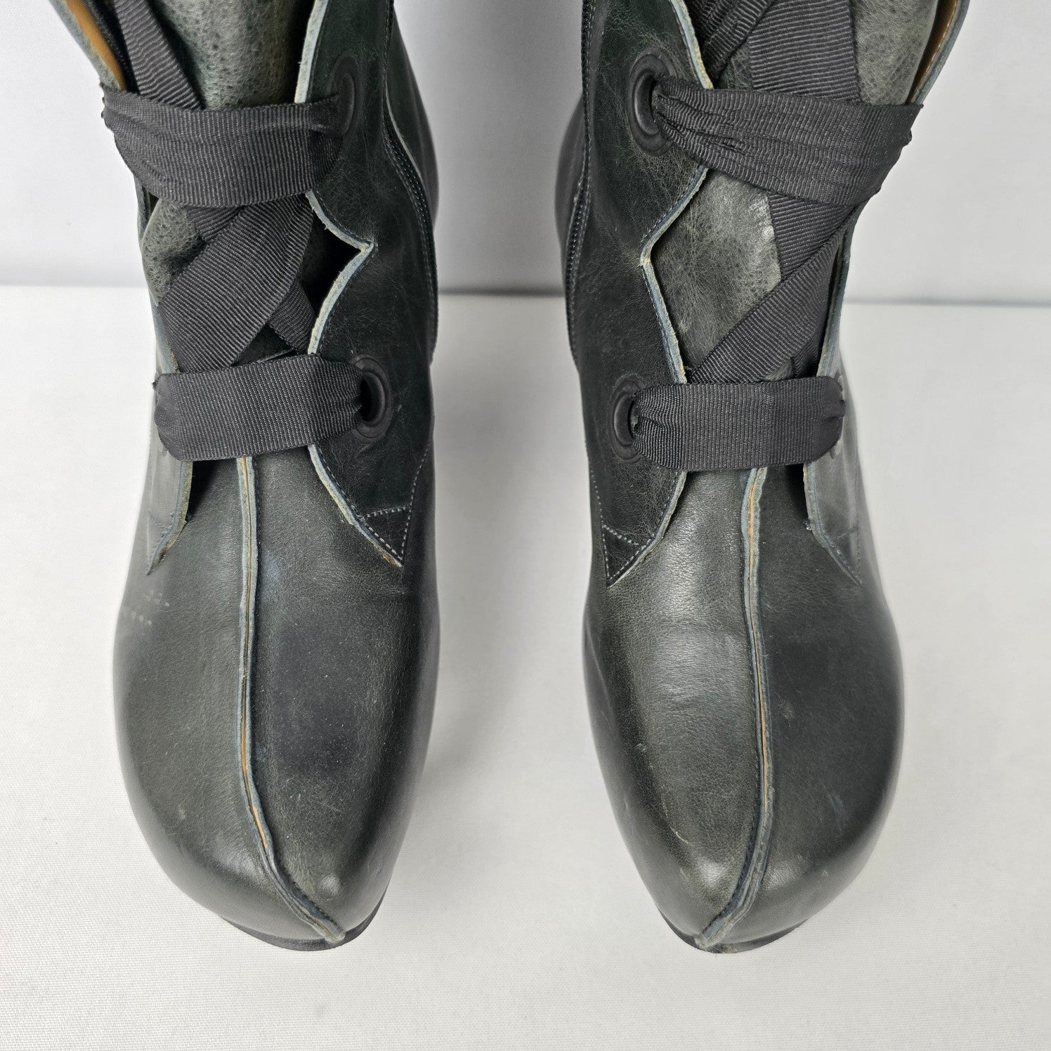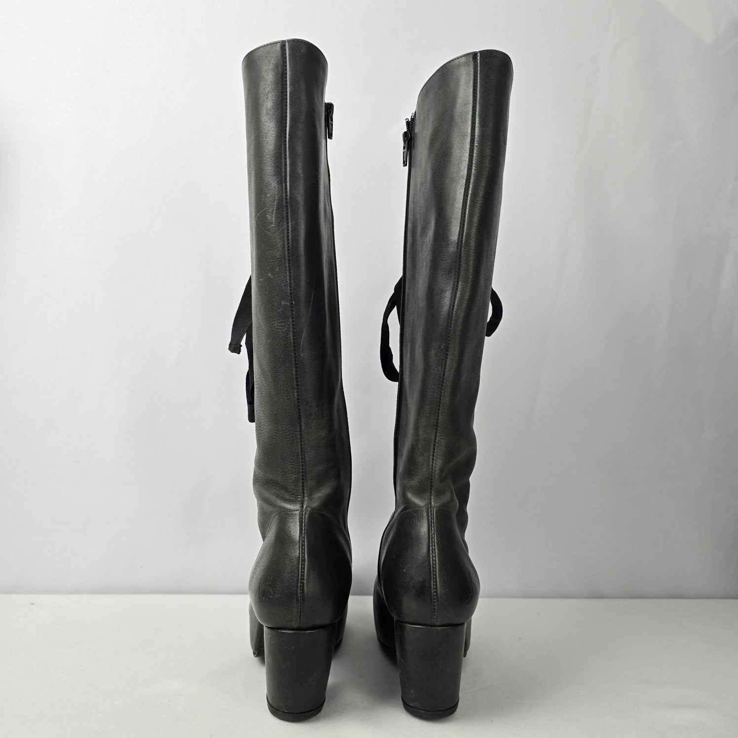 John Fluevog Grey Leather Prepare Compass Platform Lace-up Boots Size 10