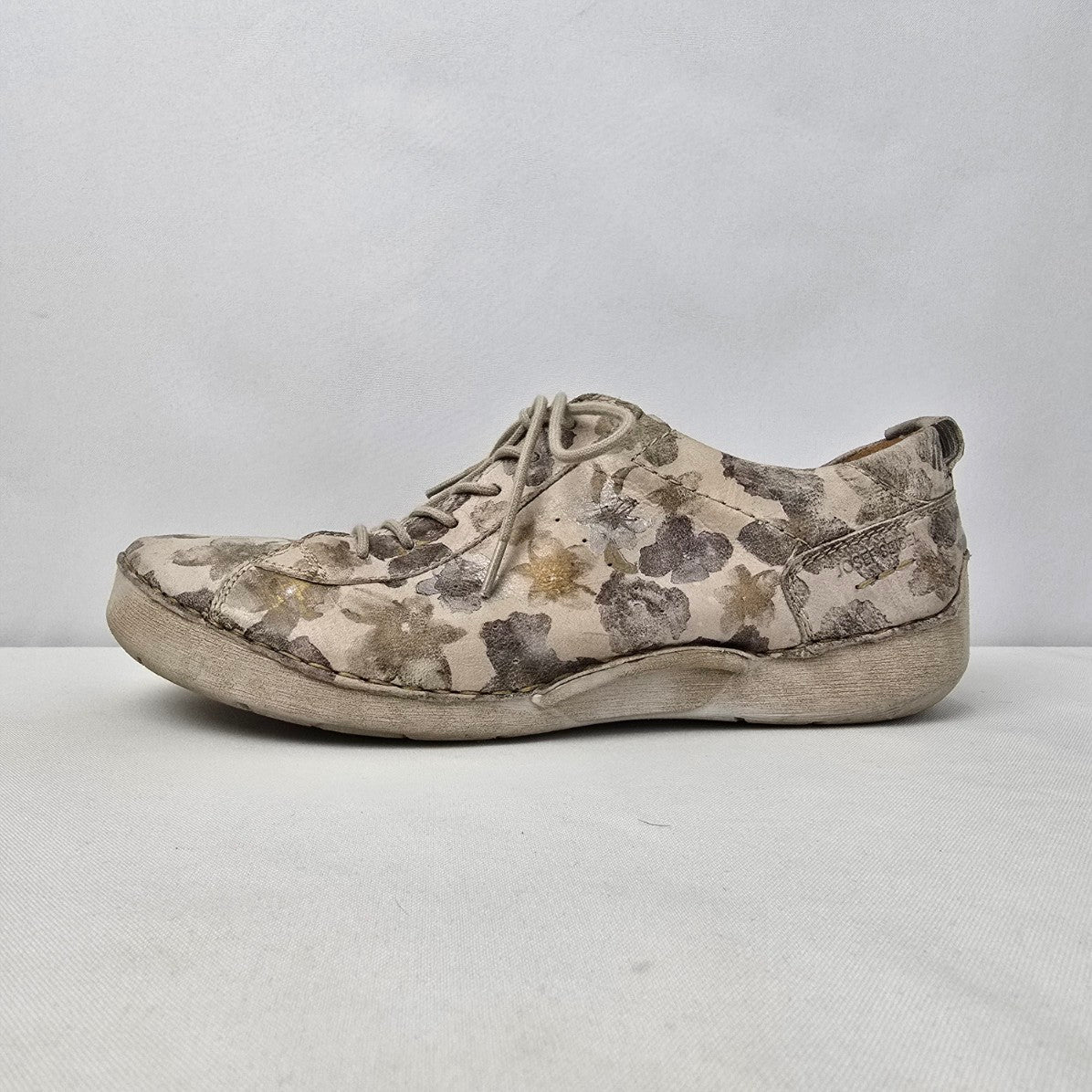 Josef Seibel Grey Floral Leather Lace Up Sneakers Size 9