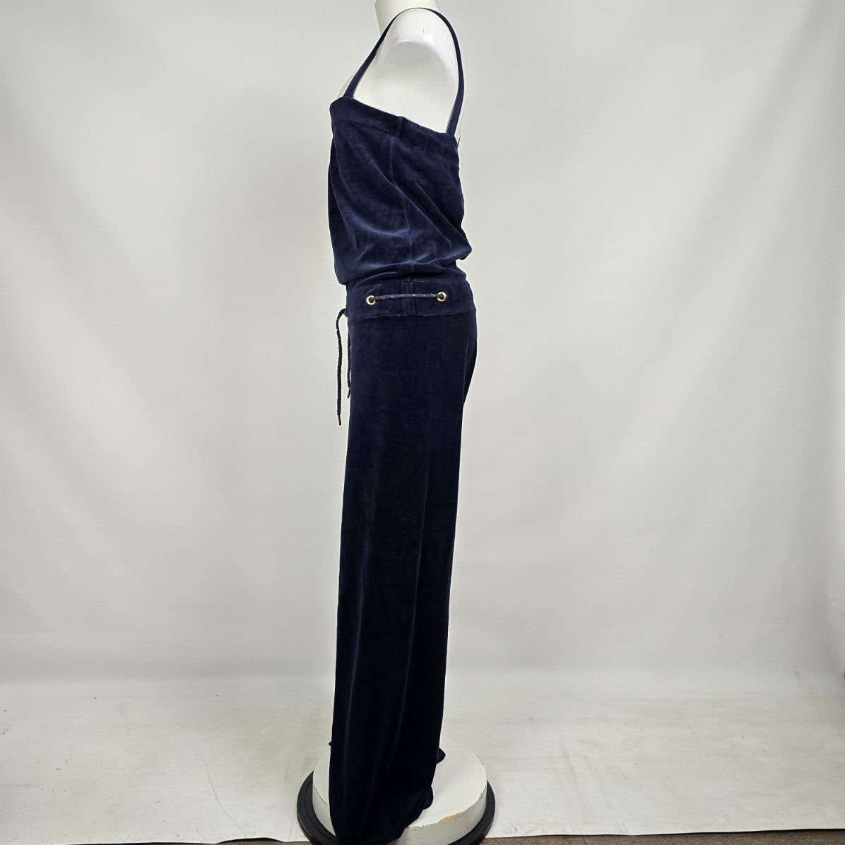 Juicy Couture Blue Velour Velvet Drawstring Wide Leg Jumpsuit Size M