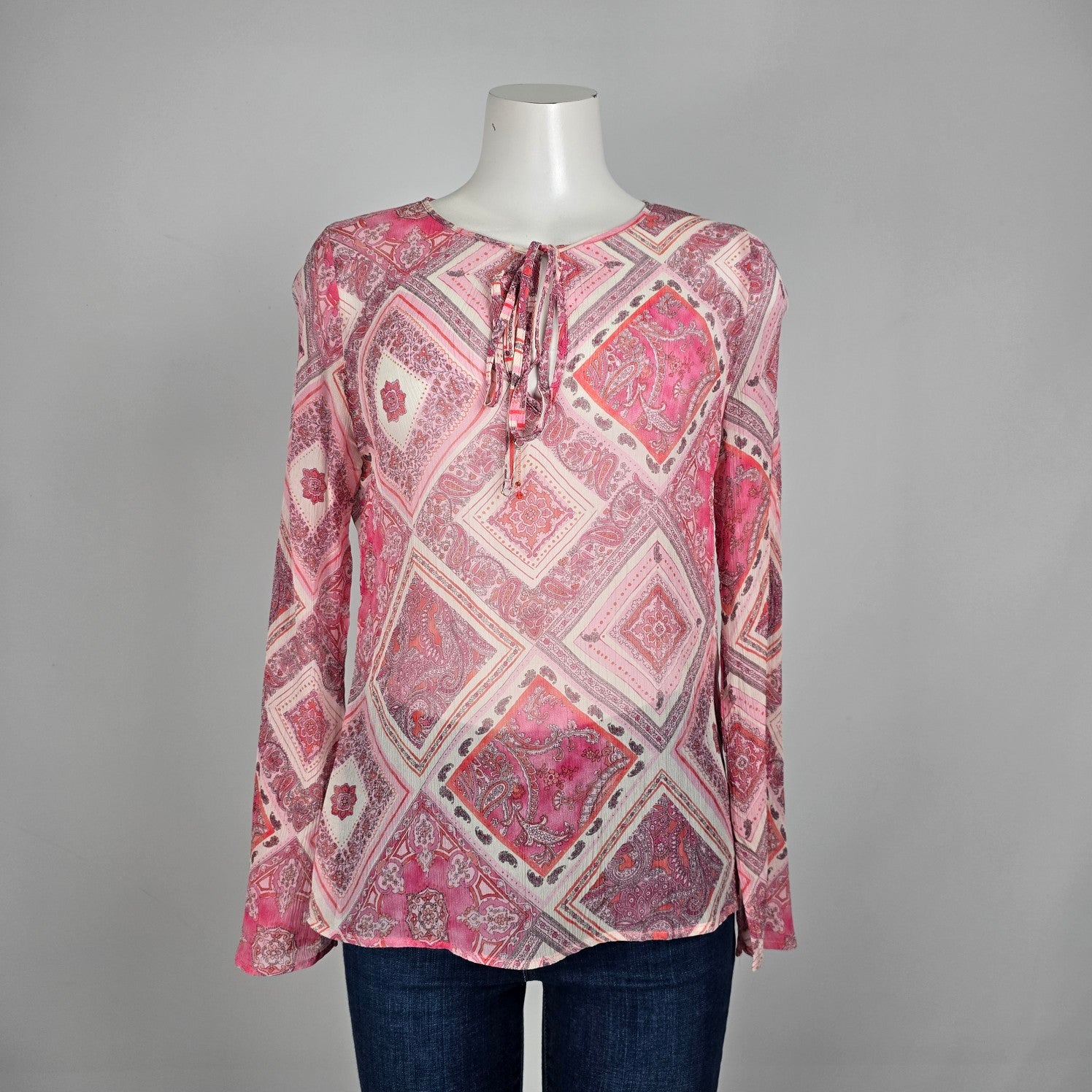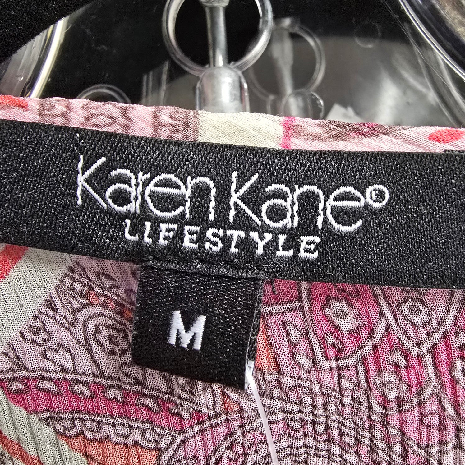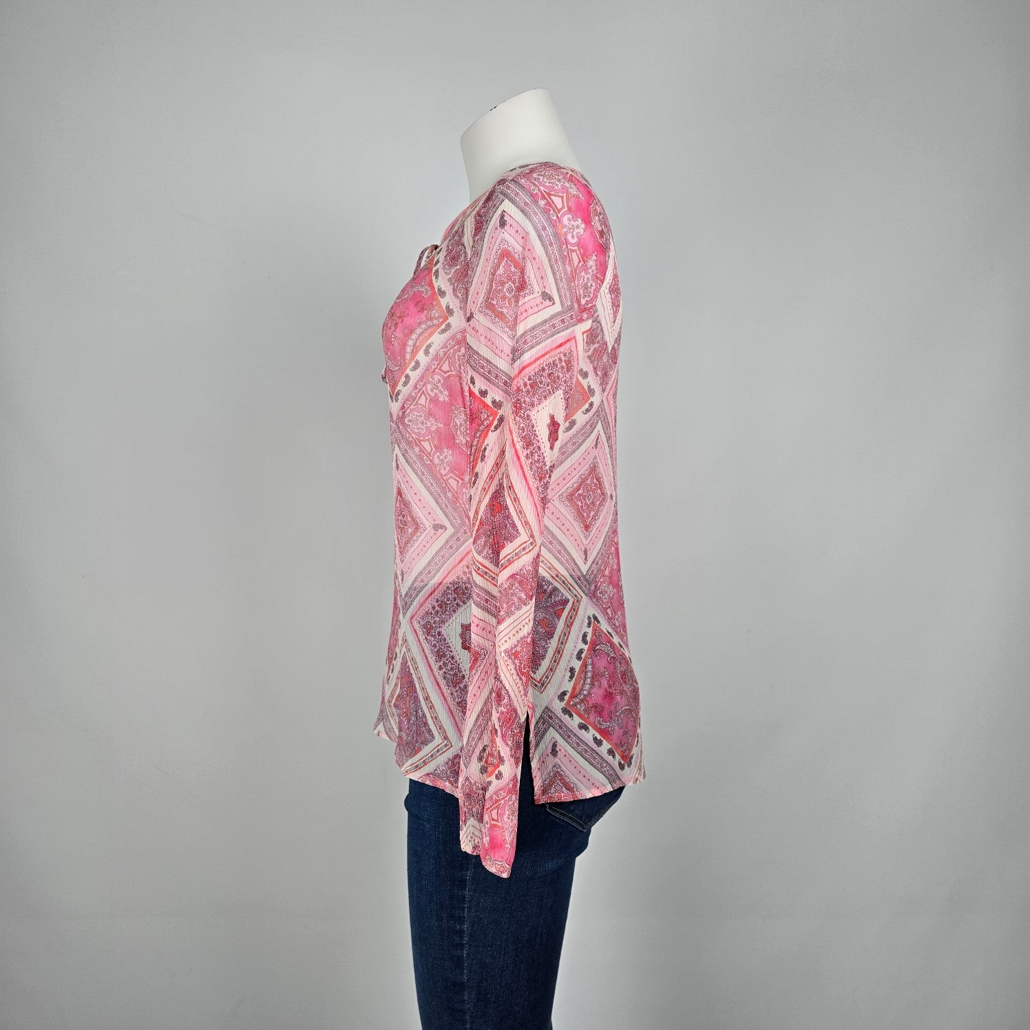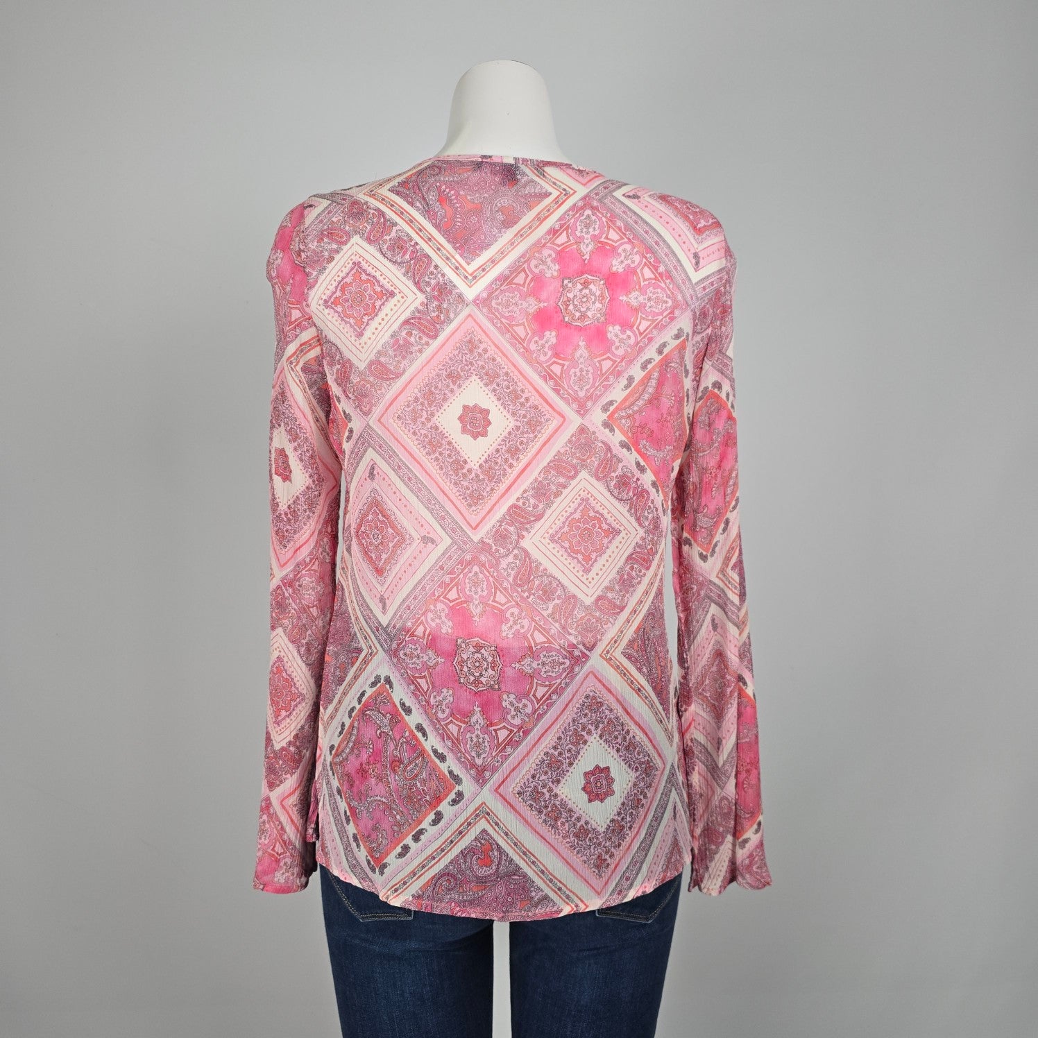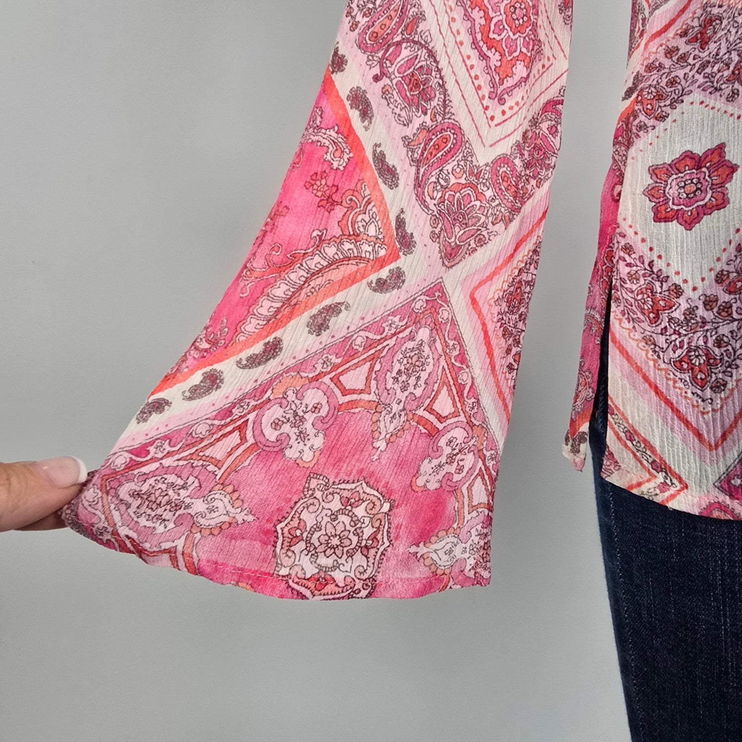 Karen Kane Pink Paisley Belle Sleeve Sheer Blouse Size M
