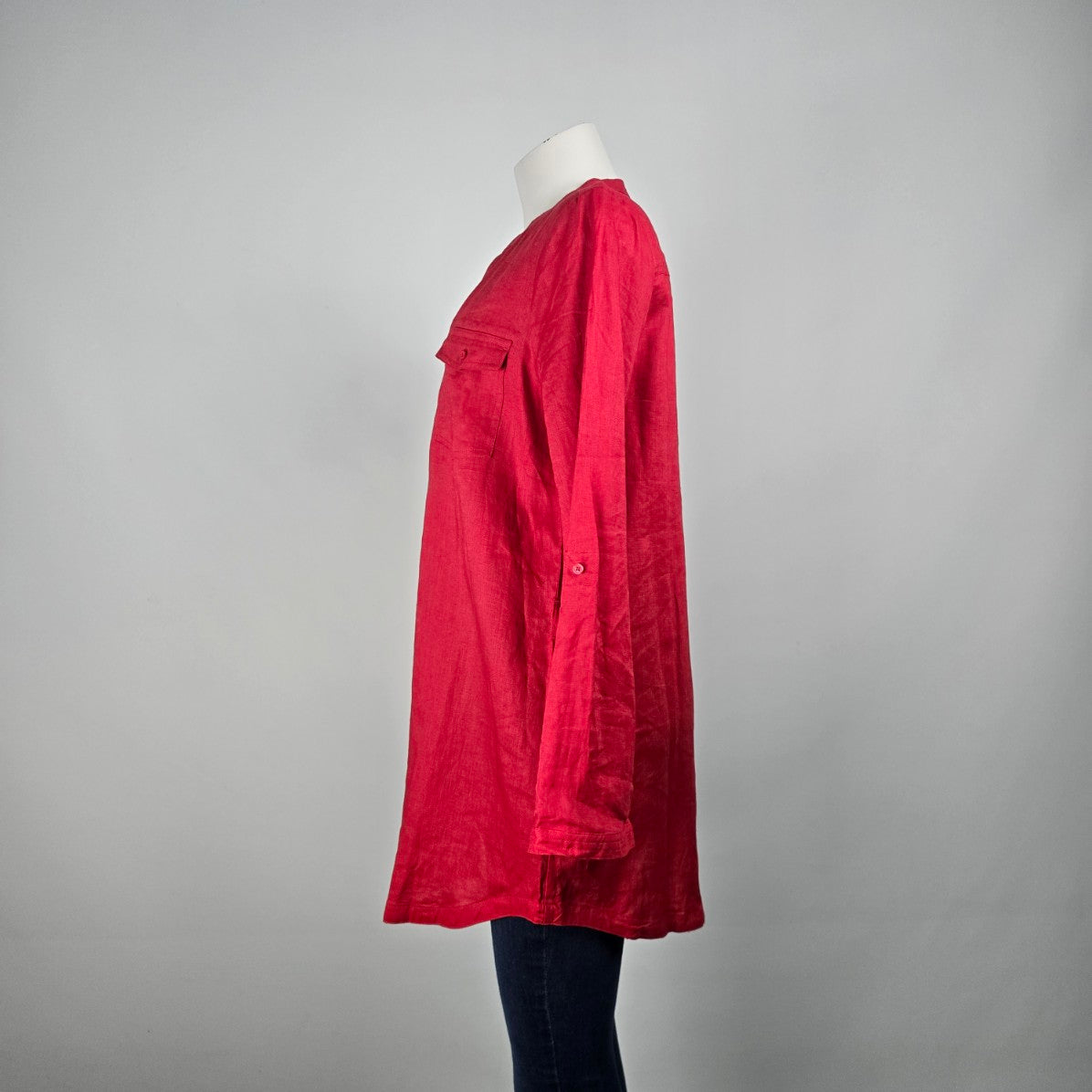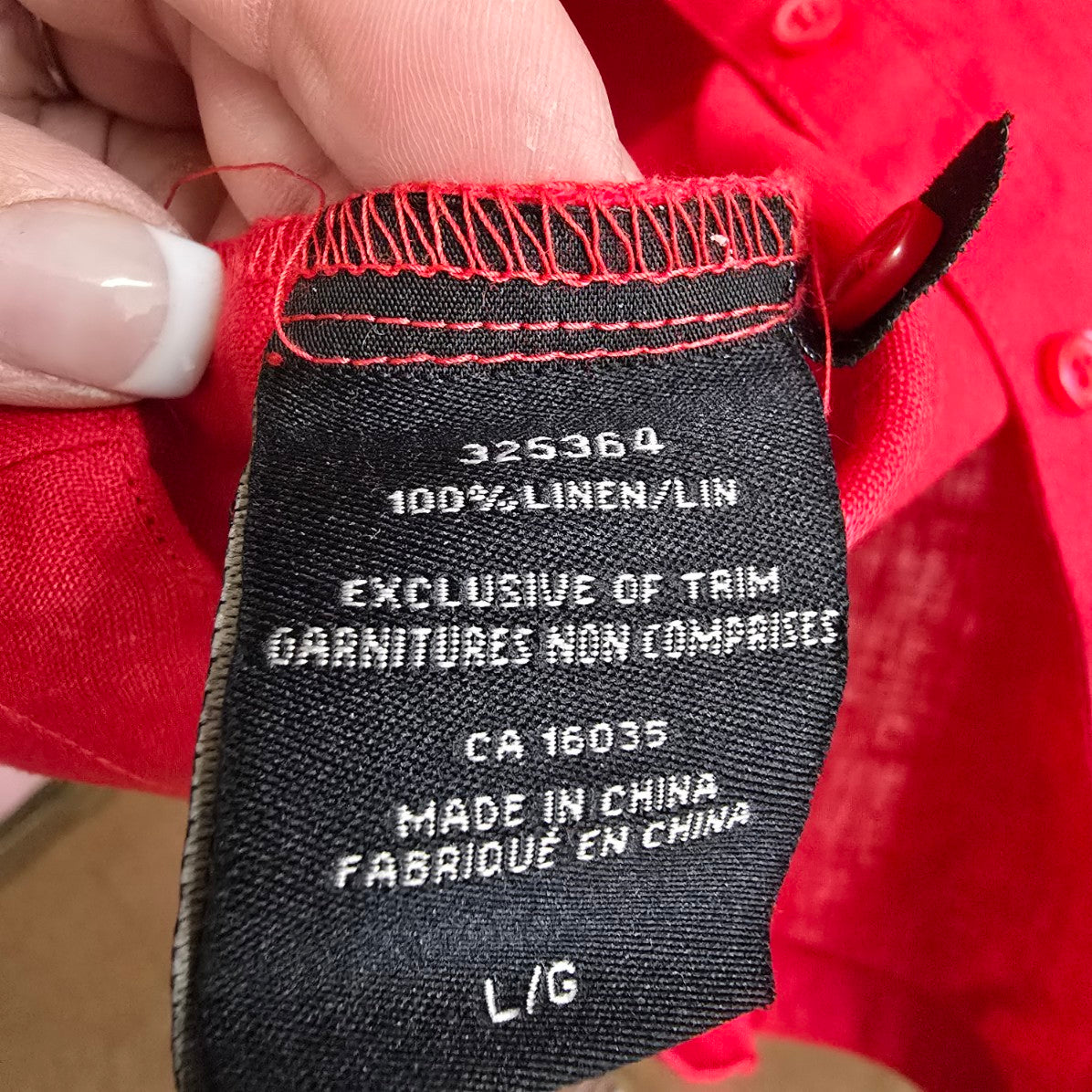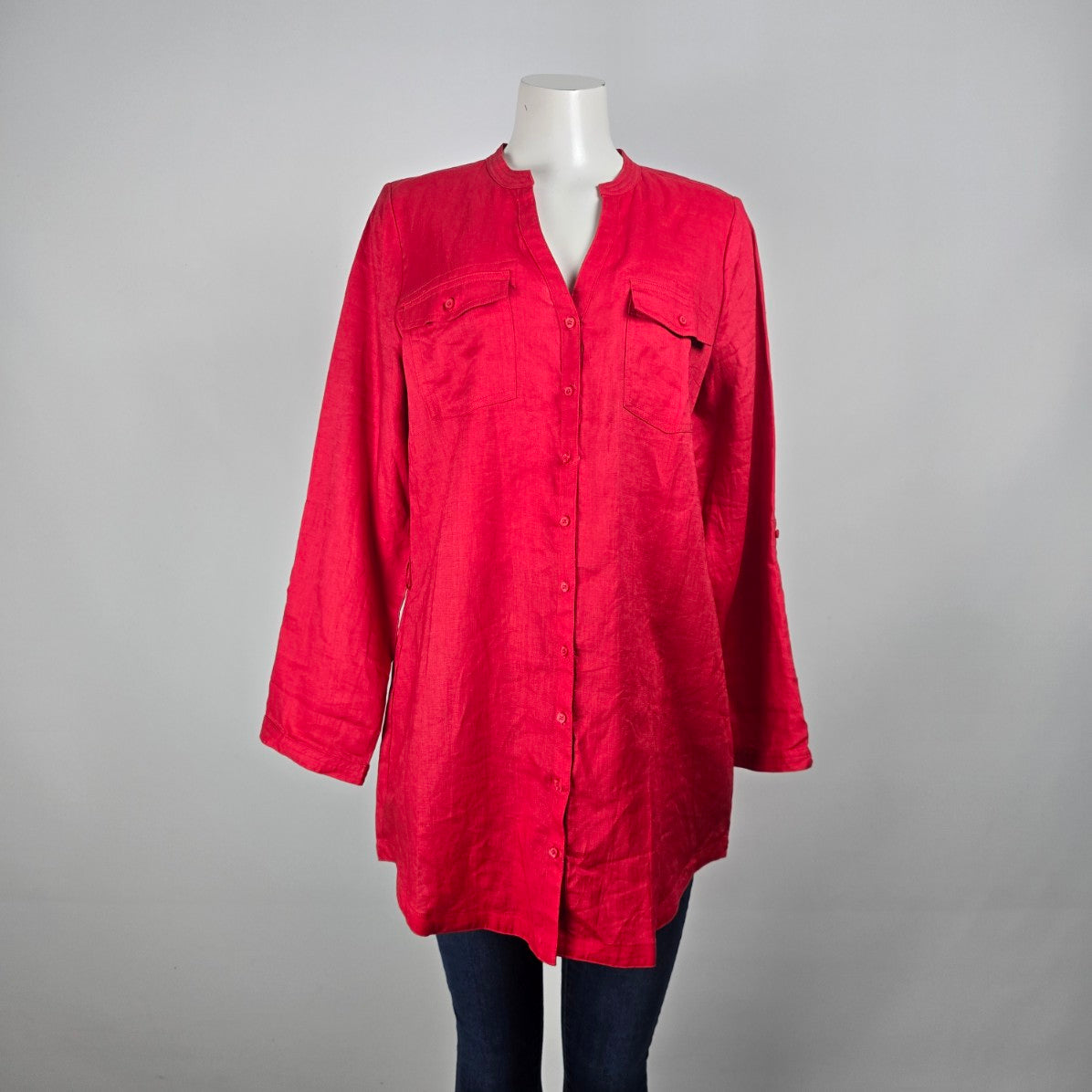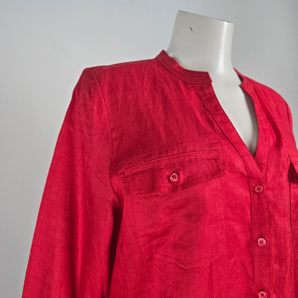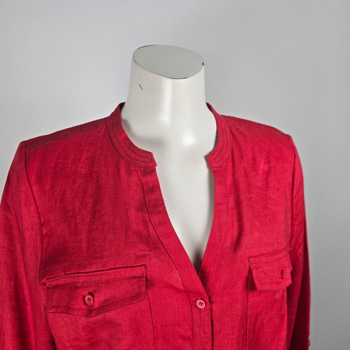 Lady Hathaway Red Linen Button Up Blouse Top Size L