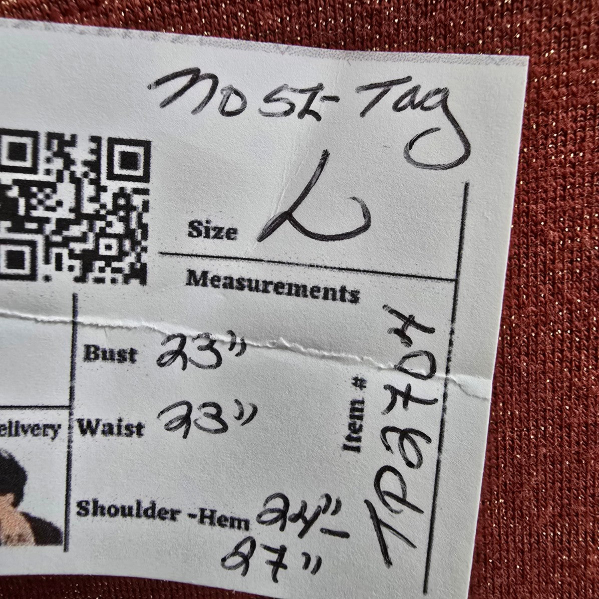 See last photos for fabric content and approximate FLAT measurements, compare our measurements to something in your closet to see if it will fit.