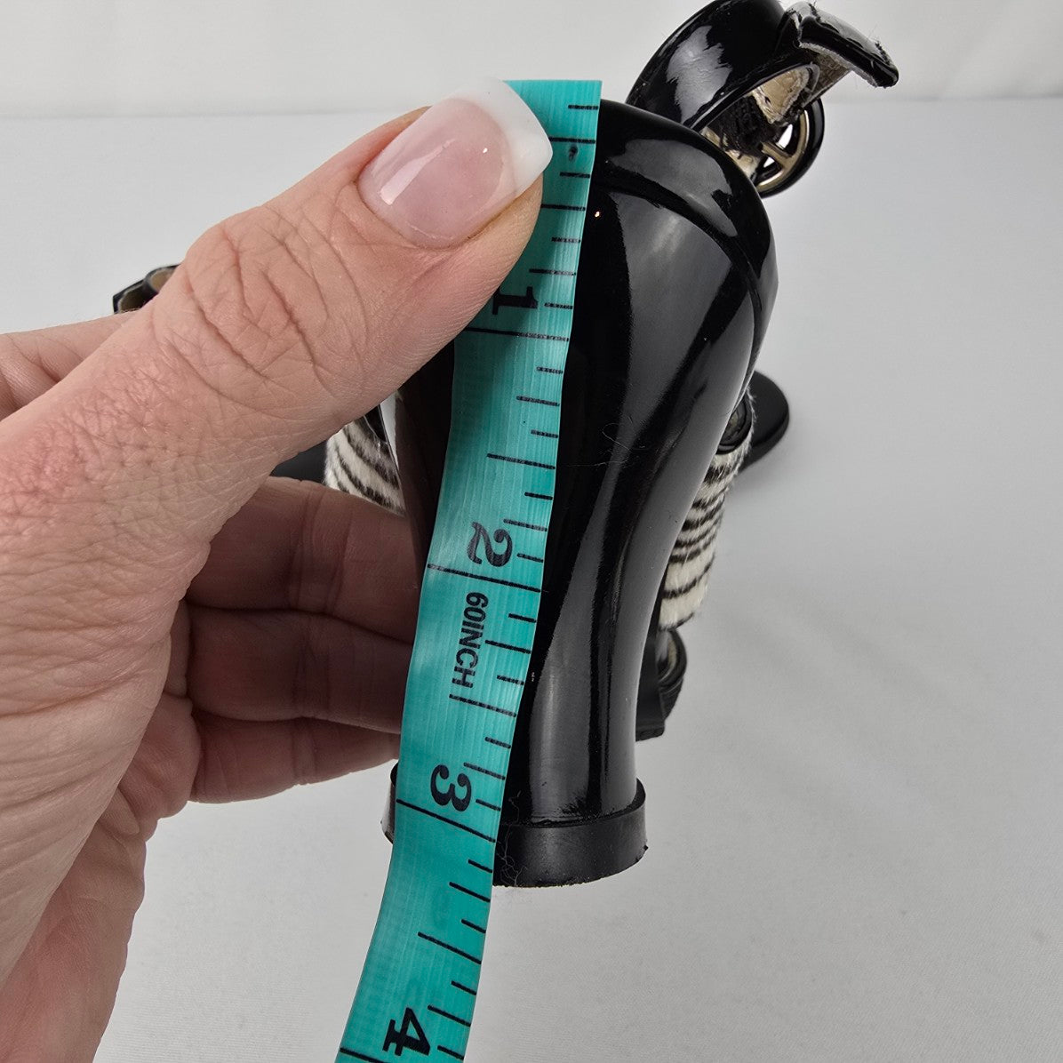 Luv Shoes Black Zebra Print Leather Sling Back Sandals Size 8