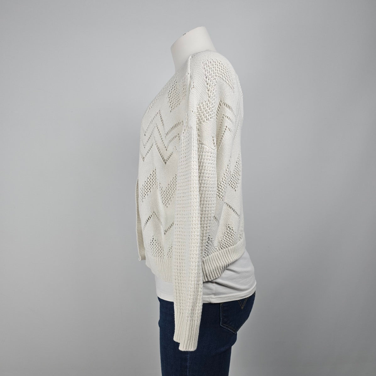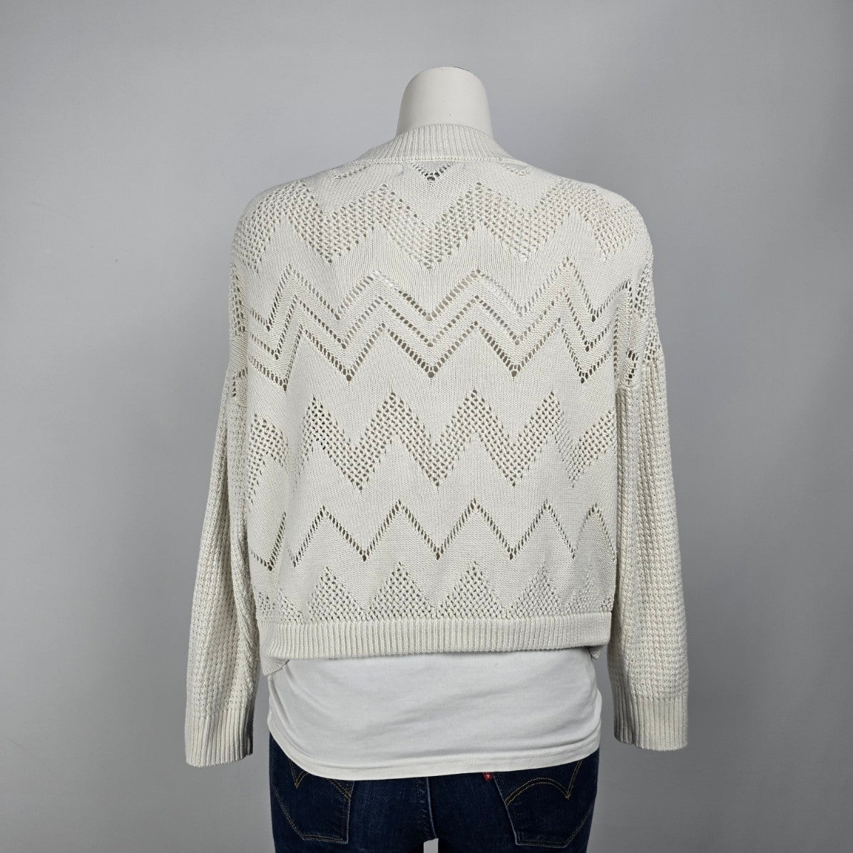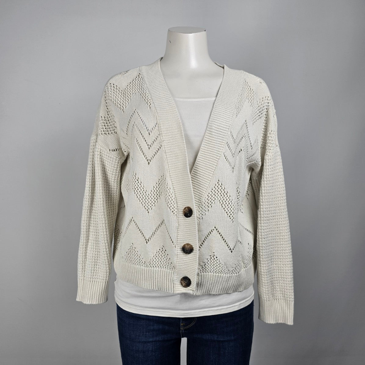 Marled Reunited Clothing Cream Knit Cotton Button Up Cardigan Size L