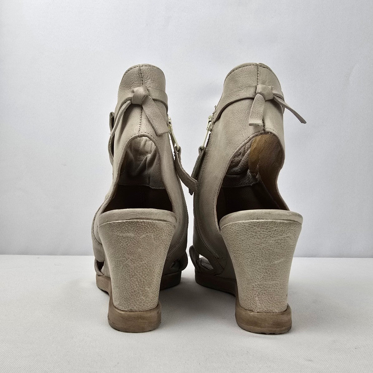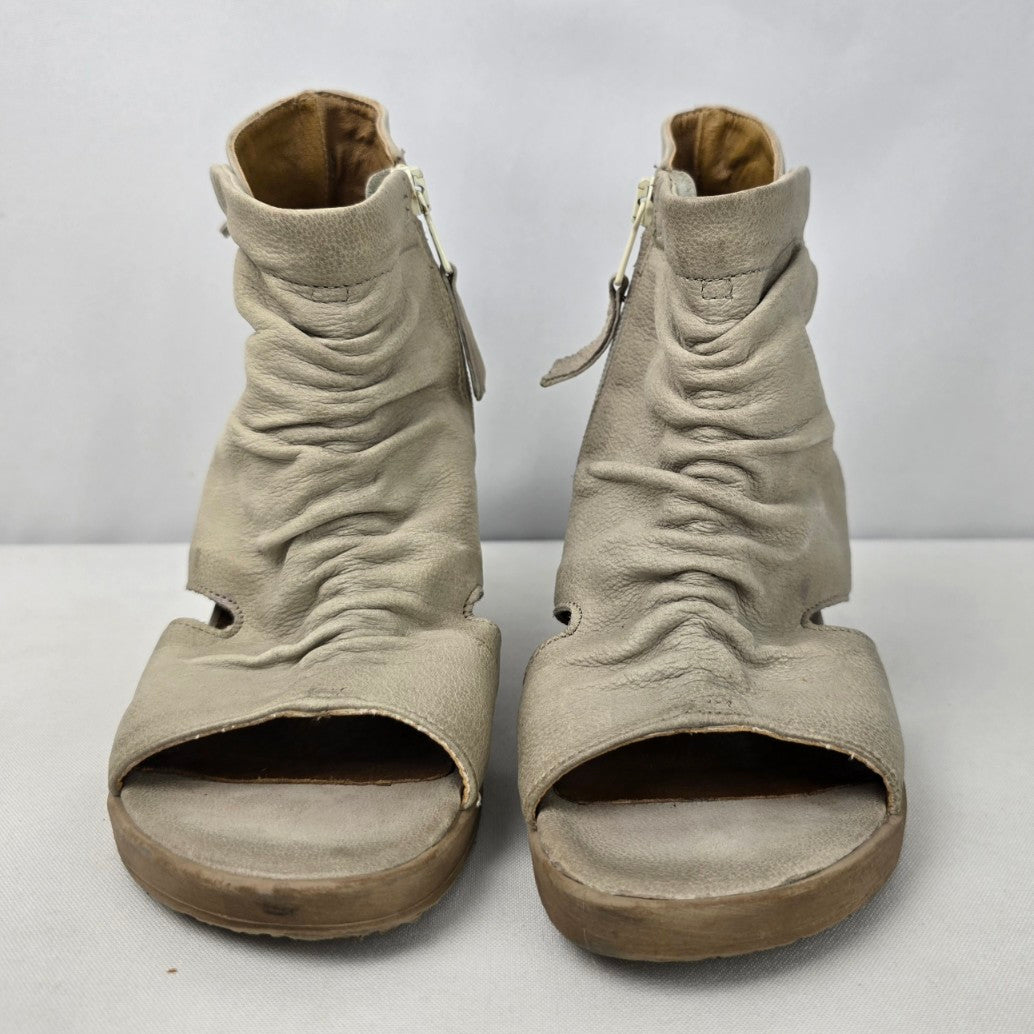 Mjus Grey Leather Gladiator Wedge Sandals Size 6.5