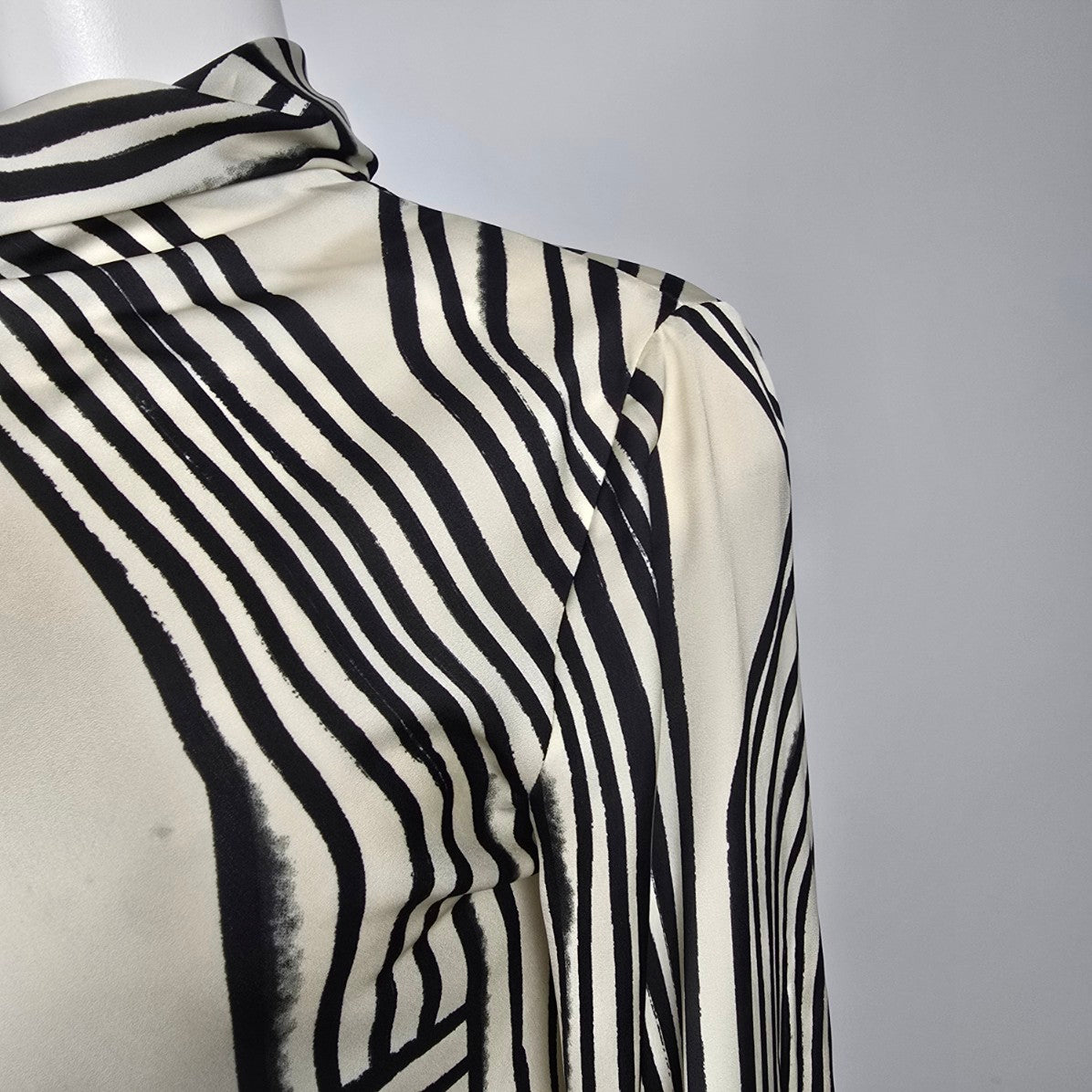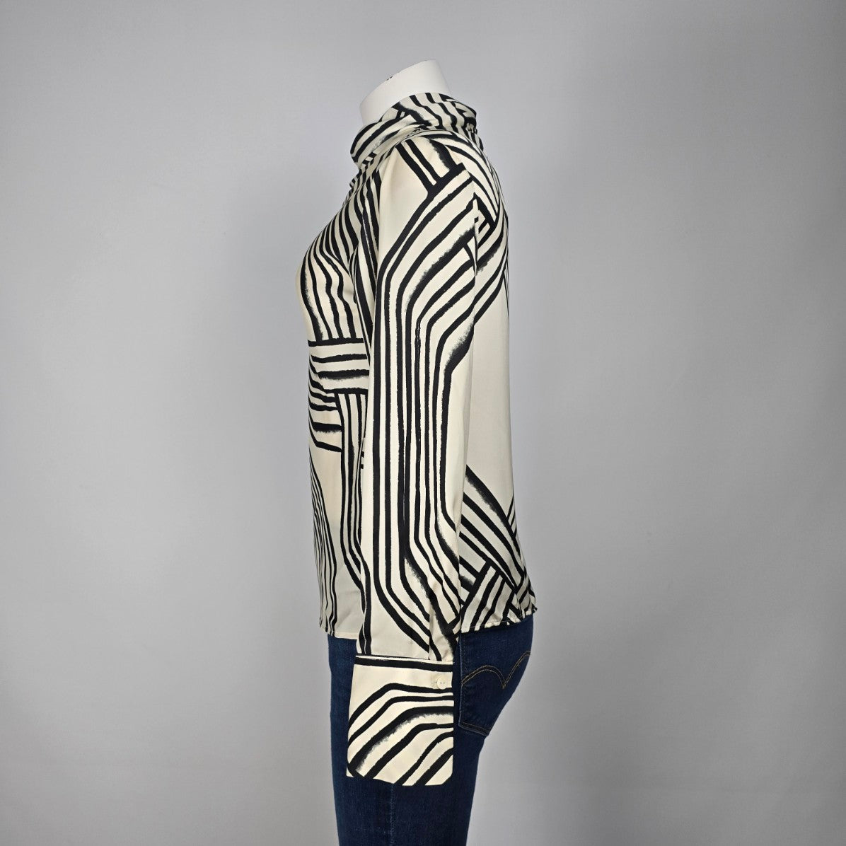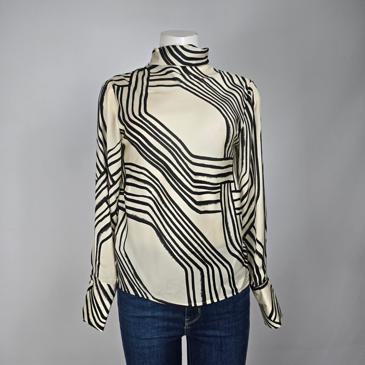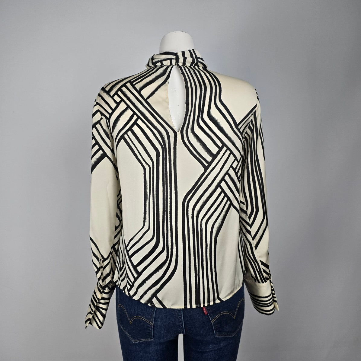 MNG Italian Fabric Cream & Black High Neck Blouse Size XS