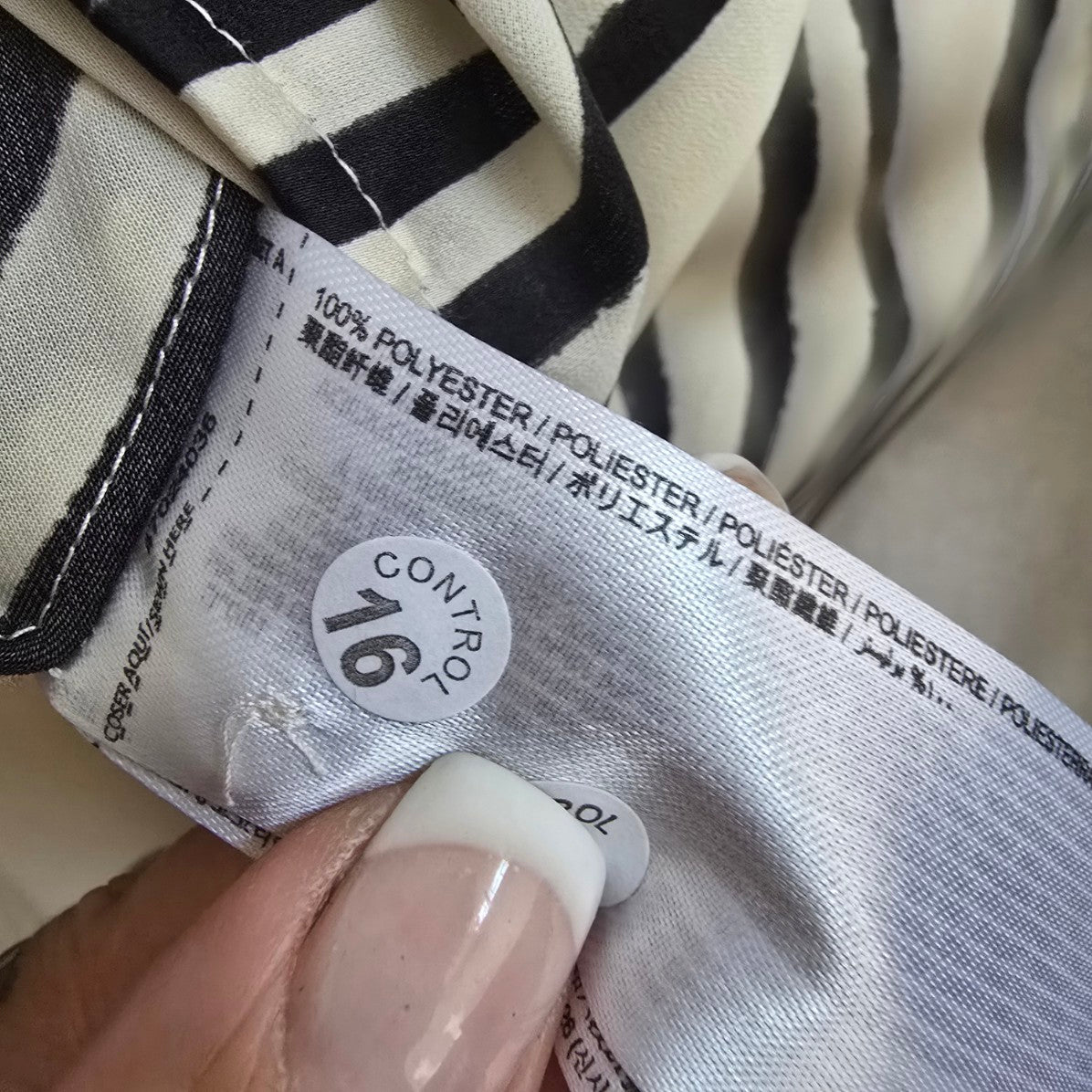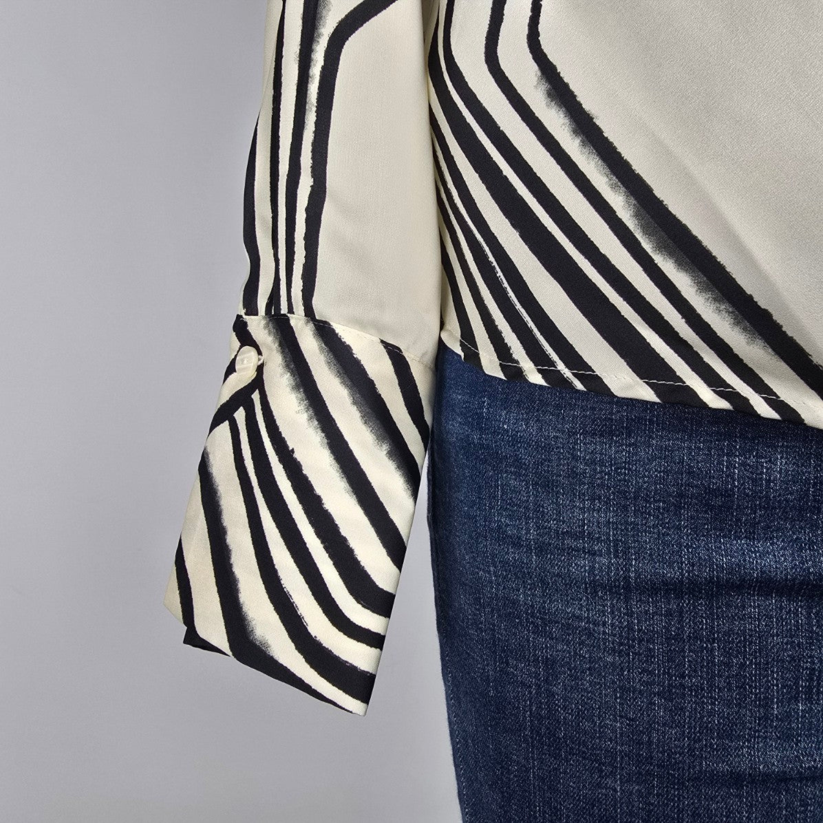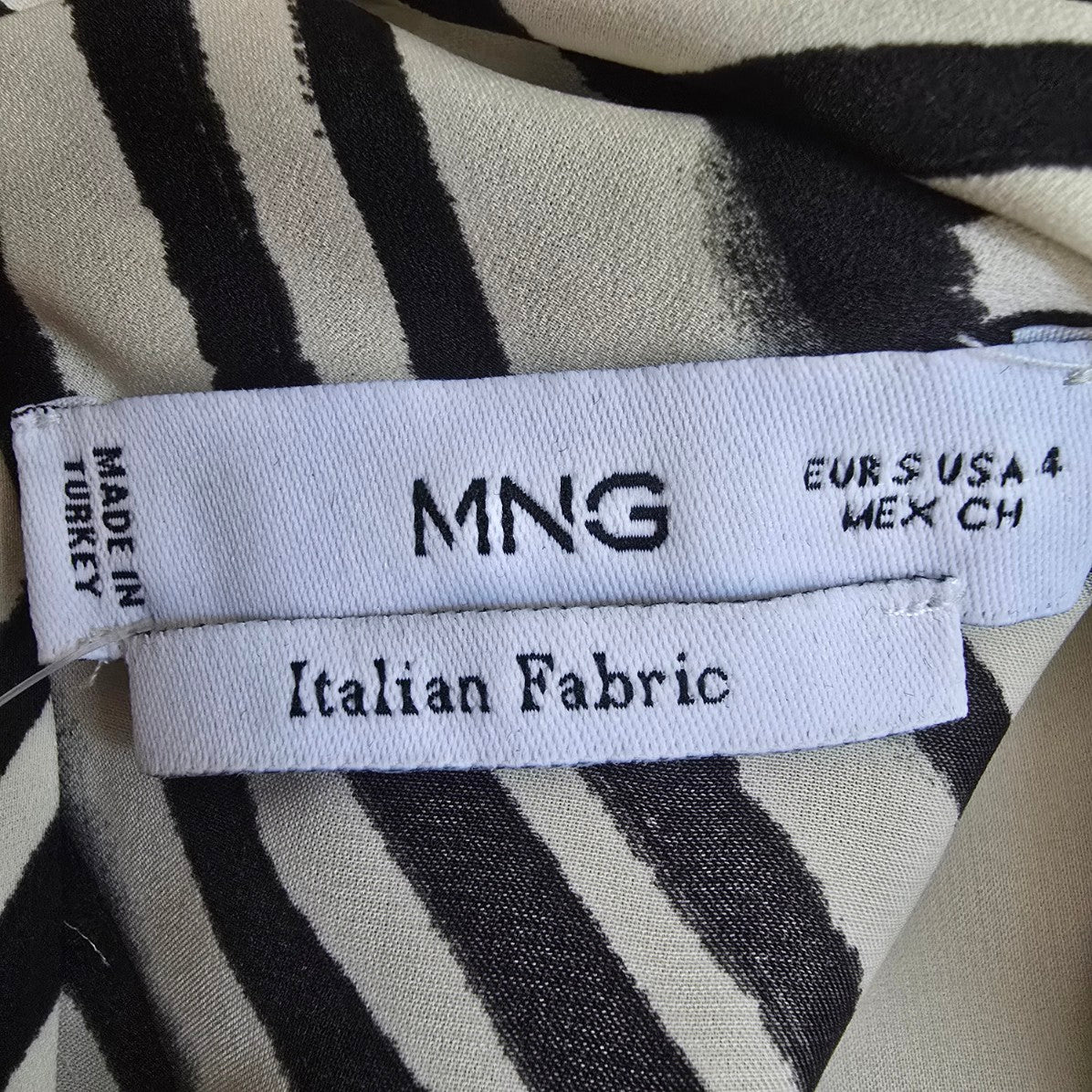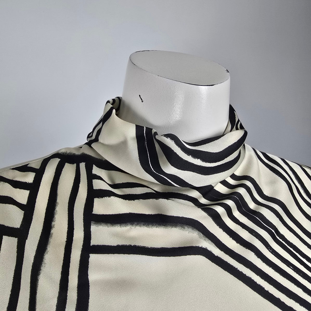 MNG Italian Fabric Cream & Black High Neck Blouse Size XS