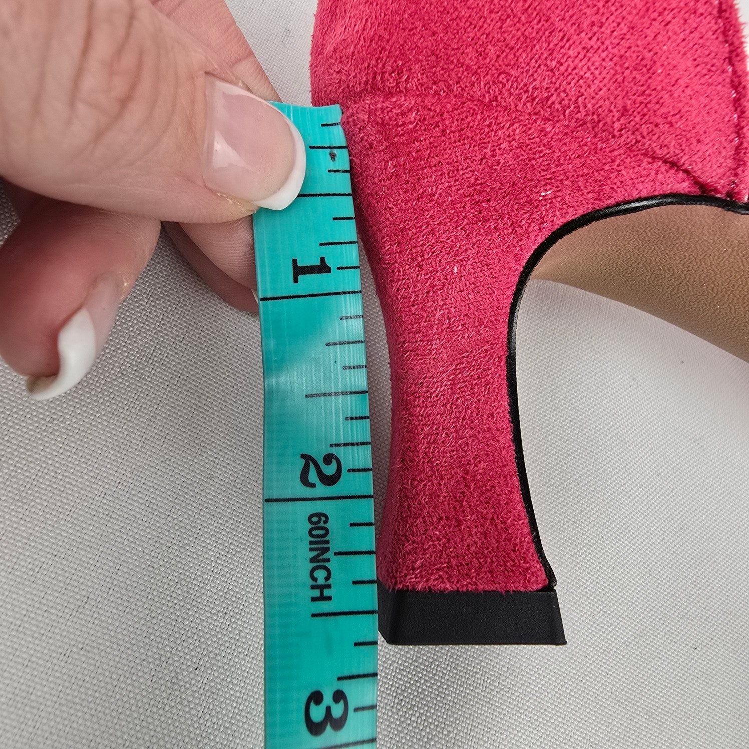 See last photo for Heel measurements or fabric info, compare our measurements to something in your own closet to know if these will work for you.