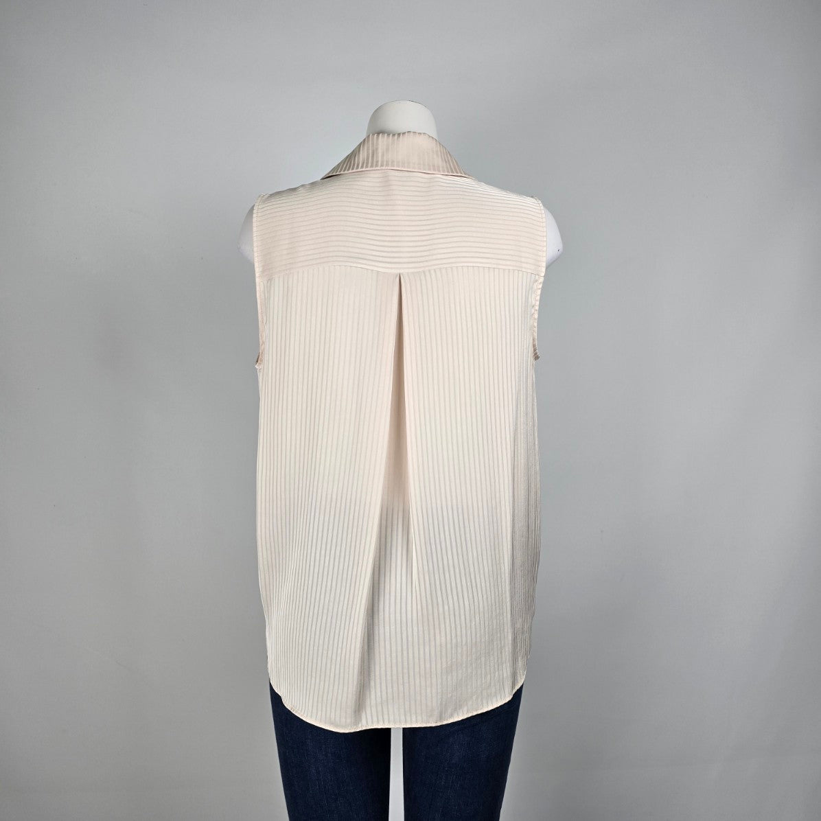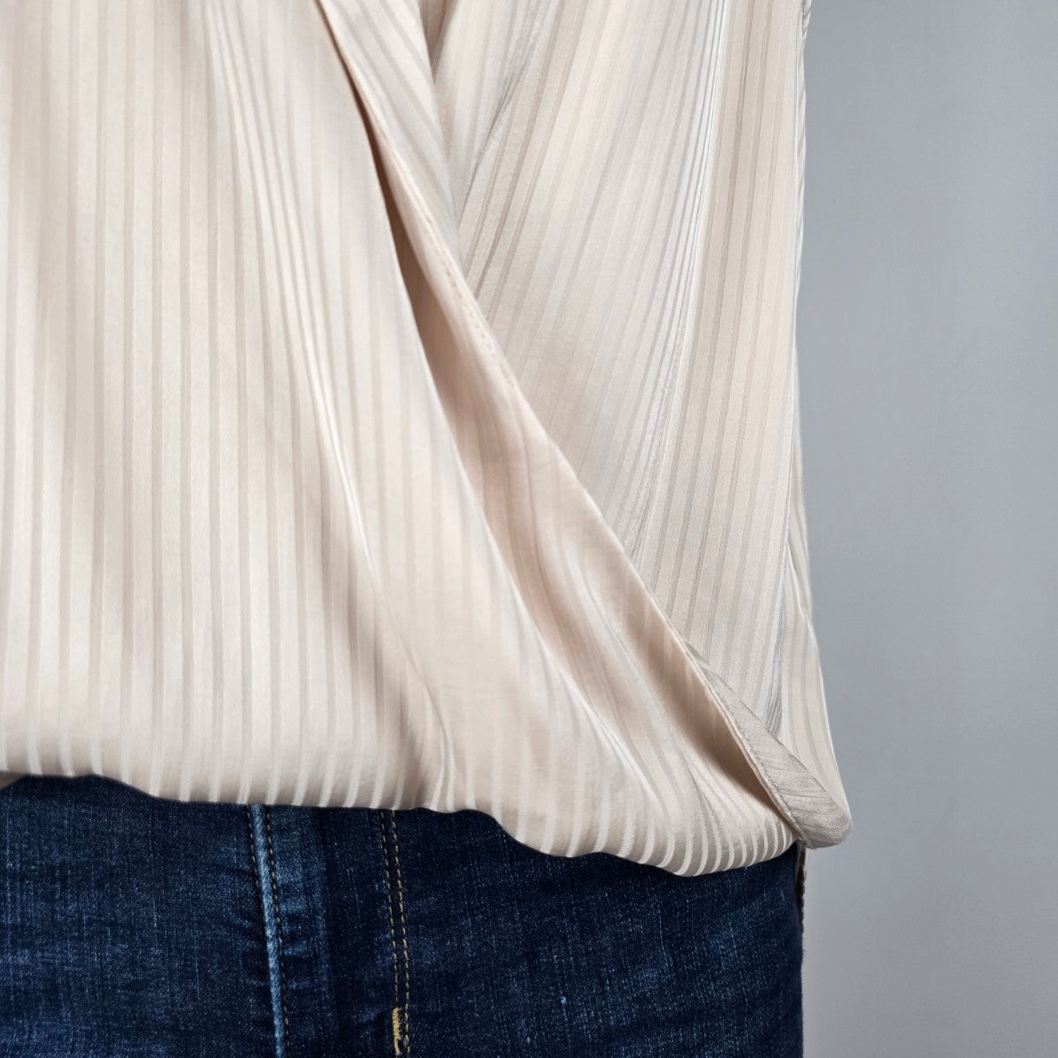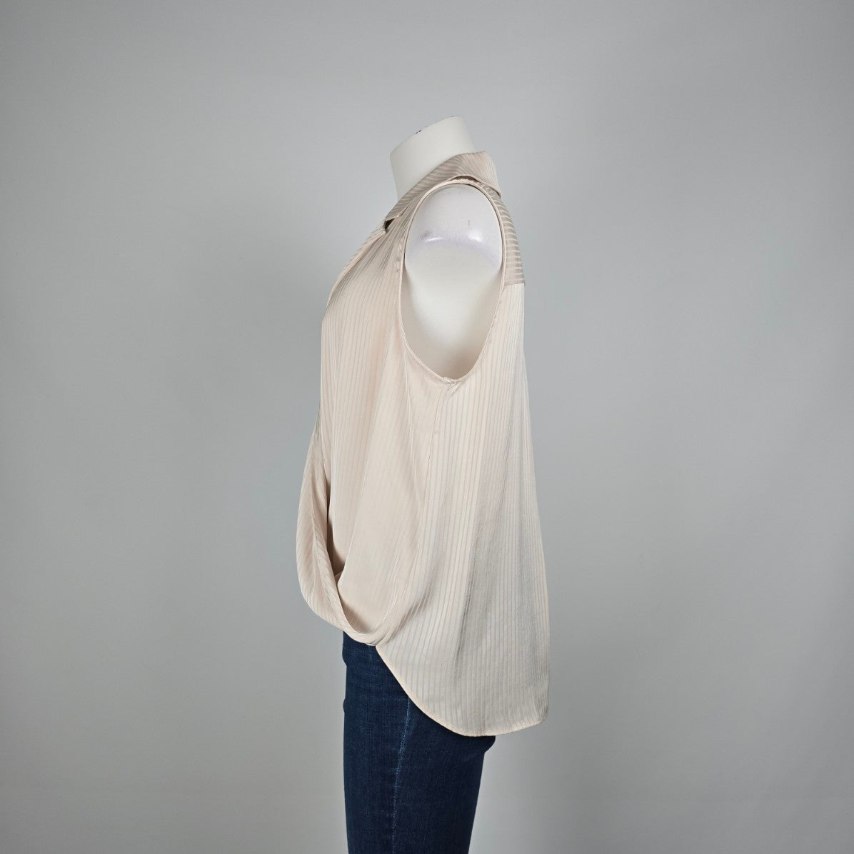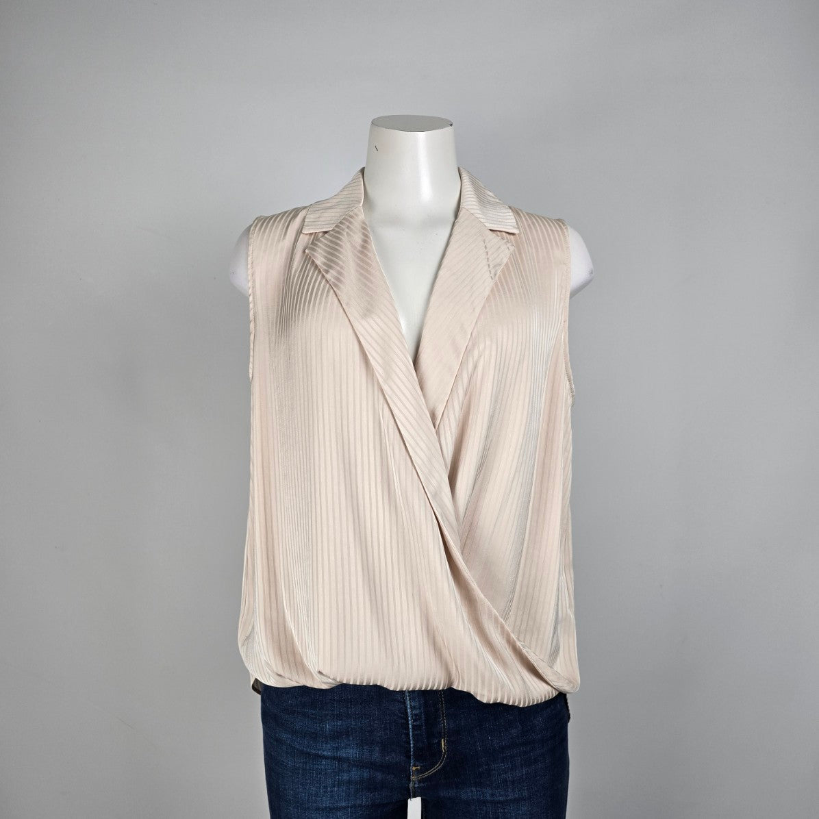 Modern Works Nude Pin Stripped V Neck Sleeveless Cross Over Blouse Size M