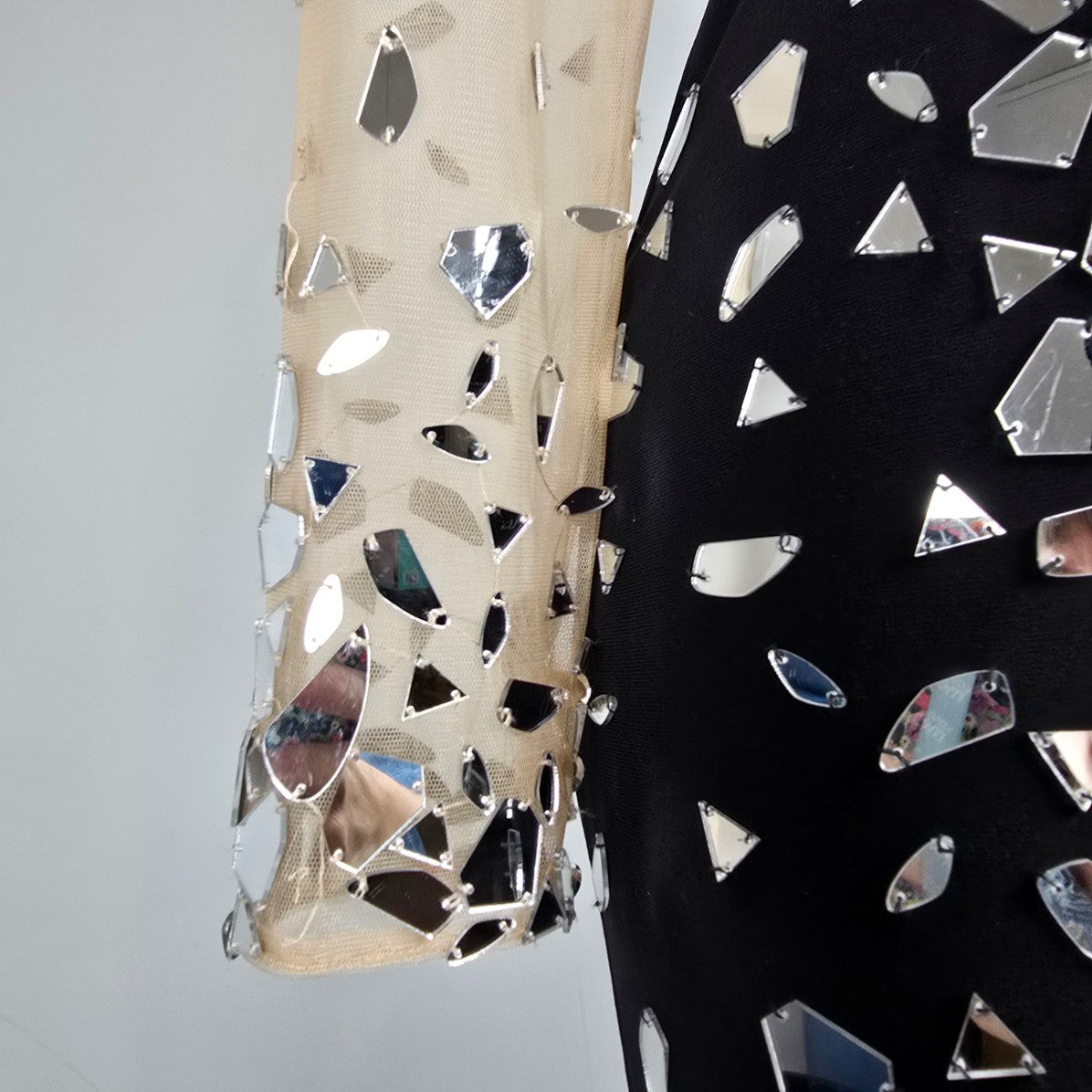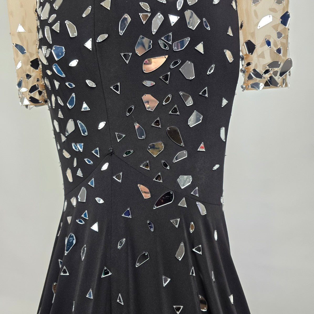Mori Lee Black & Silver Long Sleeve Mettallic Gown Size 8 Style 46040