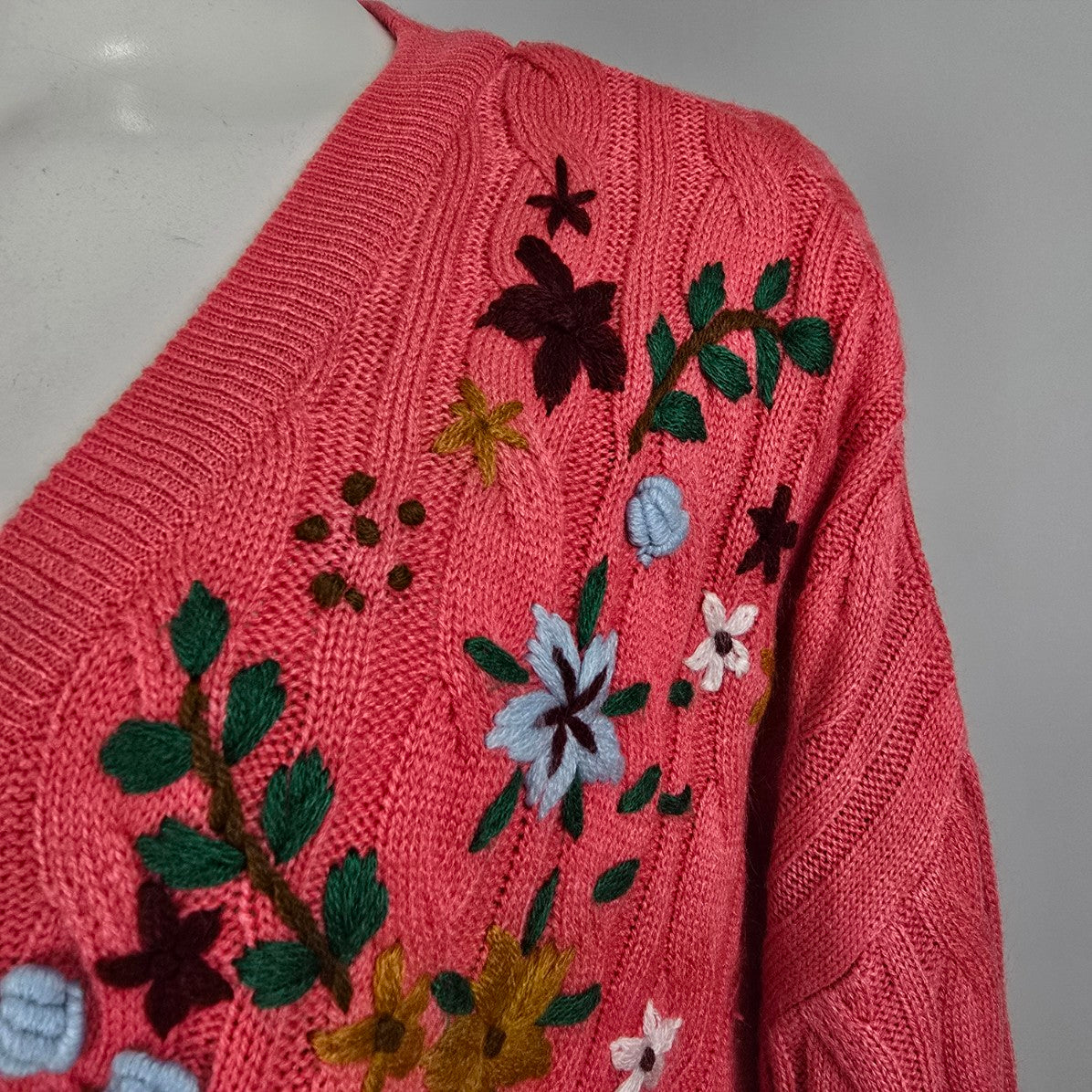 Myra Bag Pink Floral Knit Cardigan Size XL